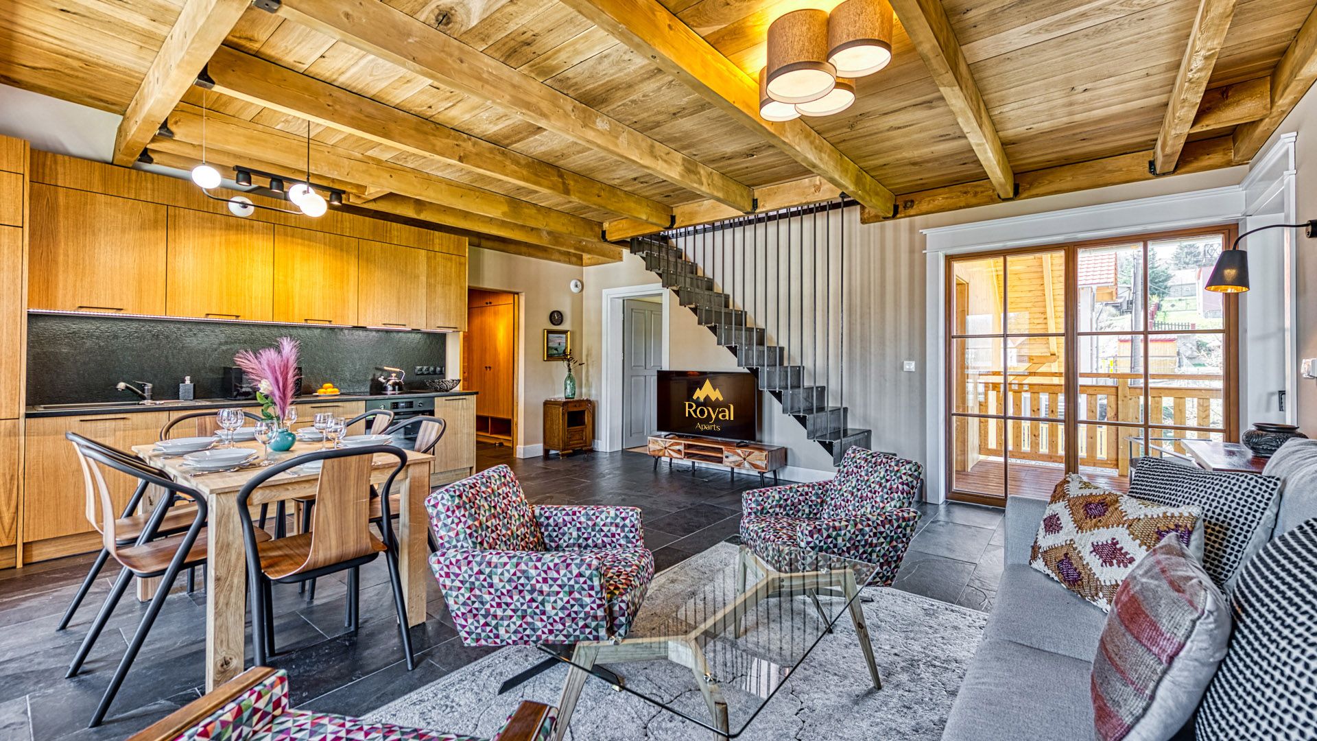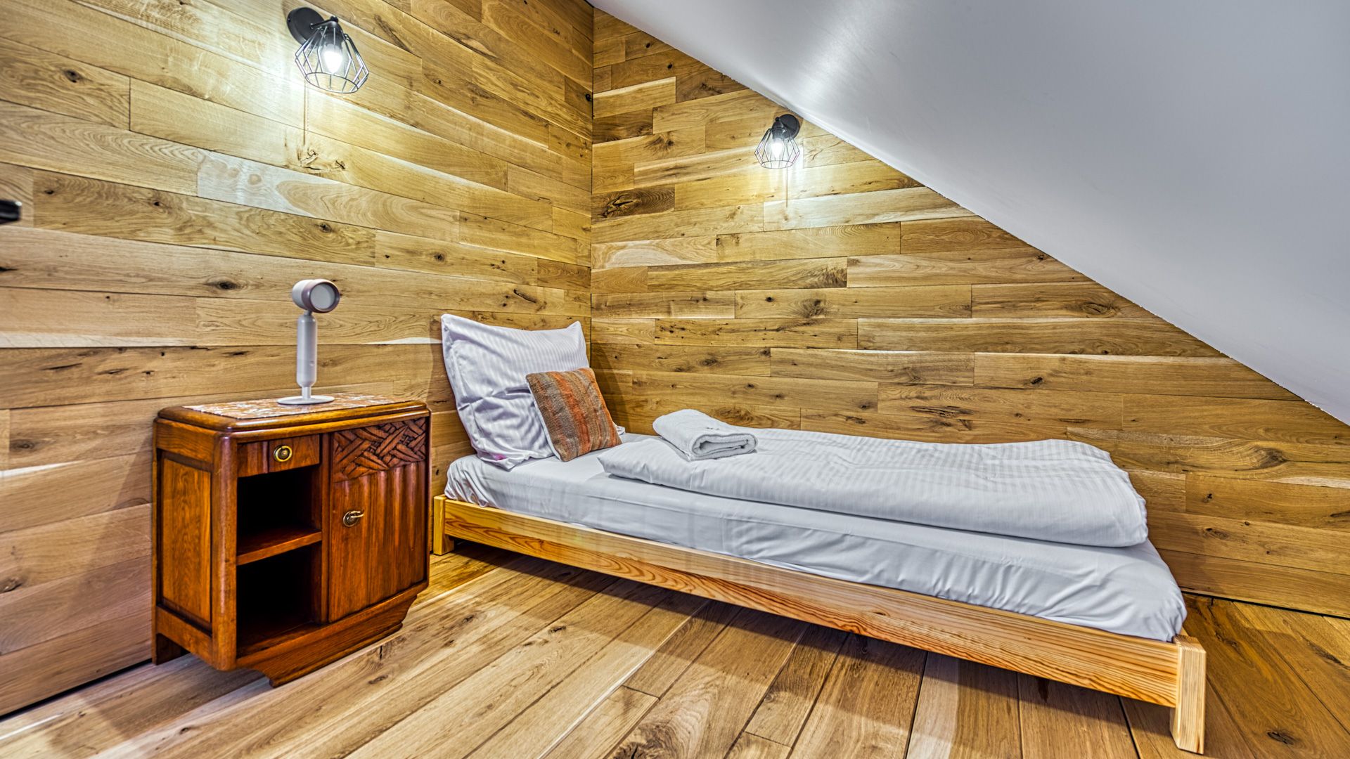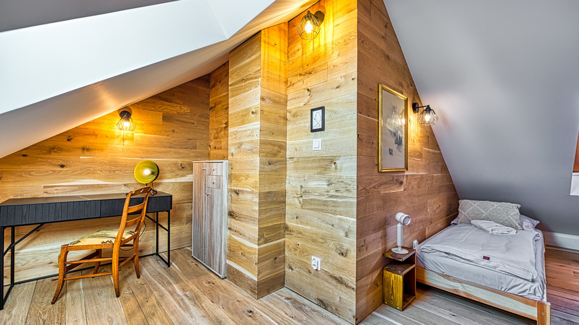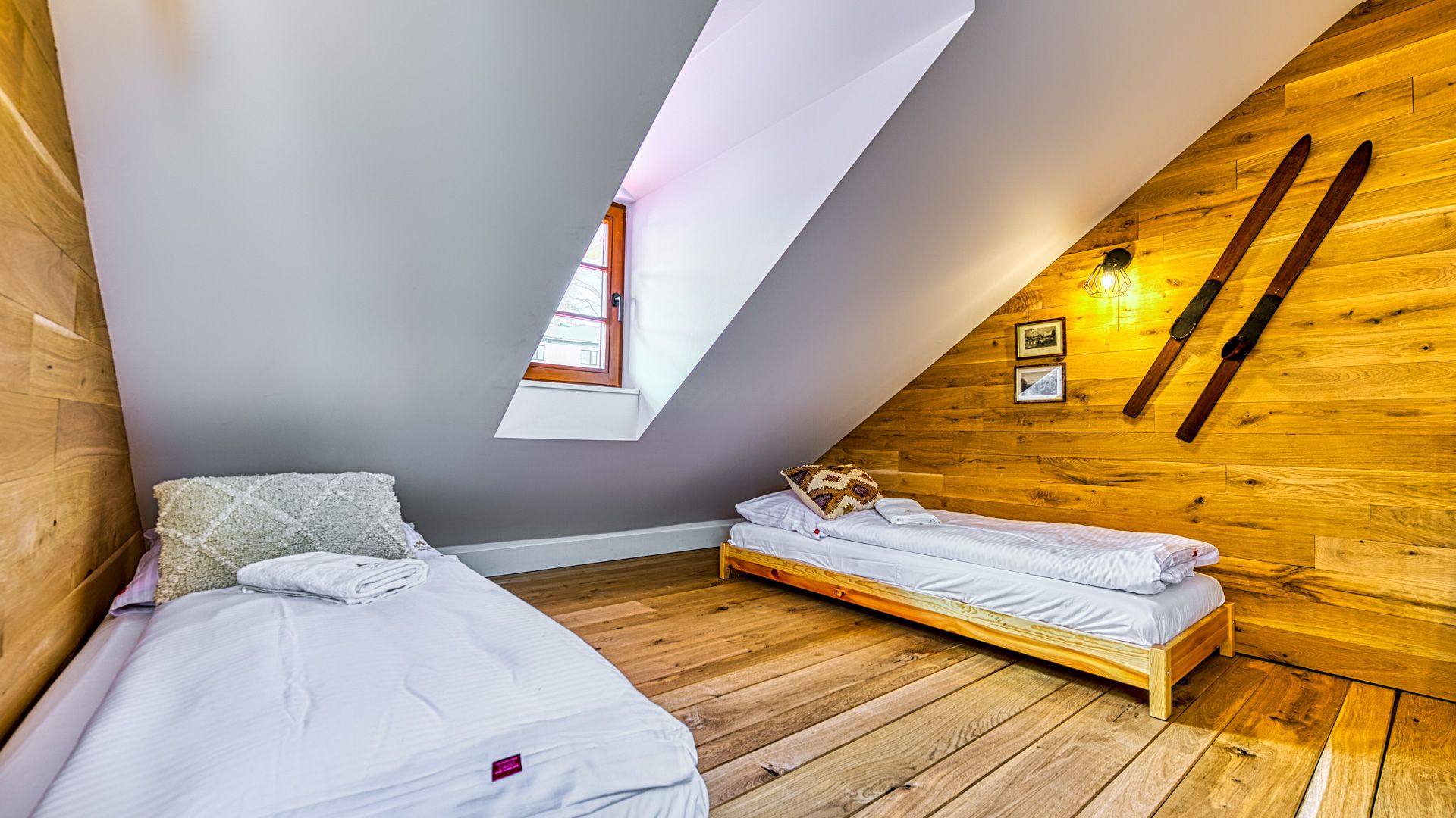 Prezentowany apartament mieści się przy ulicy Waryńskiego 2/8 w Szklarskiej Porębie. Jest to jasny, przestronny lokal o powierzchni 75m^2, z antresolą, który wygodnie pomieści aż siedem osób. Zawiera wszystko, co niezbędne, by spędzić udany czas w tej pięknej, górskiej miejscowości. Do dyspozycji Gości oddajemy sypialnię, z dużym łożem, część wypoczynkową, połączoną z aneksem kuchennym i jadalnią, w której mieści się rozkładana sofa, antresolę, z trzema pojedynczymi łóżkami oraz obszerny balkon.