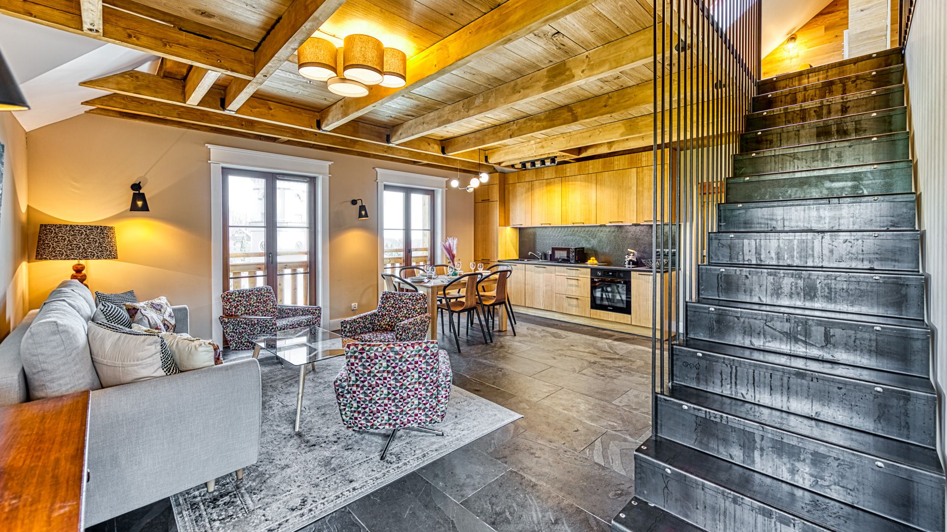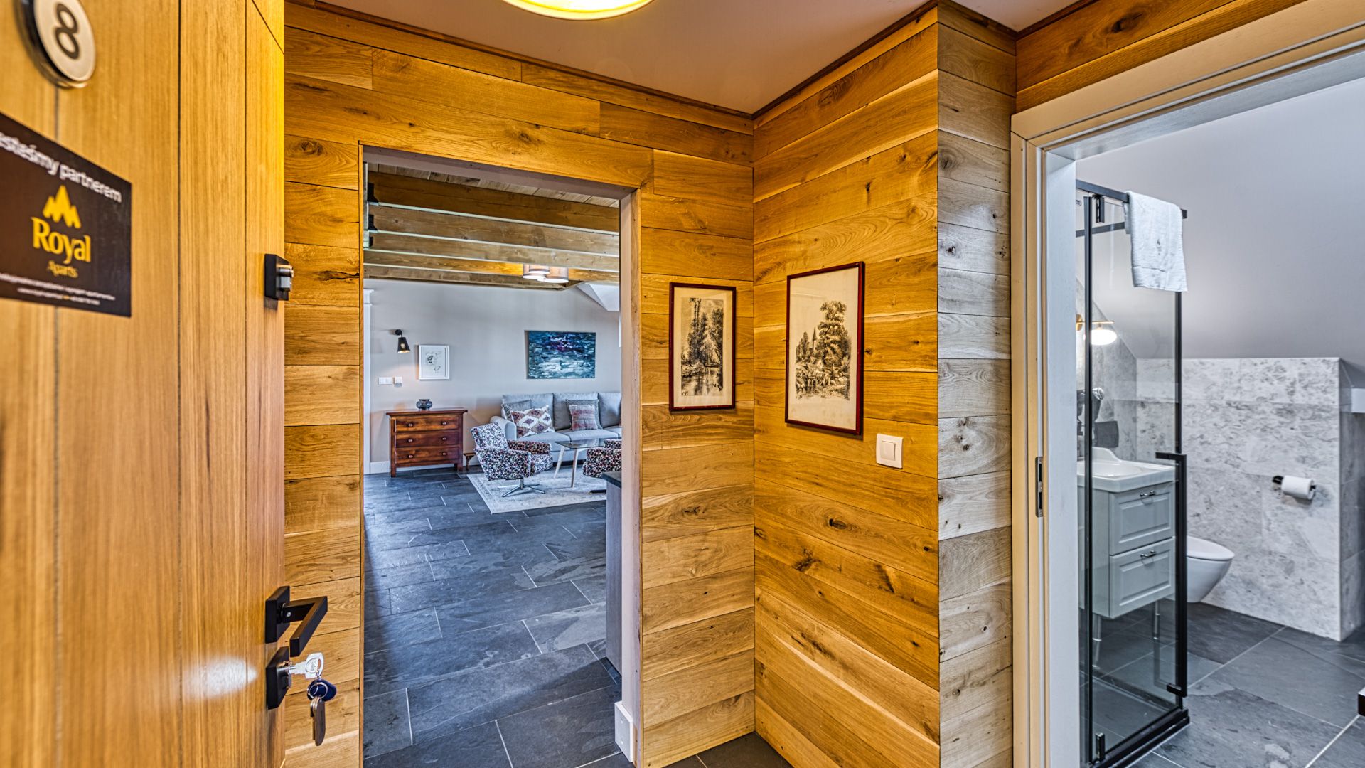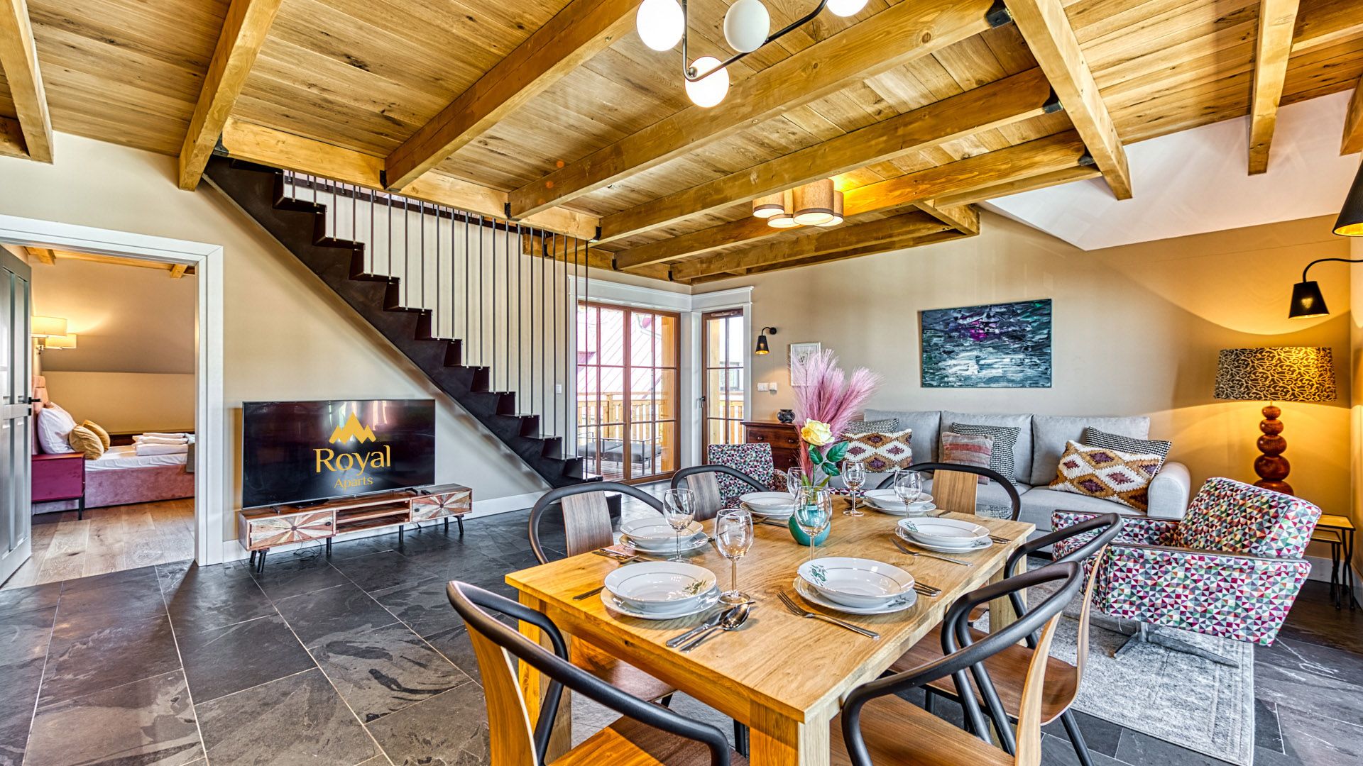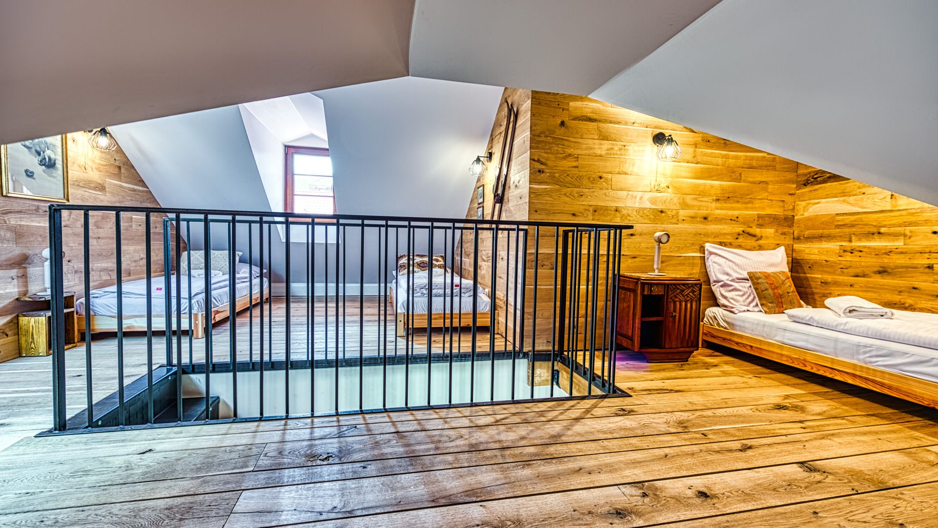 Prezentowany apartament mieści się przy ulicy Waryńskiego 2/8 w Szklarskiej Porębie. Jest to jasny, przestronny lokal o powierzchni 75m^2, z antresolą, który wygodnie pomieści aż siedem osób. Zawiera wszystko, co niezbędne, by spędzić udany czas w tej pięknej, górskiej miejscowości. Do dyspozycji Gości oddajemy sypialnię, z dużym łożem, część wypoczynkową, połączoną z aneksem kuchennym i jadalnią, w której mieści się rozkładana sofa, antresolę, z trzema pojedynczymi łóżkami oraz obszerny balkon.