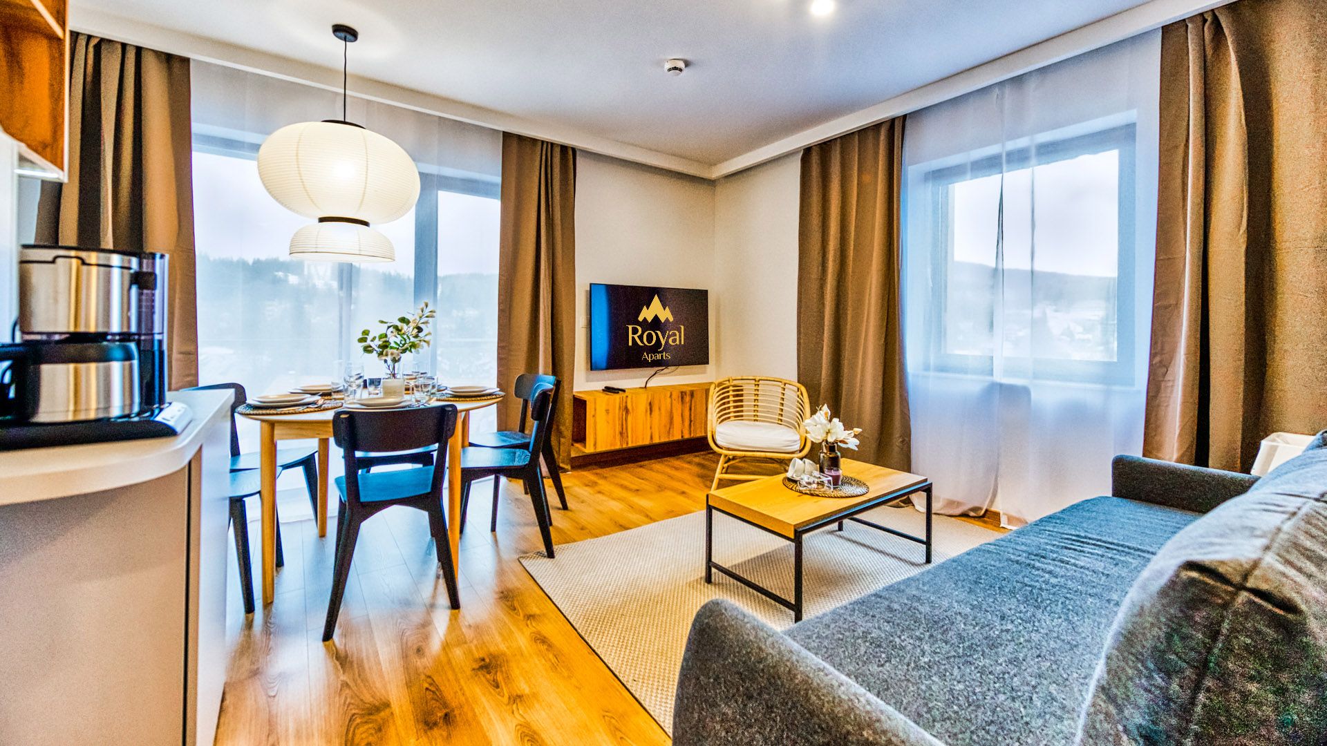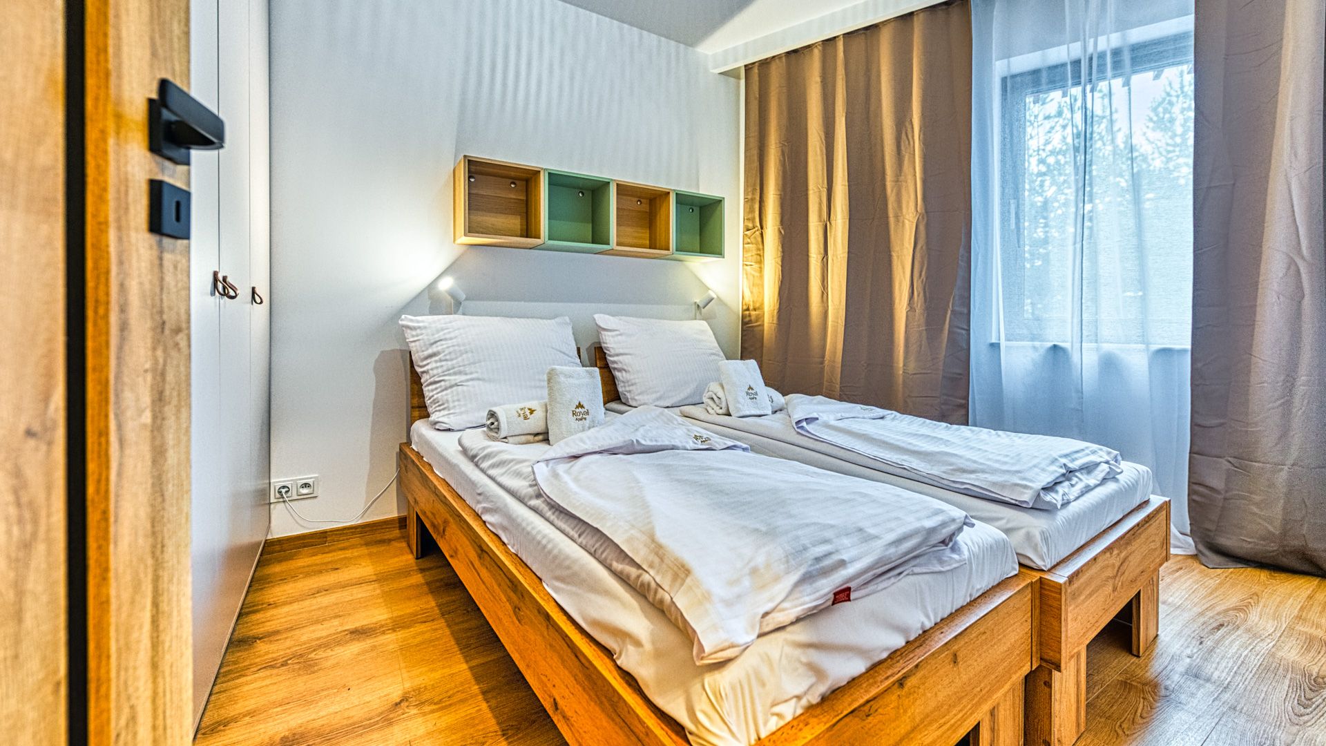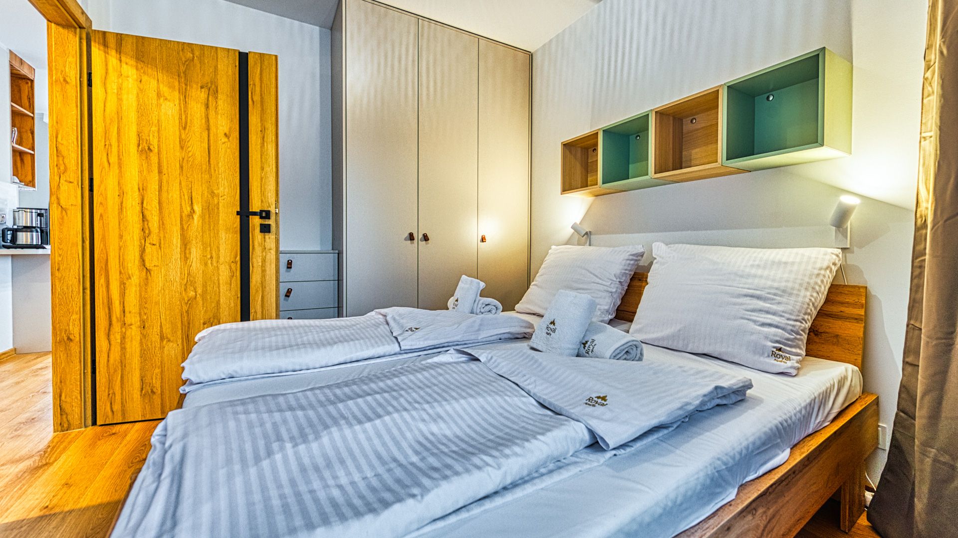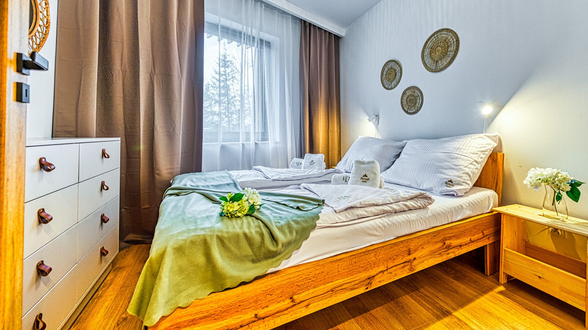 Prezentowany apartament jest częścią prestiżowego kompleksu Stone Hill w samym centrum Szklarskiej Poręby. To nowoczesny, w pełni wyposażony apartament o powierzchni 52m2, który zapewni komfortowy pobyt nawet 6 Gościom. W głównej sypialni znajduje się duże łóżko typu Queen Size, z kolei druga sypialnia wyposażona jest w dwa pojedyncze łóżka typu TWIN. W przestronnym pokoju dziennym z aneksem, rozkładana kanapa zagwarantuje wygodny nocleg kolejnym dwóm osobom. Wnętrza lokalu zaprojektowano z myślą o potrzebach Gości podróżujących zarówno w mniejszym jak i większym gronie, dlatego apartament posiada wiele systemów mebli do przechowywania.