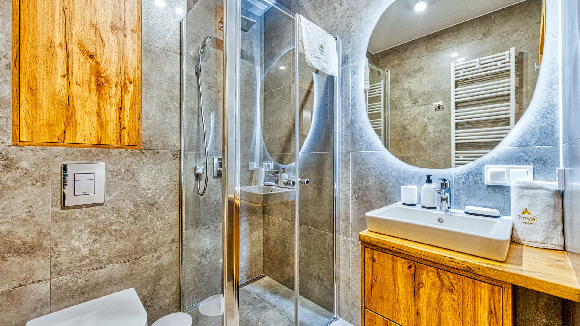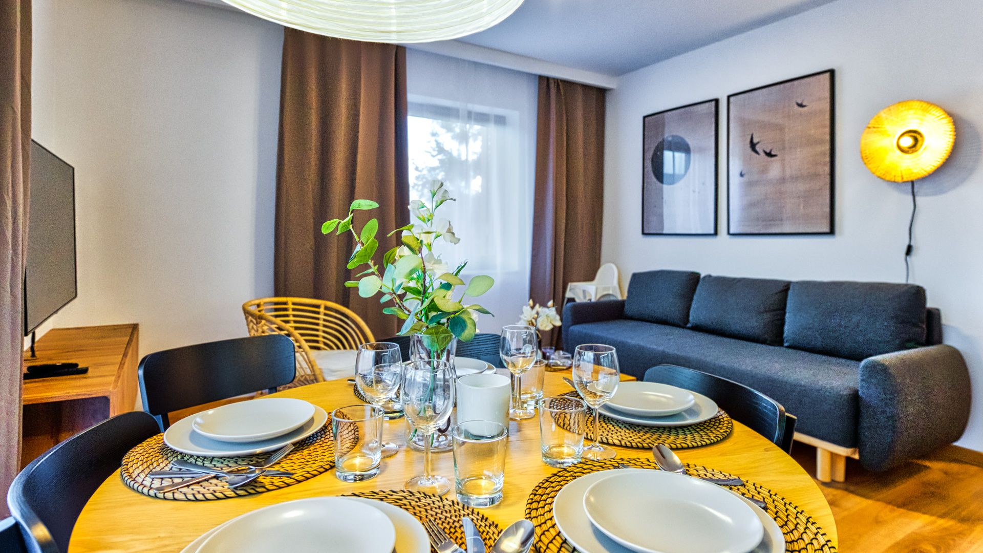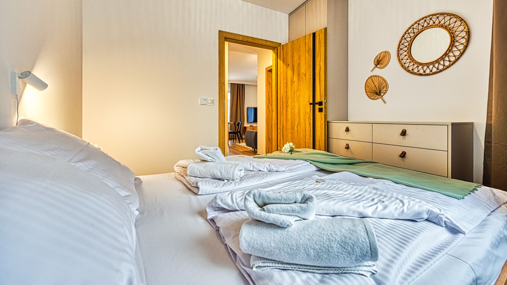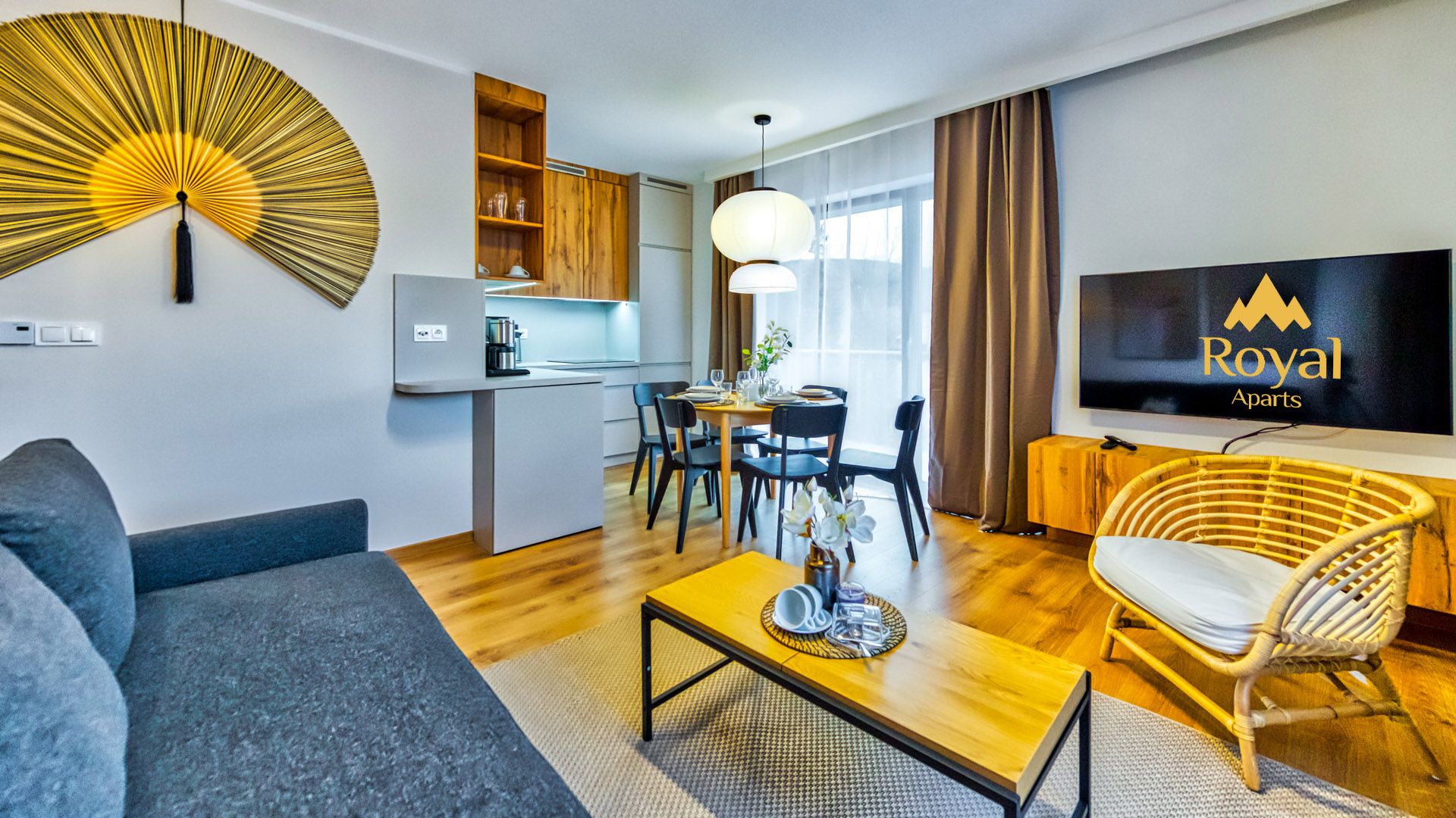 Prezentowany apartament jest częścią prestiżowego kompleksu Stone Hill w samym centrum Szklarskiej Poręby. To nowoczesny, w pełni wyposażony apartament o powierzchni 52m2, który zapewni komfortowy pobyt nawet 6 Gościom. W głównej sypialni znajduje się duże łóżko typu Queen Size, z kolei druga sypialnia wyposażona jest w dwa pojedyncze łóżka typu TWIN. W przestronnym pokoju dziennym z aneksem, rozkładana kanapa zagwarantuje wygodny nocleg kolejnym dwóm osobom. Wnętrza lokalu zaprojektowano z myślą o potrzebach Gości podróżujących zarówno w mniejszym jak i większym gronie, dlatego apartament posiada wiele systemów mebli do przechowywania.