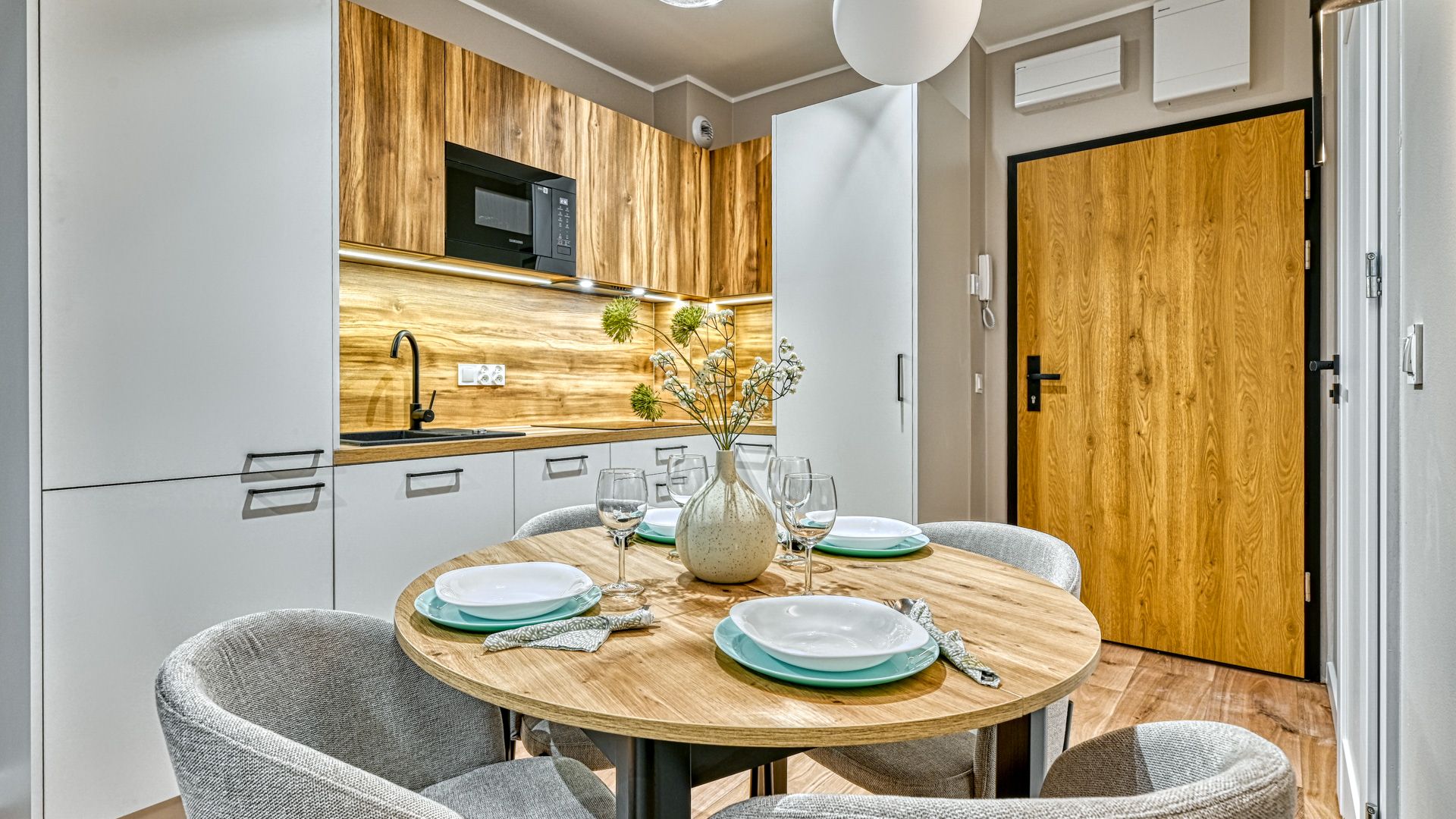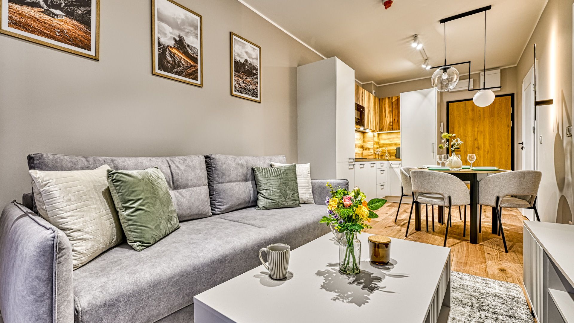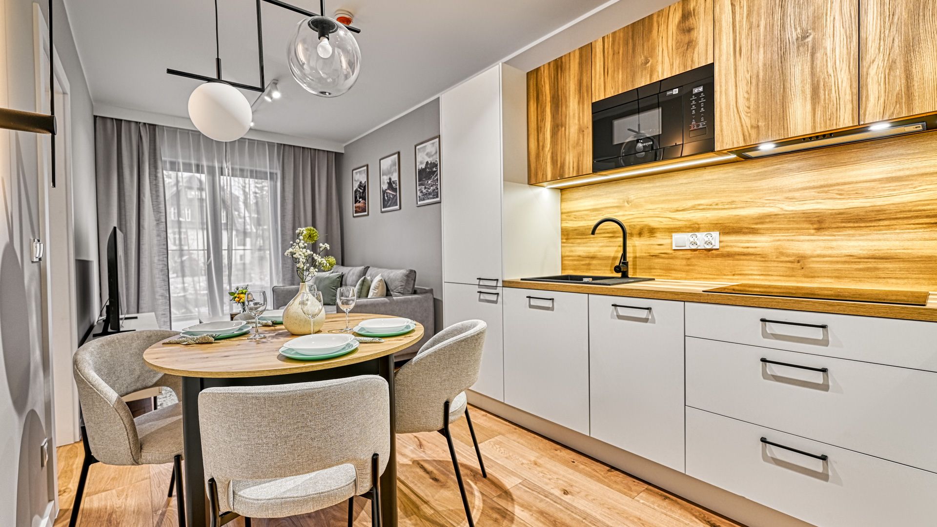 Zapraszamy do tego przytulnego apartamentu, który w harmonii łączy nowoczesność, wygodę i bliskość natury.