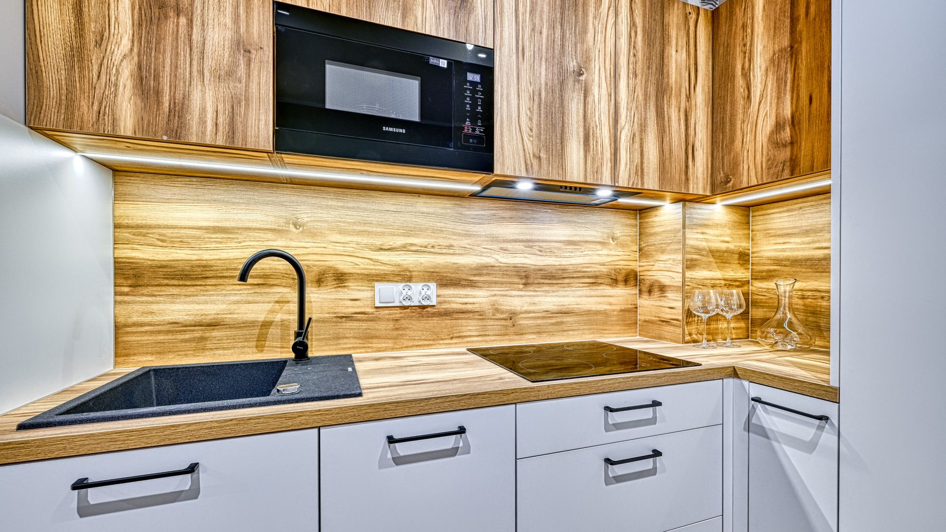 Apartament został zaprojektowany z myślą o komforcie i wygodzie. Przestronny salon oferuje wygodną sofę oraz telewizor, które zachęcają do relaksu po dniu pełnym wrażeń. W pełni wyposażony aneks kuchenny pozwala na przygotowanie ulubionych posiłków.