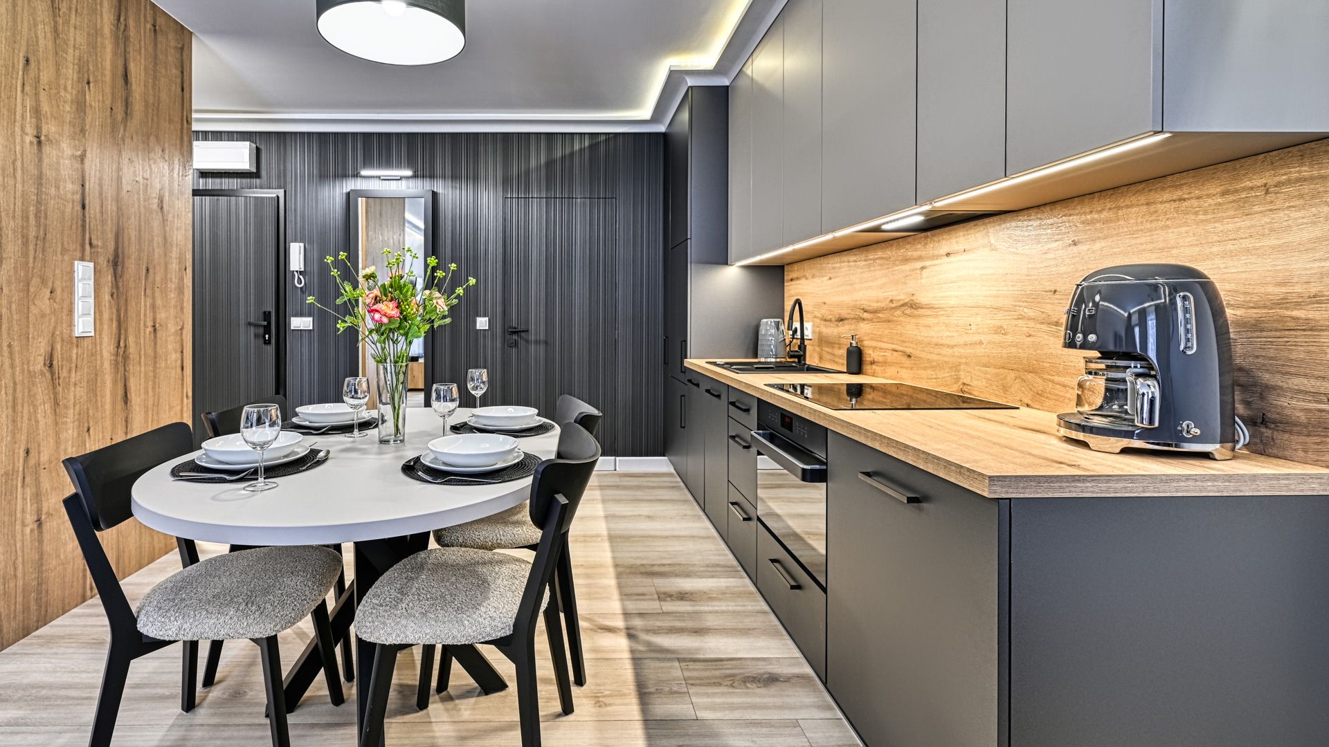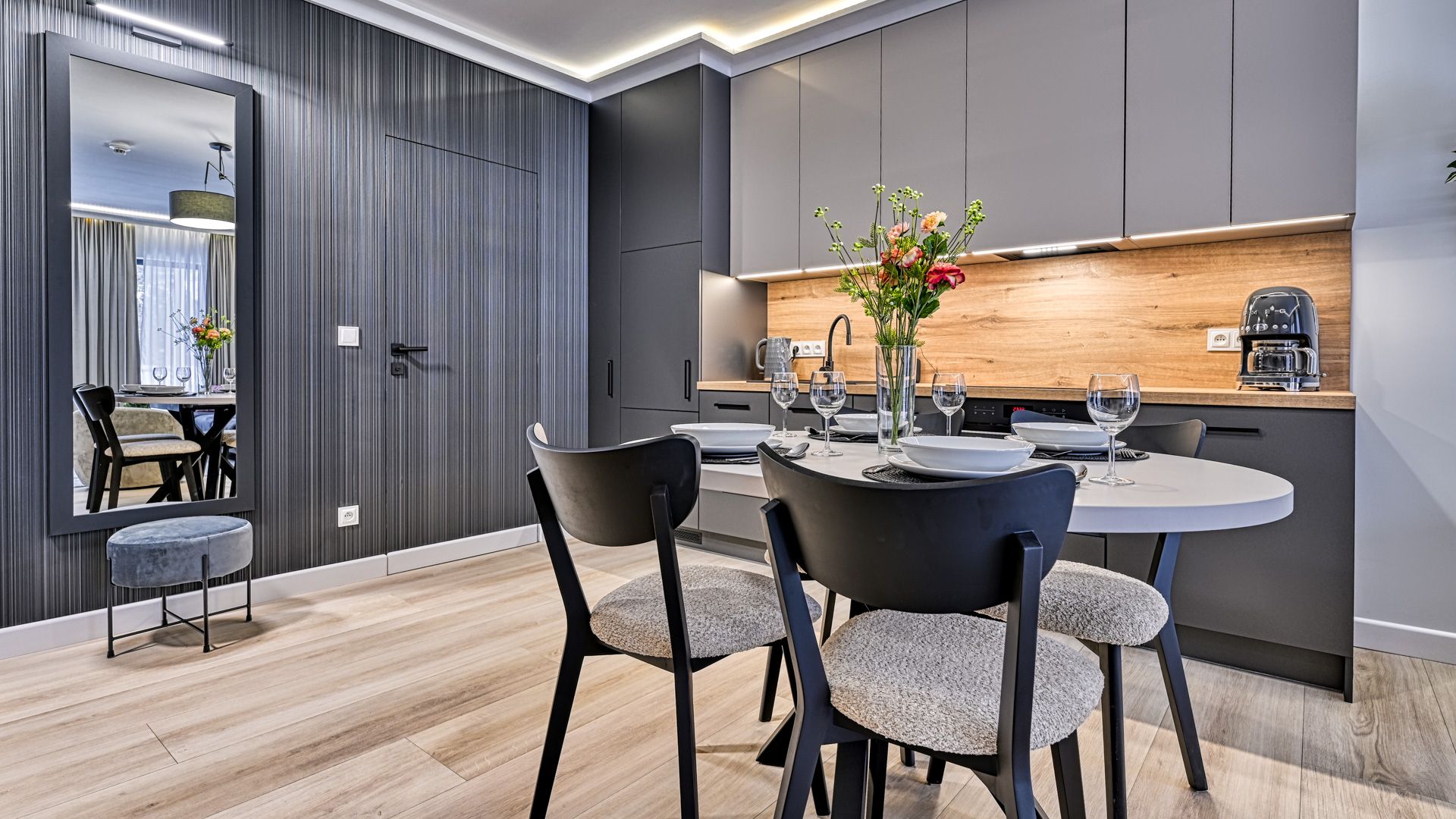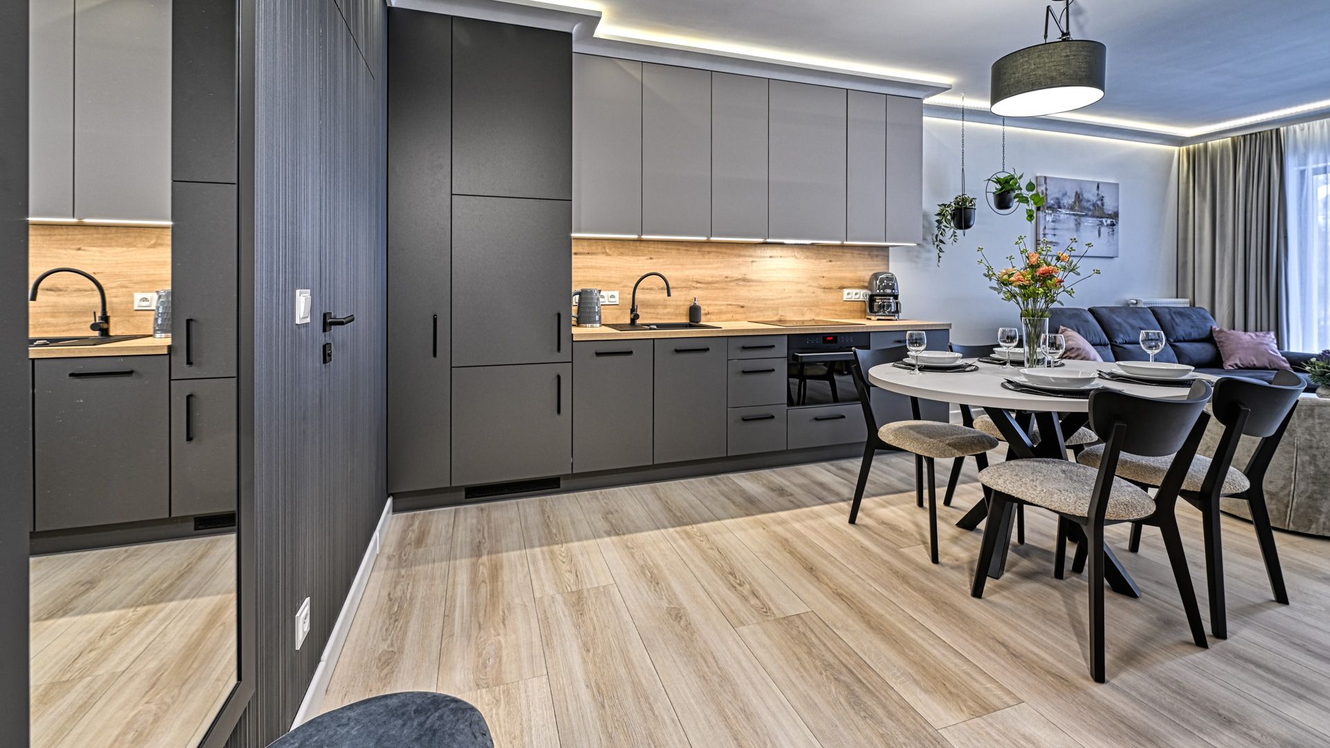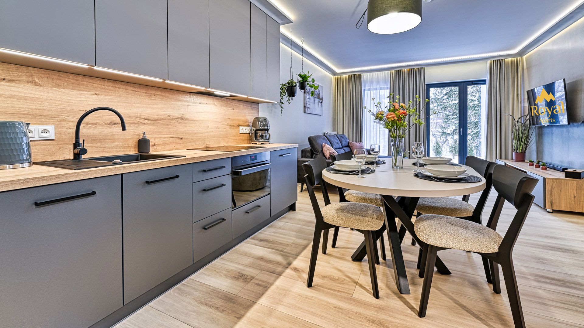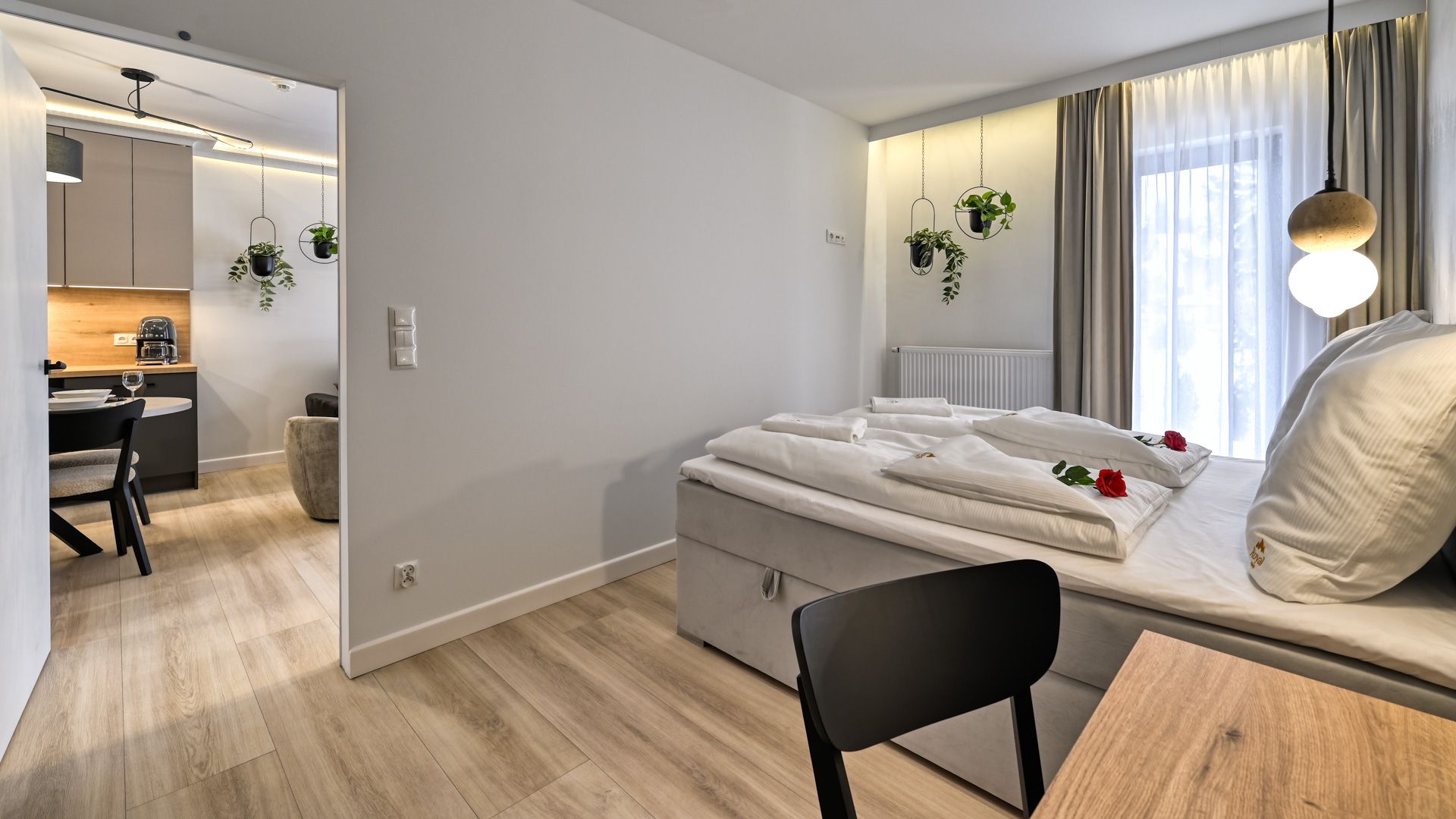 Zapraszamy do tego przytulnego apartamentu, który w harmonii łączy nowoczesność, wygodę i bliskość natury.