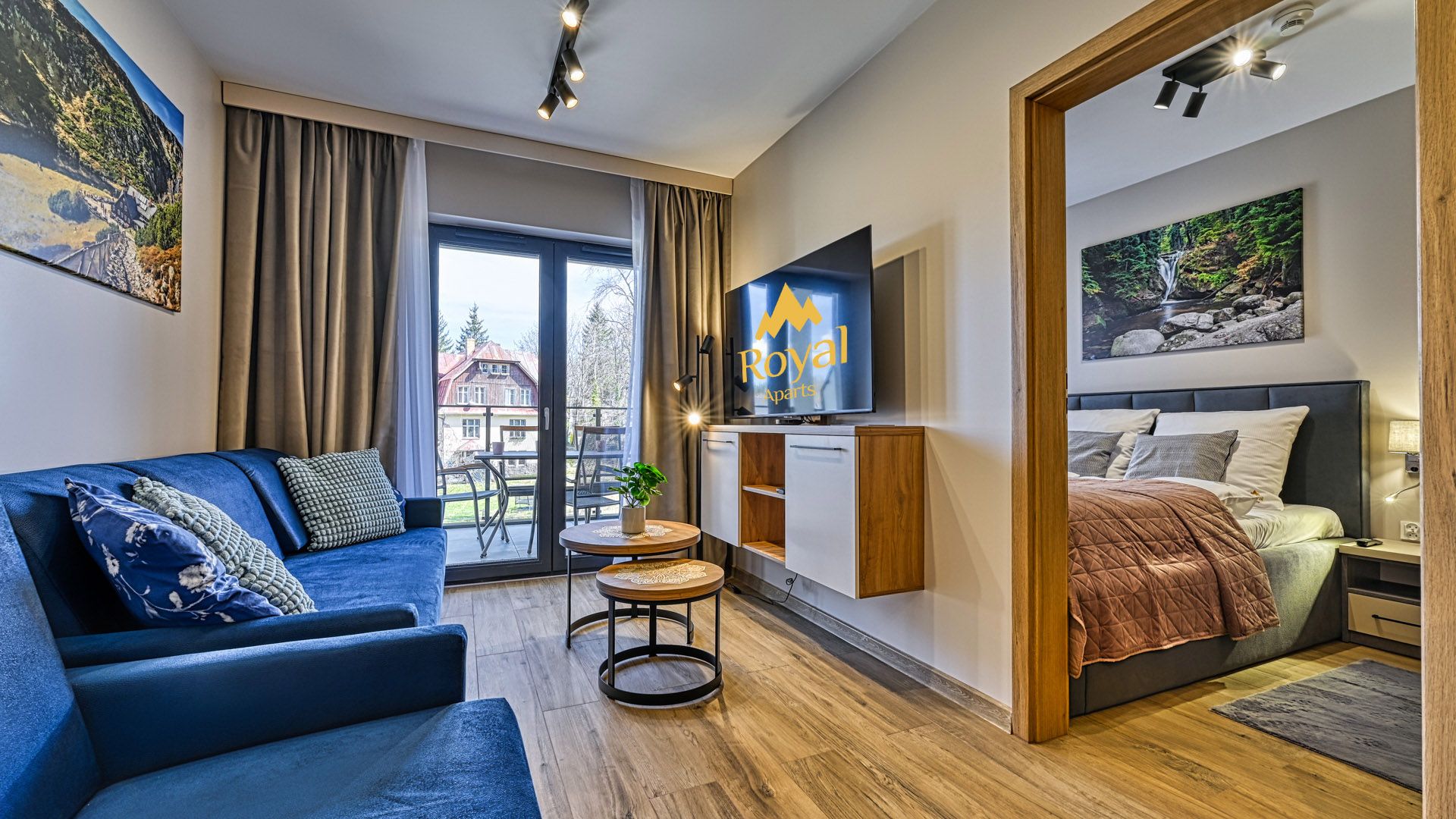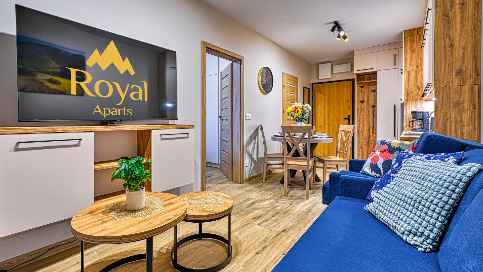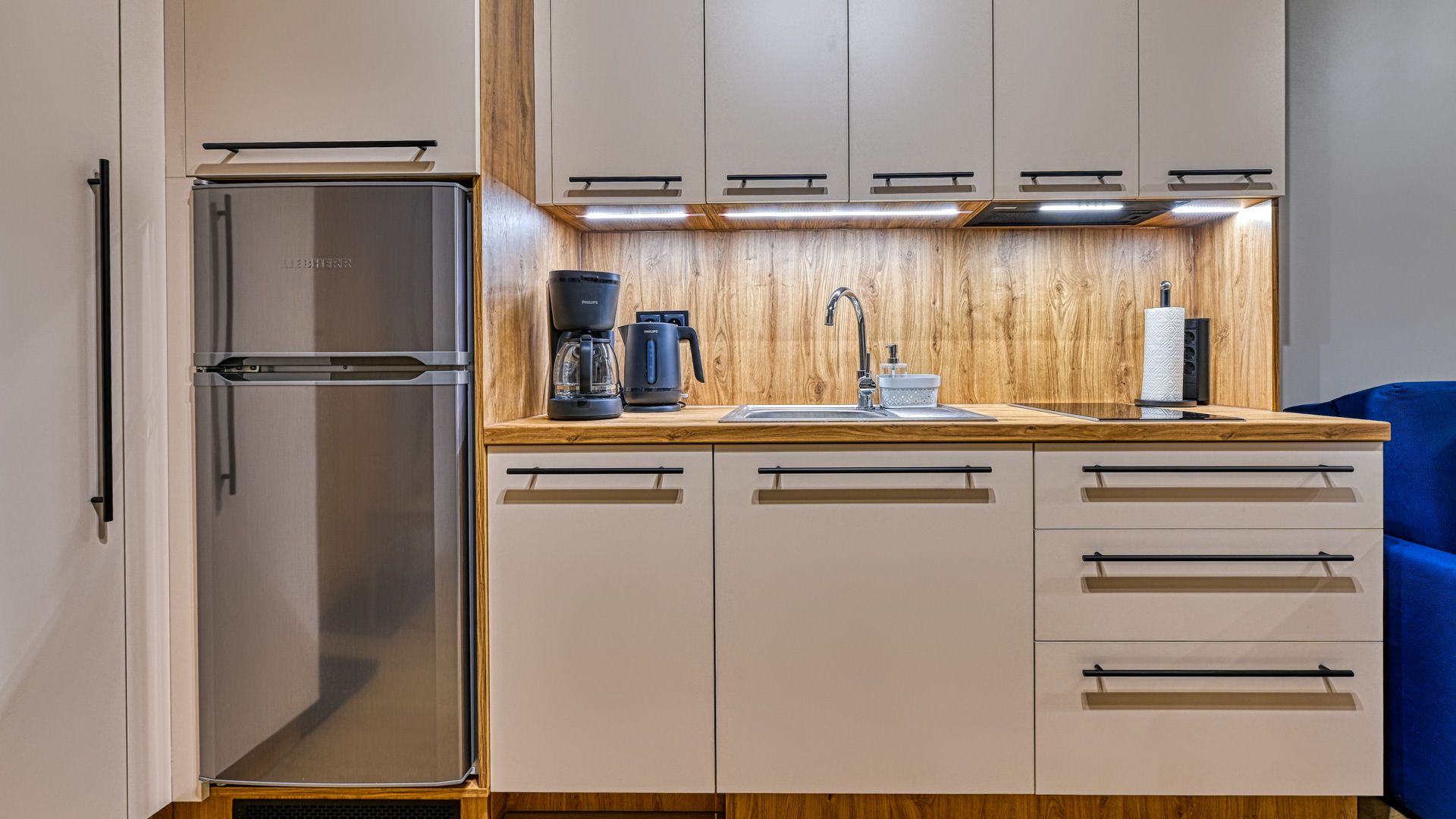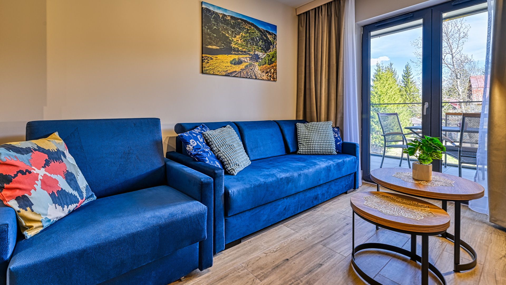 Apartament został zaprojektowany z myślą o komforcie i wygodzie. Przestronny salon oferuje wygodną sofę, fotel oraz telewizor, które zachęcają do relaksu po dniu pełnym wrażeń. W pełni wyposażony aneks kuchenny pozwala na przygotowanie ulubionych posiłków.