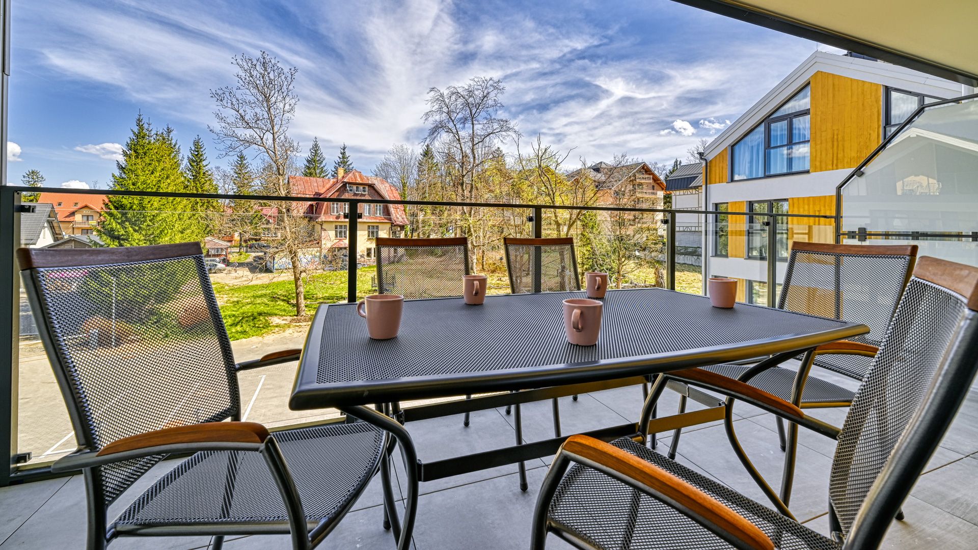 Dodatkowym atutem apartamentu jest balkon, gdzie można rozpocząć dzień przy filiżance kawy lub zakończyć go, delektując się spokojem i pięknem otoczenia.