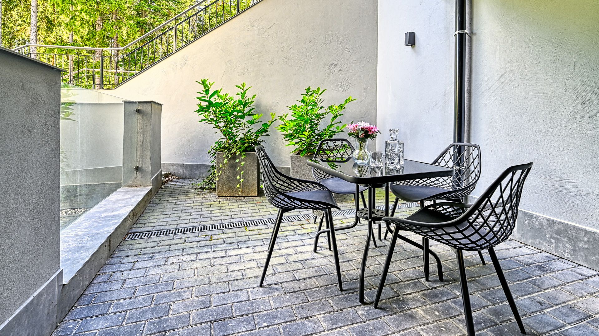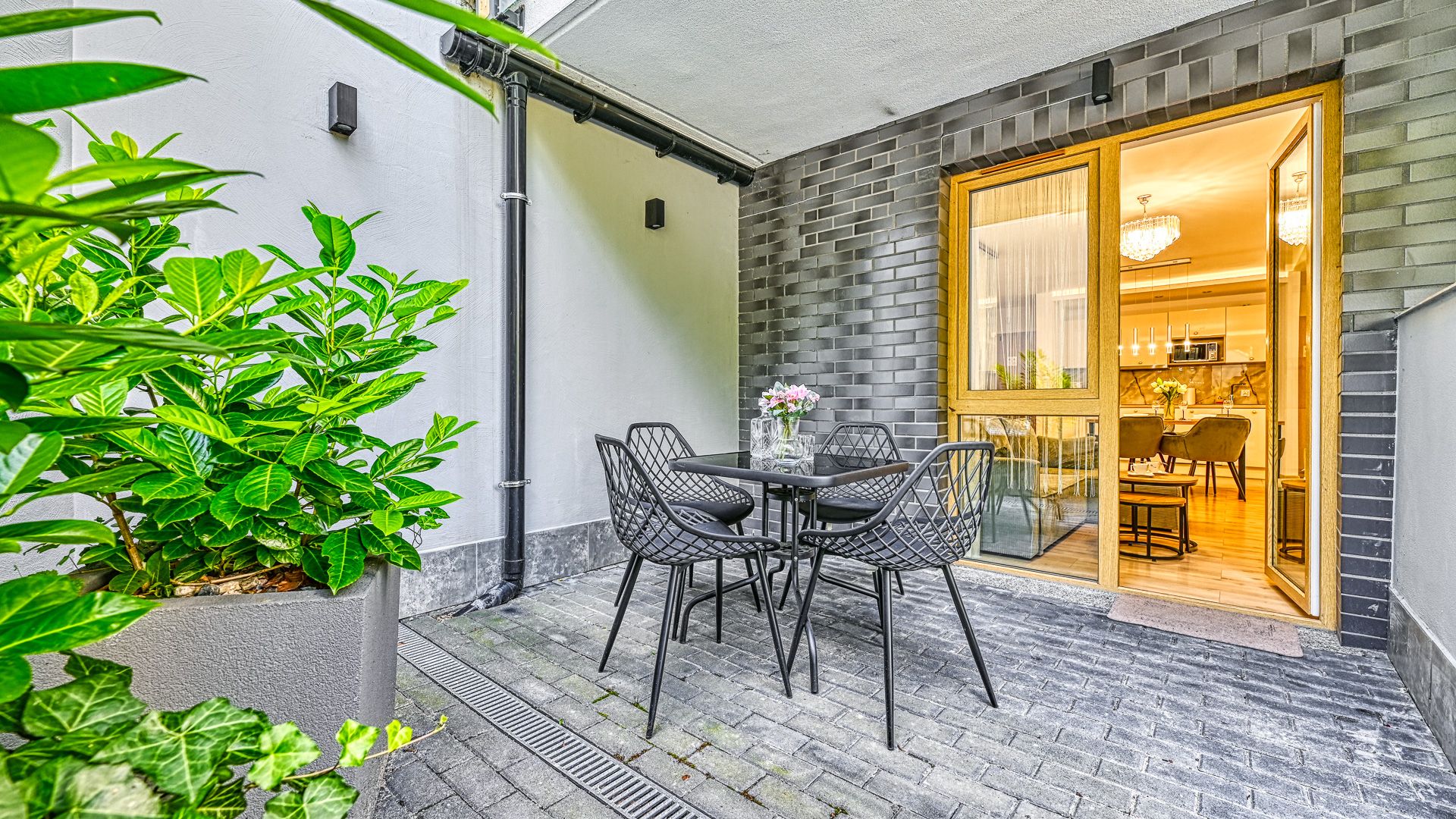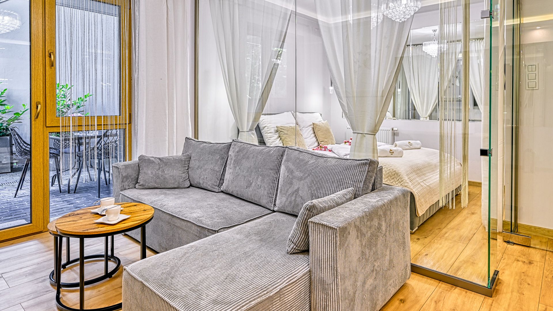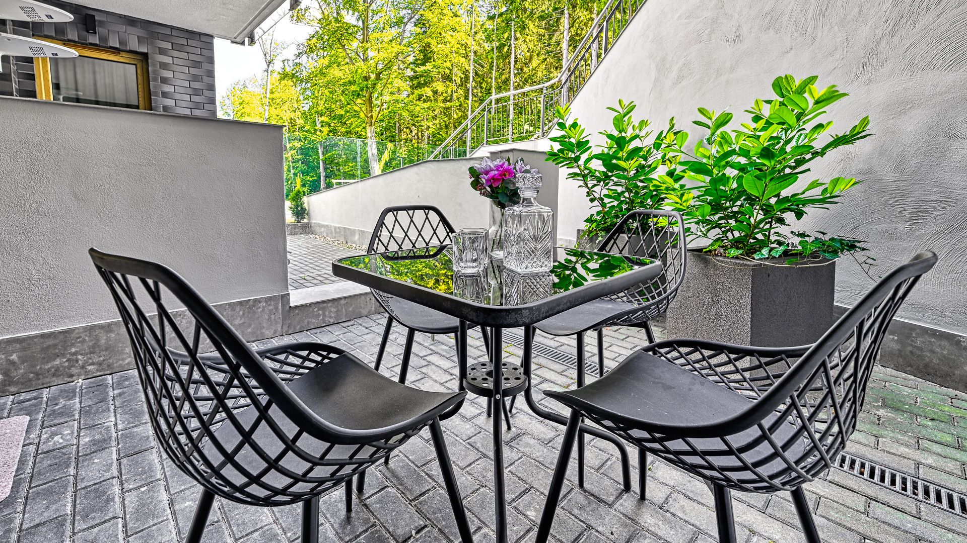 Otwierając drzwi tarasowe, możesz cieszyć się świeżym powietrzem i widokiem na ogród. To idealne miejsce, aby wypić poranną kawę lub delektować się romantyczną kolacją przy zachodzie słońca.