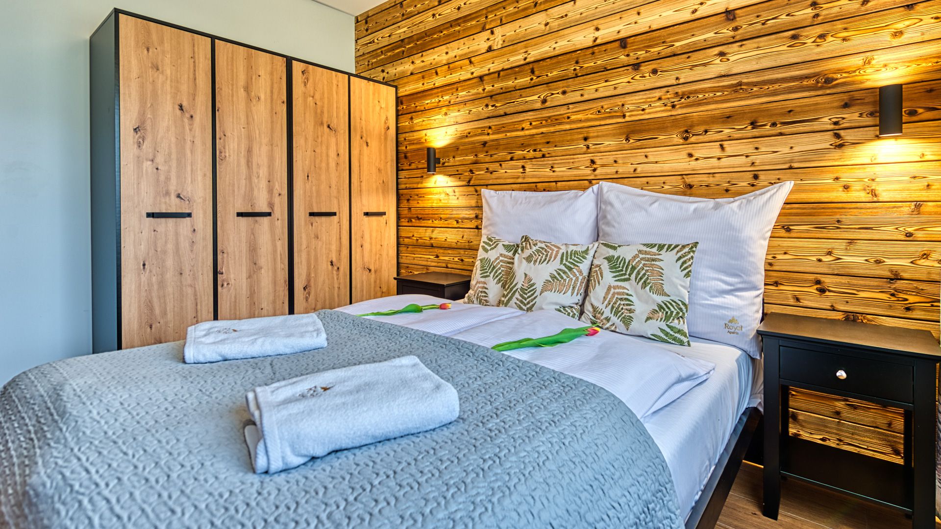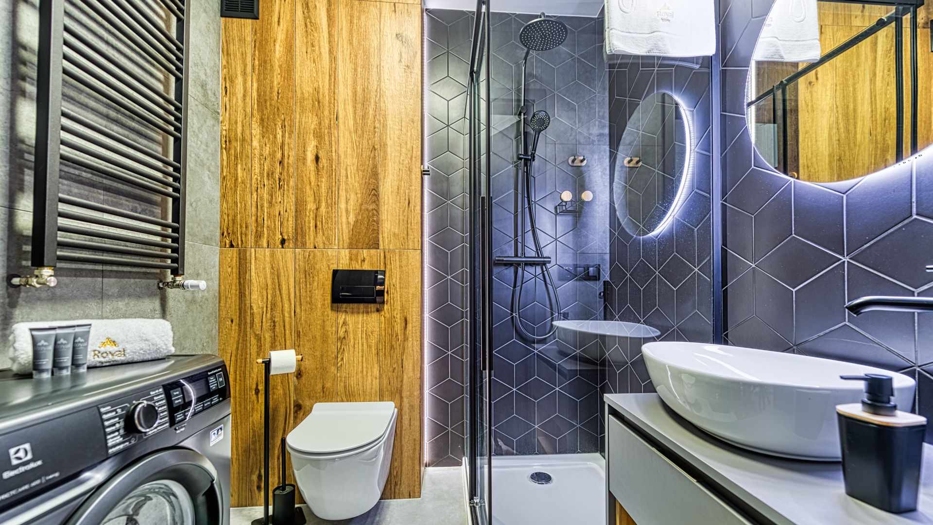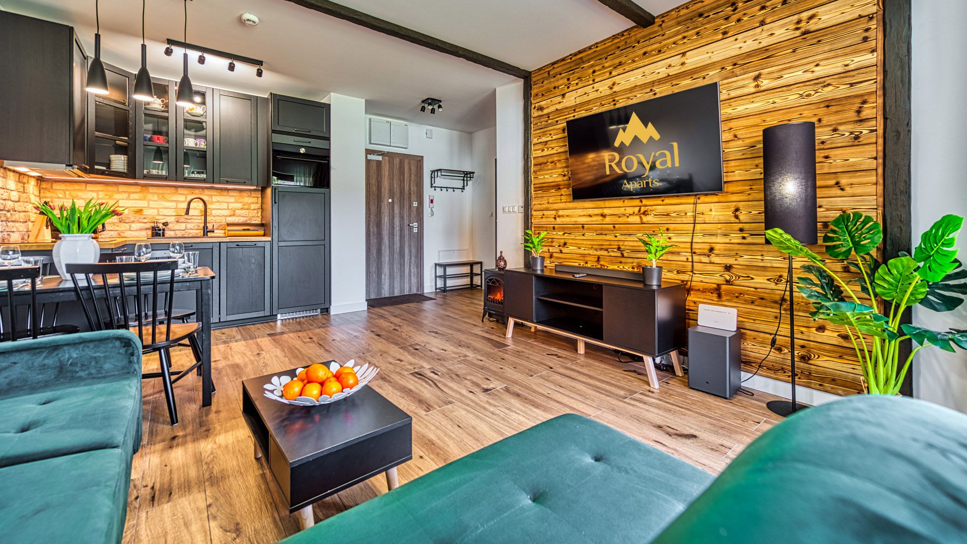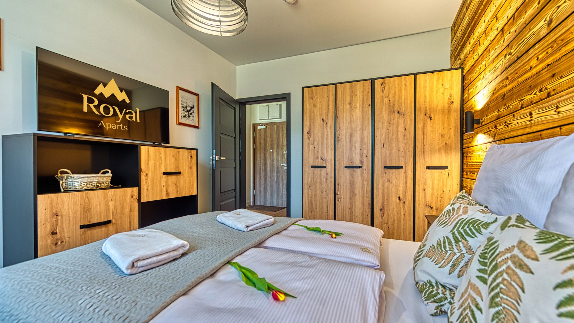 Prezentowany apartament jest częścią prestiżowego kompleksu Stone Hill w samym centrum Szklarskiej Poręby. To nowoczesny, czteroosobowy, w pełni wyposażony lokal o powierzchni 40m^2. W sypialni znajduje się duże łóżko małżeńskie, telewizor oraz obszerna szafa. Część dzienna apartamentu składa się z, salonu połączonego z aneksem kuchennym i wyposażona jest w rozkładaną sofę, panoramiczny telewizor, kominek i stół kuchenny. Całość domyka wykończona w wysokim standardzie łazienka.