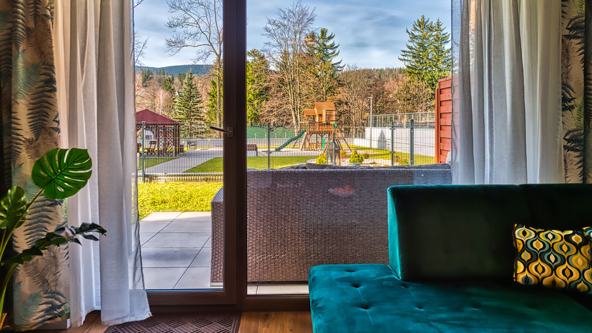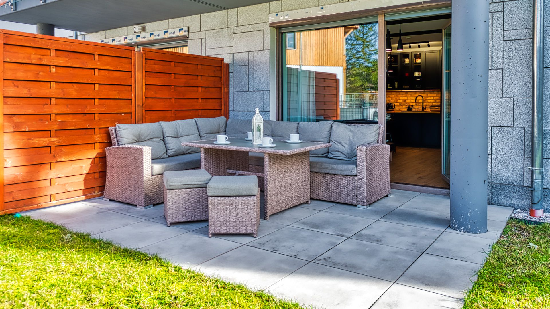Obszerny taras z widokiem na ogród będzie ulubionym miejscem Gości na poranną kawę.