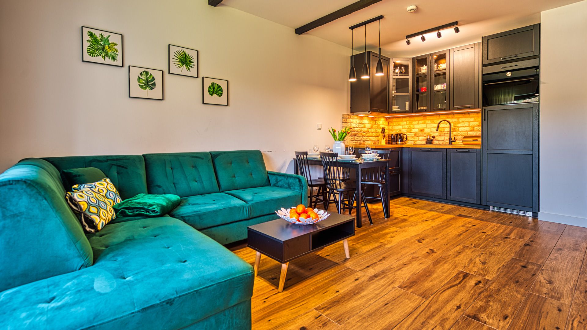 W pełni doposażony aneks kuchenny umożliwi przygotowanie nawet uroczystej kolacji. W skład wyposażenia wchodzą m.in.: talerze i sztućce, płyta kuchenna wraz z garnkami i patelnią, opiekacz/toster, lodówka, zmywarka, mikrofalówka oraz ekspres do kawy.