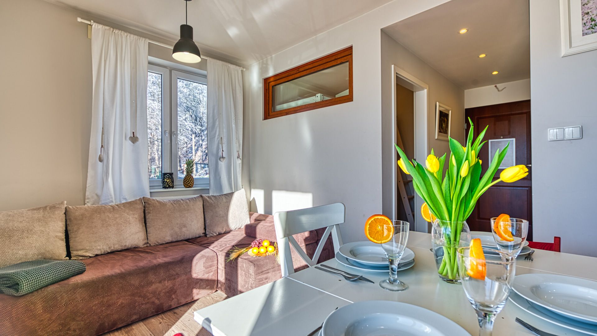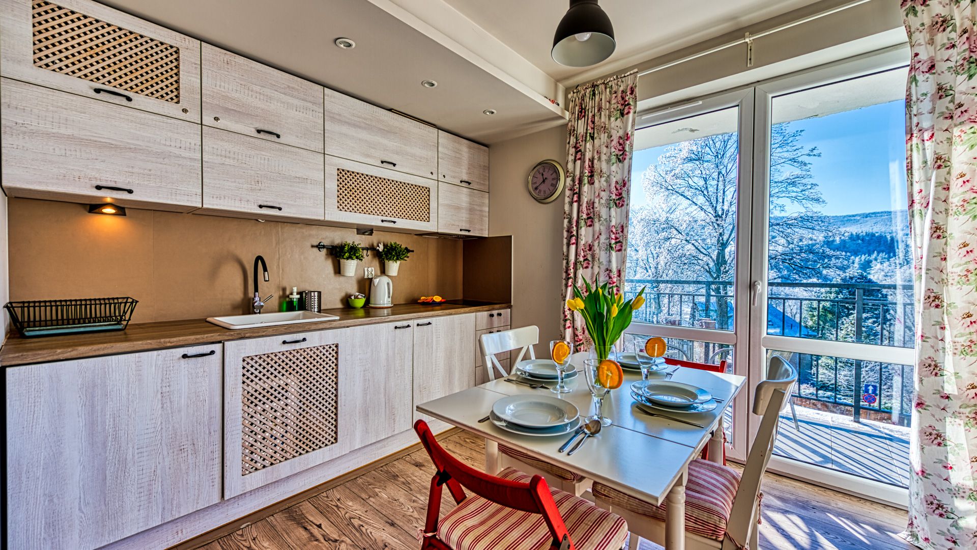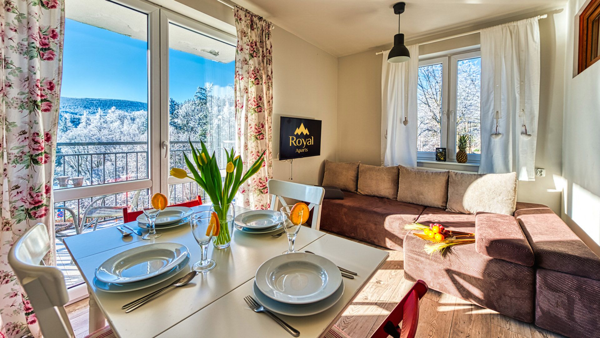 Prezentowany apartament znajduje się przy ulicy Dworcowej 1A w Szklarskiej Porębie, oferując niezapomniany widok na otaczające go górskie krajobrazy. To przytulny lokal o powierzchni 27m^2 dla maksymalnie trzech osób, który zapewnia komfortowy pobyt w sercu tej urokliwej miejscowości. W apartamencie do dyspozycji Gości znajduje się sypialnia z wygodnym jednoosobowym łóżkiem, salon z częścią wypoczynkową, jadalnią oraz aneksem kuchennym. Łazienka wyposażona jest w prysznic, toaletę, umywalkę i lustro. Największym atutem tego lokalu jest jednak piękny taras, na którym można cieszyć się świeżym powietrzem i widokiem na góry.