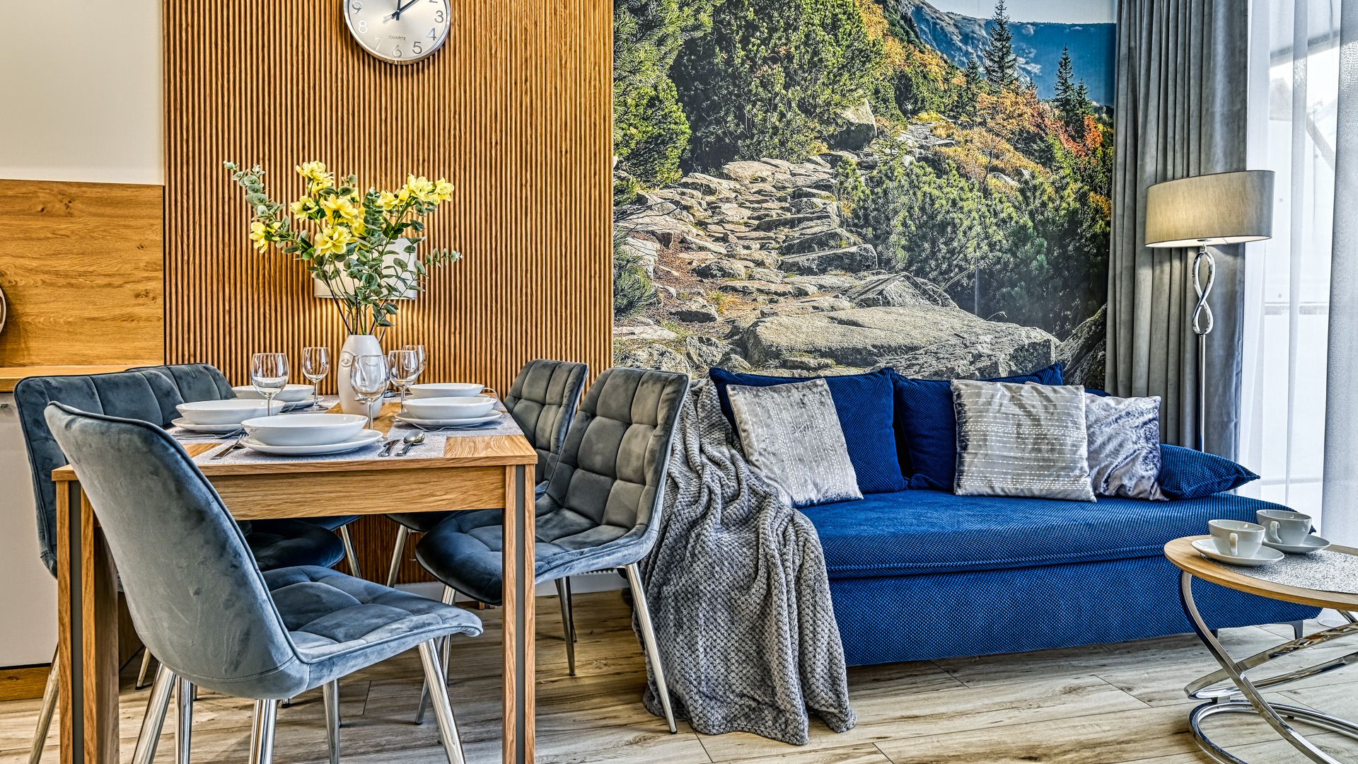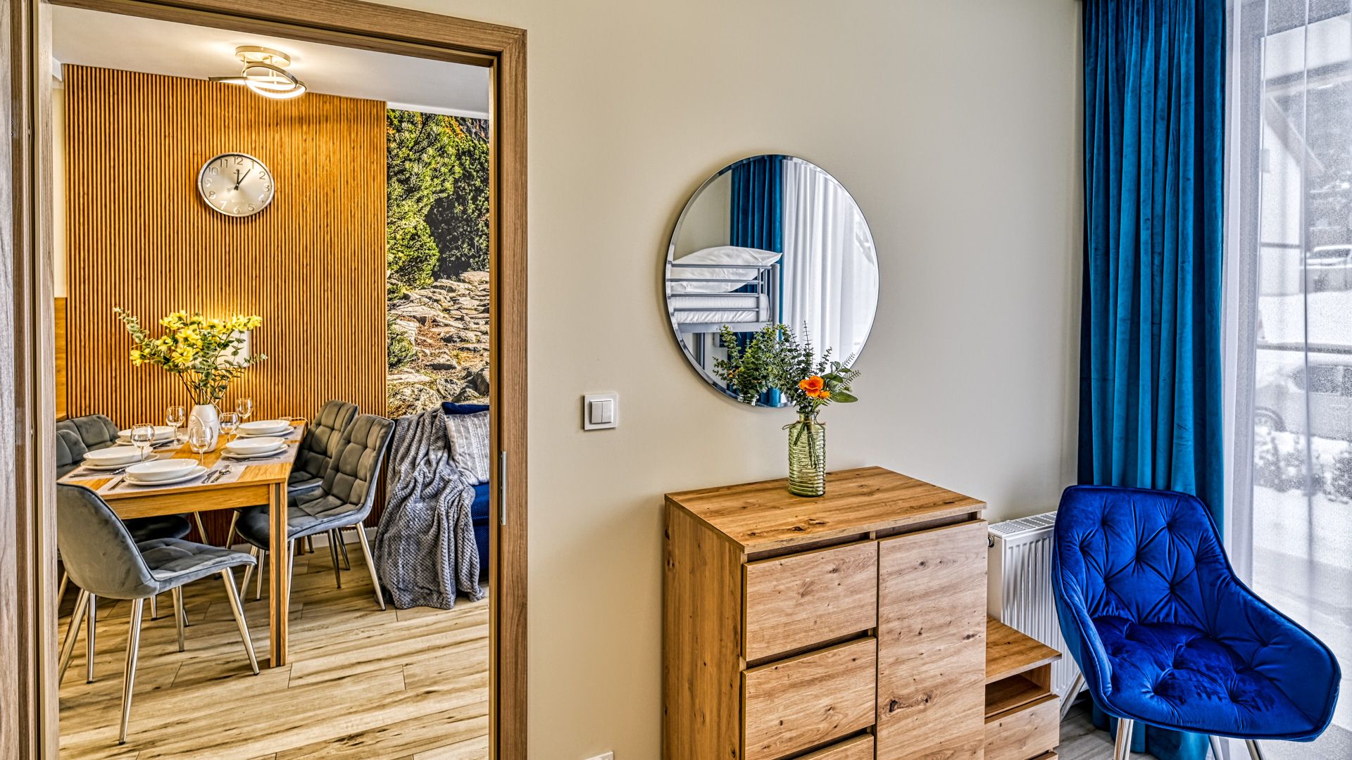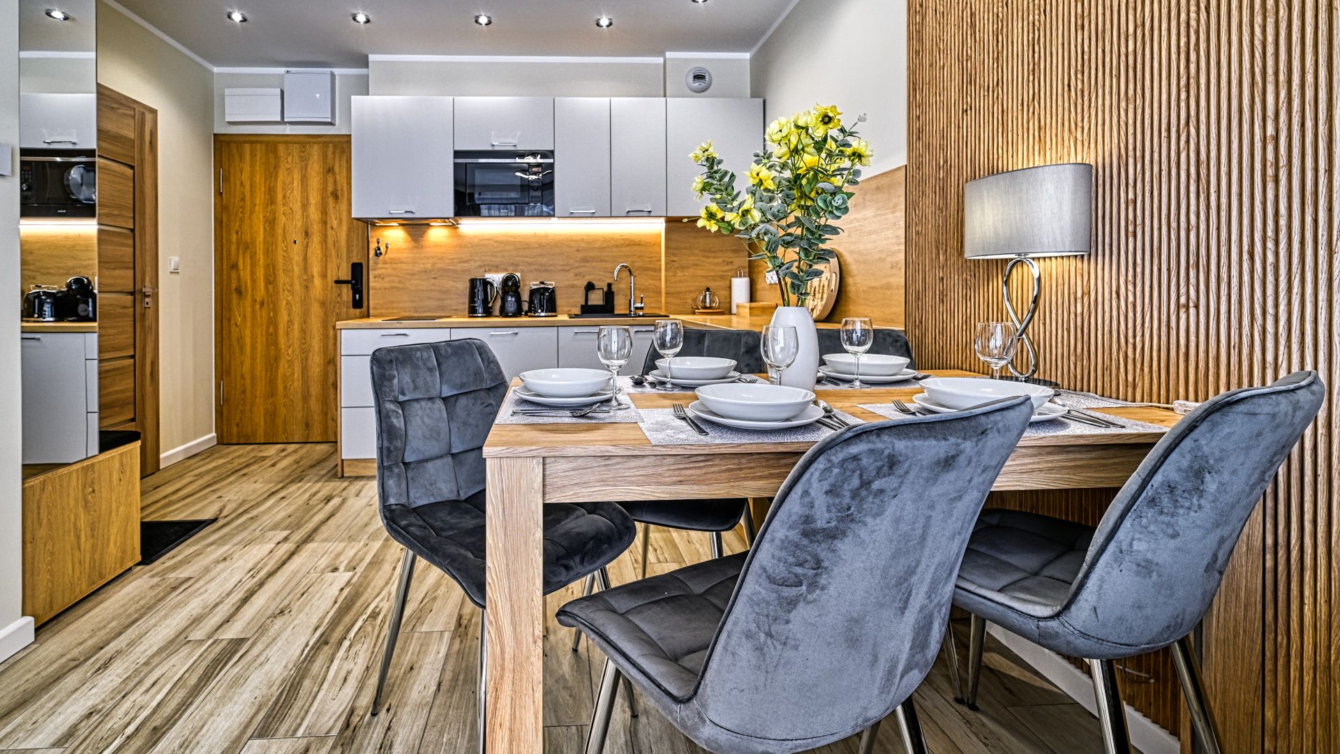 Ten pięcioosobowy apartament Deluxe to komfortowe miejsce na wypoczynek, idealne zarówno na krótki pobyt, jak i dłuższy urlop. Funkcjonalnie urządzona przestrzeń zapewnia wygodę i wszystkie niezbędne udogodnienia.