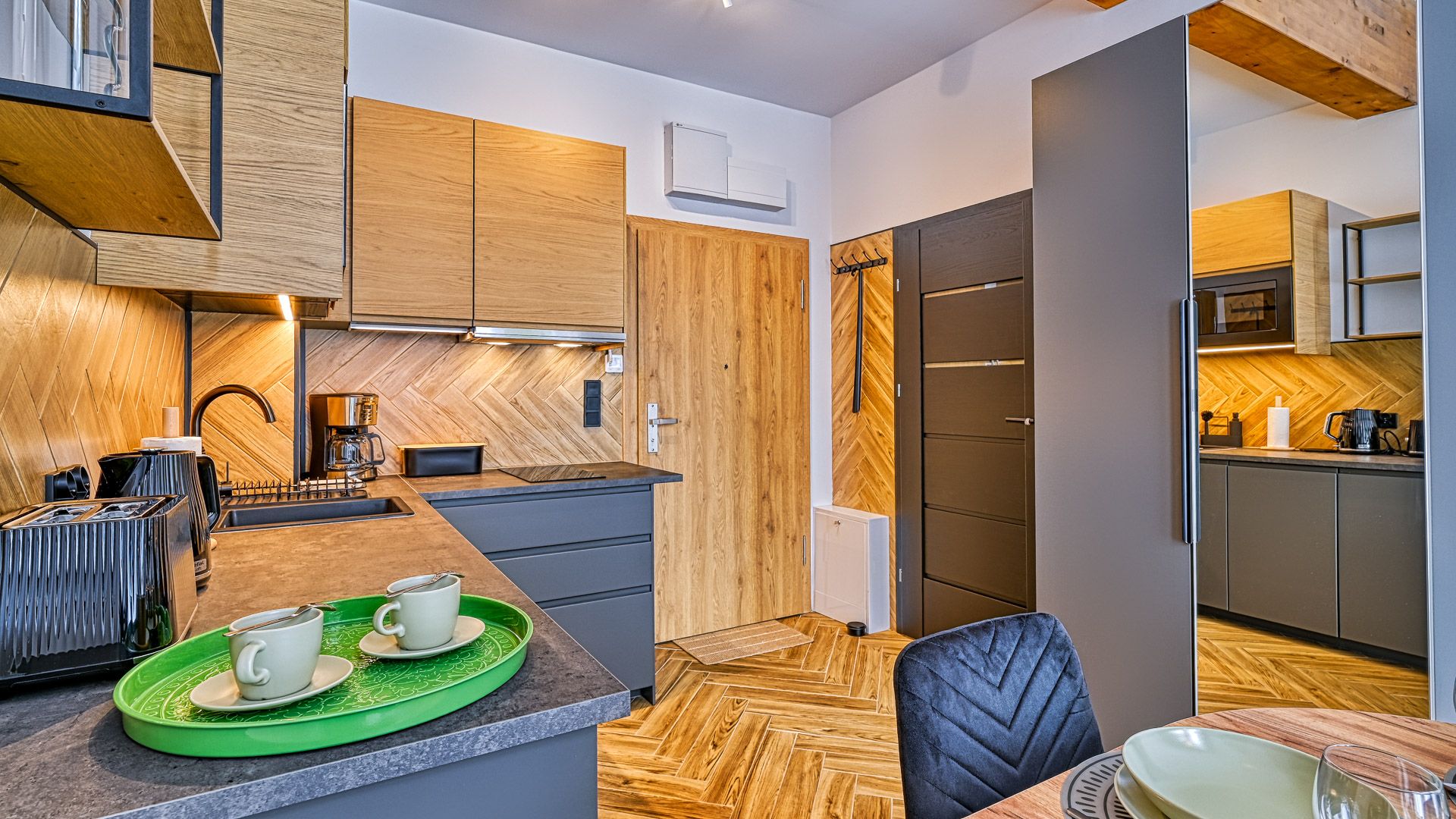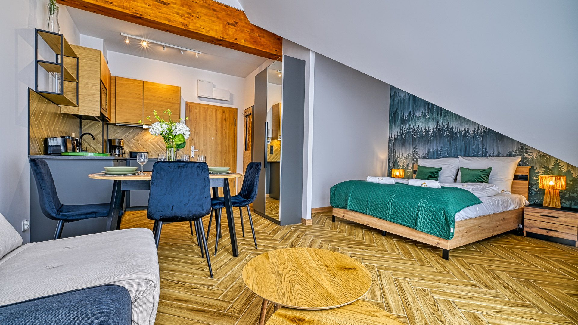 Ten czteroosobowy apartament Deluxe to komfortowe miejsce na wypoczynek, idealne zarówno na krótki pobyt, jak i dłuższy urlop. Funkcjonalnie urządzona przestrzeń zapewnia wygodę i wszystkie niezbędne udogodnienia.