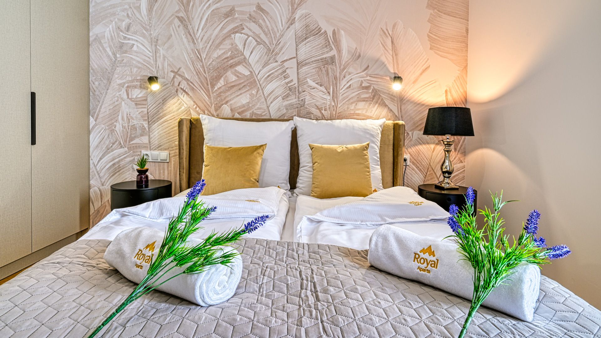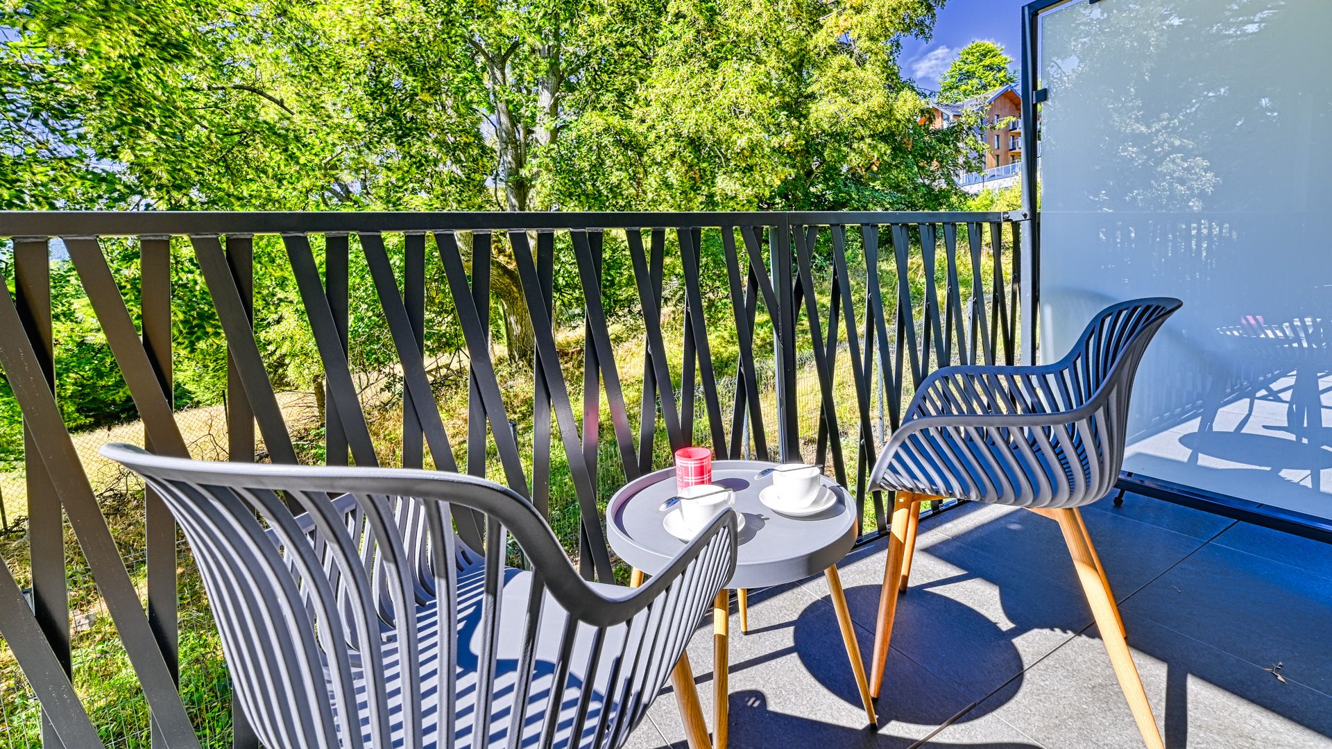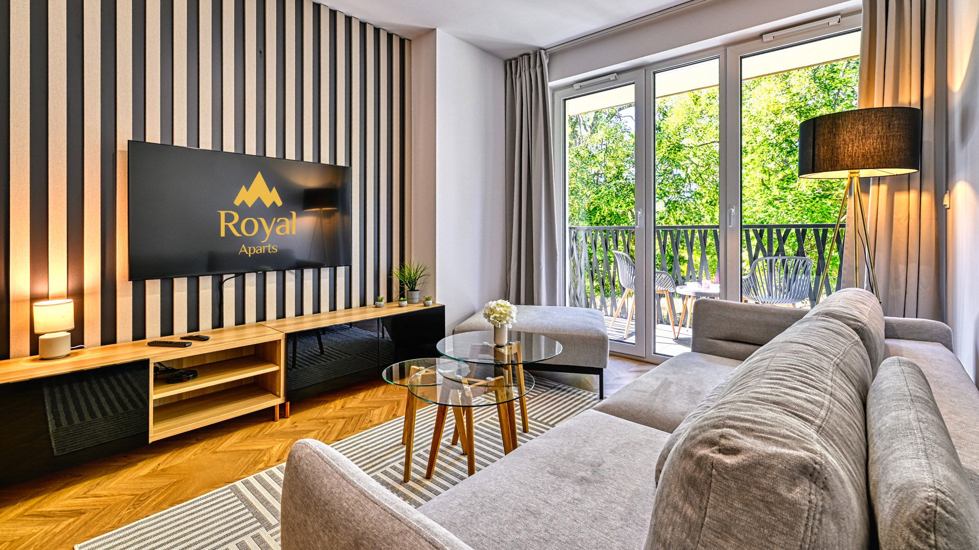 Apartament składa się z sypialni z wygodnym łóżkiem małżeńskim, przestronnego salonu z rozkładaną sofą, w pełni wyposażonego aneksu kuchennego oraz łazienki z prysznicem. Dodatkowym atutem jest balkon z meblami ogrodowymi, doskonały na poranną kawę lub relaks wieczorem.