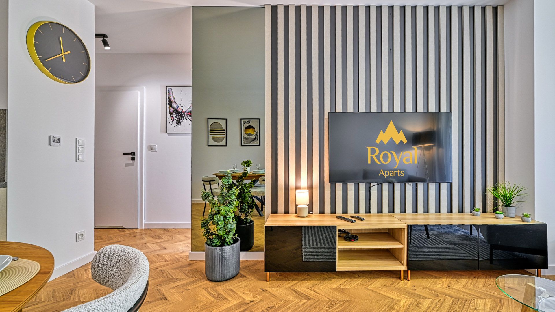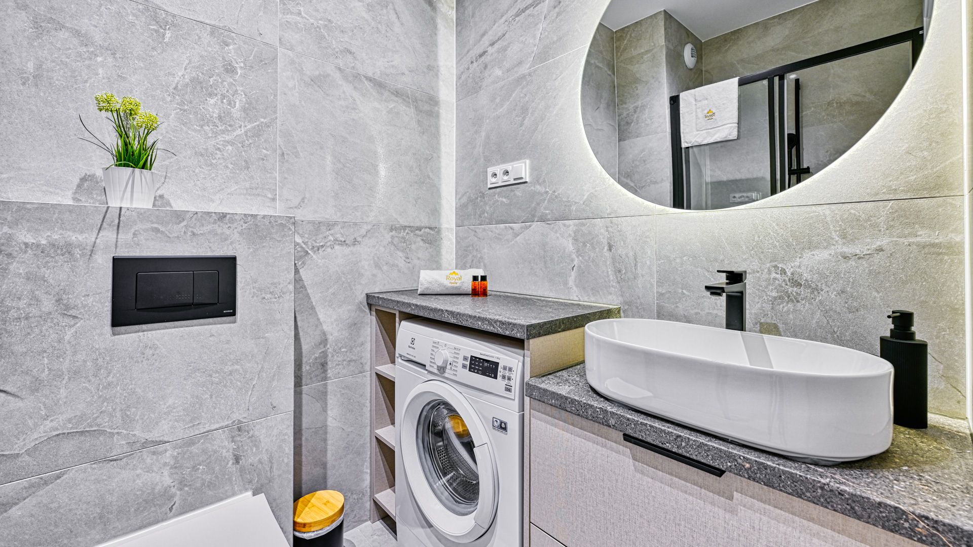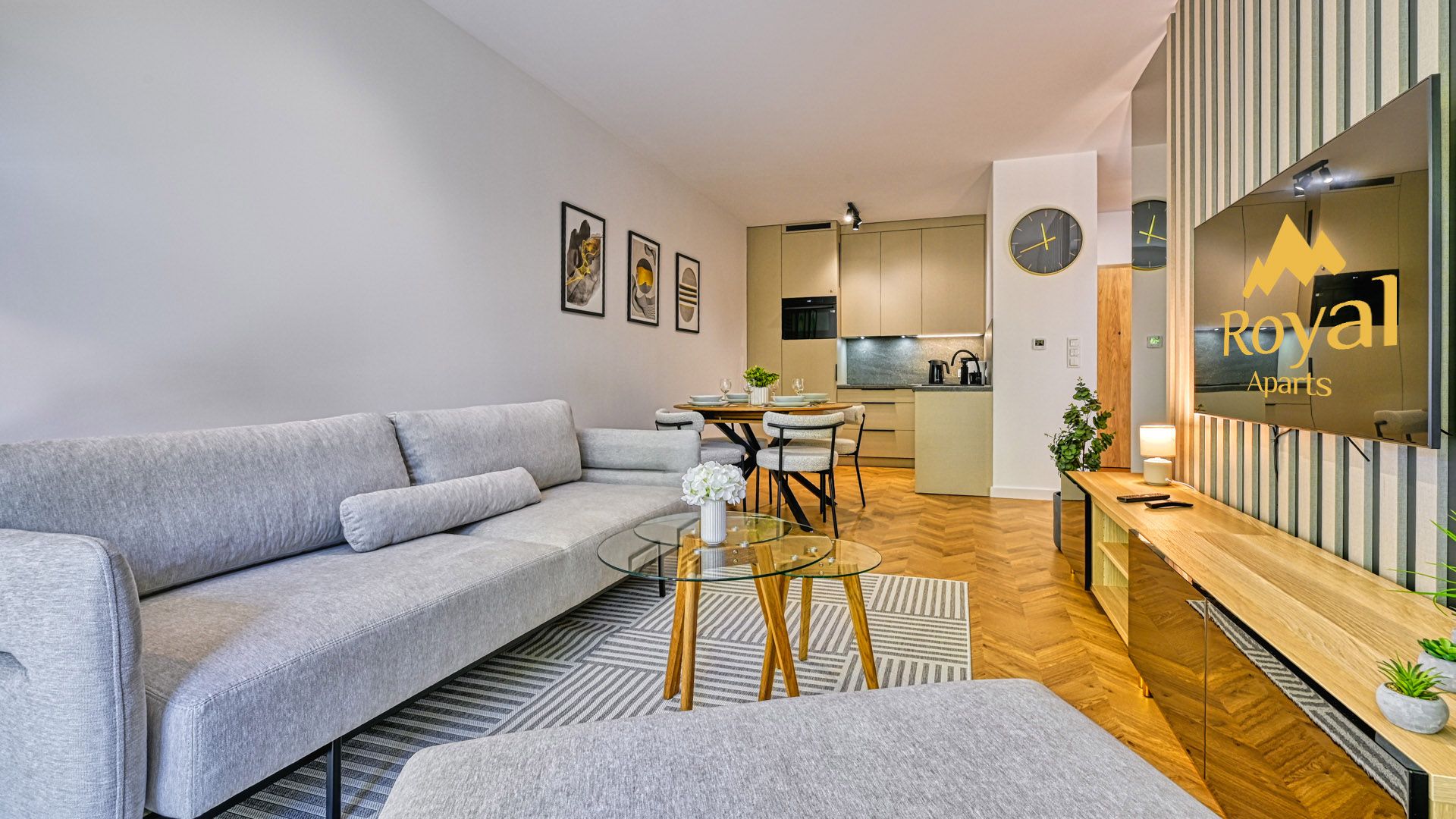 Na wyposażeniu znajduje się wszystko, co potrzebne do komfortowego pobytu: telewizor, bezpłatne Wi-Fi, ogrzewanie, pralka, suszarka do włosów, ręczniki oraz zestaw kosmetyków. Aneks kuchenny oferuje m.in. lodówkę, piekarnik, zmywarkę, ekspres do kawy, czajnik oraz komplet naczyń i sztućców. W budynku dostępna jest również winda, co zapewnia dodatkową wygodę.