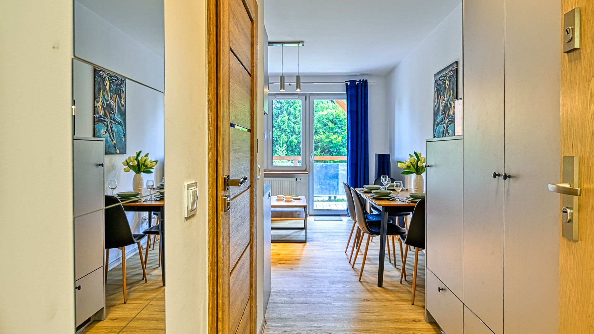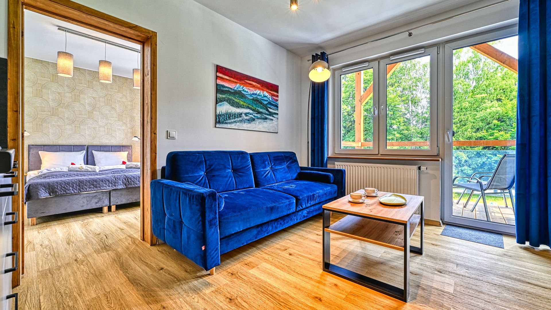 Apartament posiada balkon, który jest idealnym miejscem, aby zrelaksować się po pełnym wrażeń dniu i cieszyć się świeżym powietrzem.