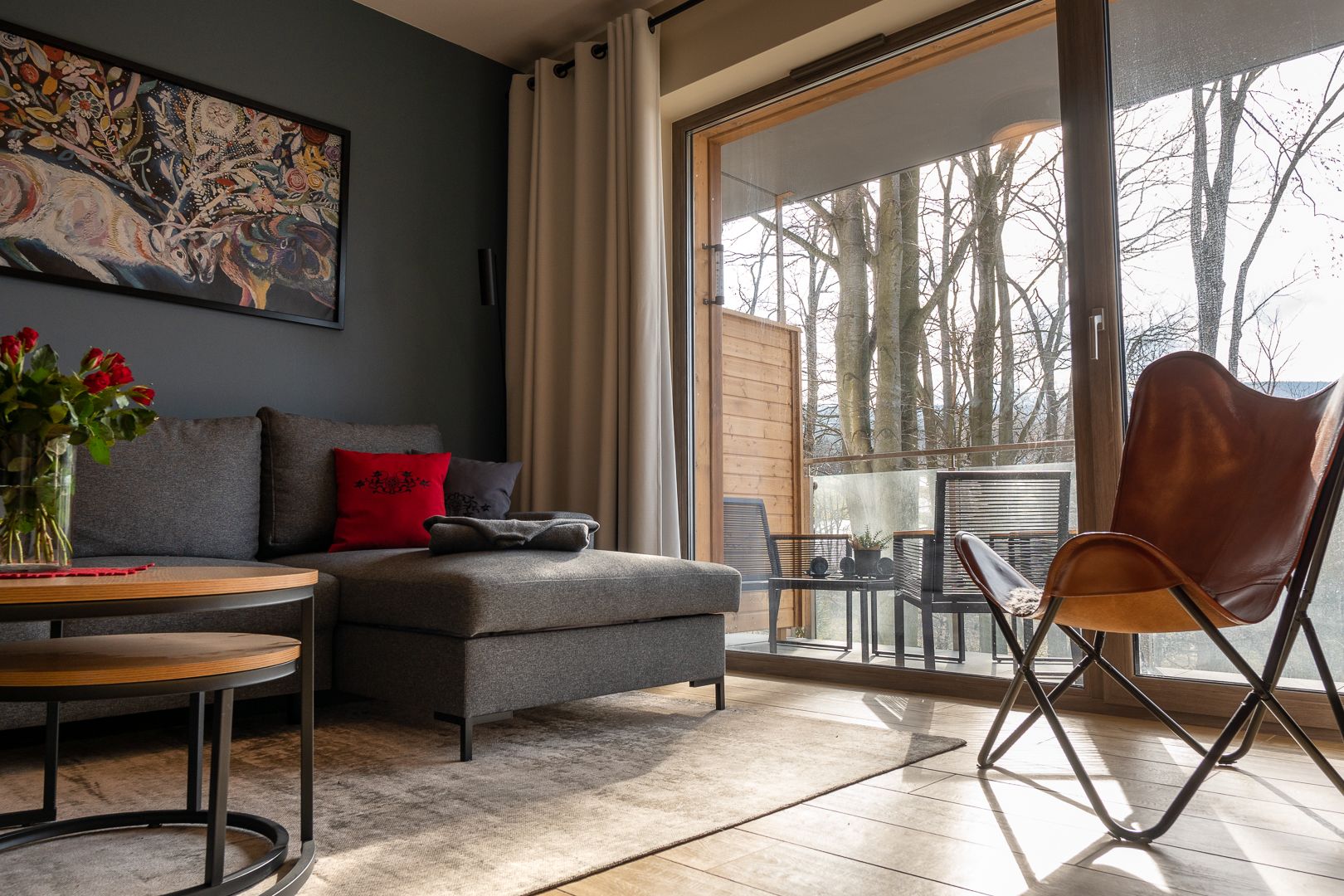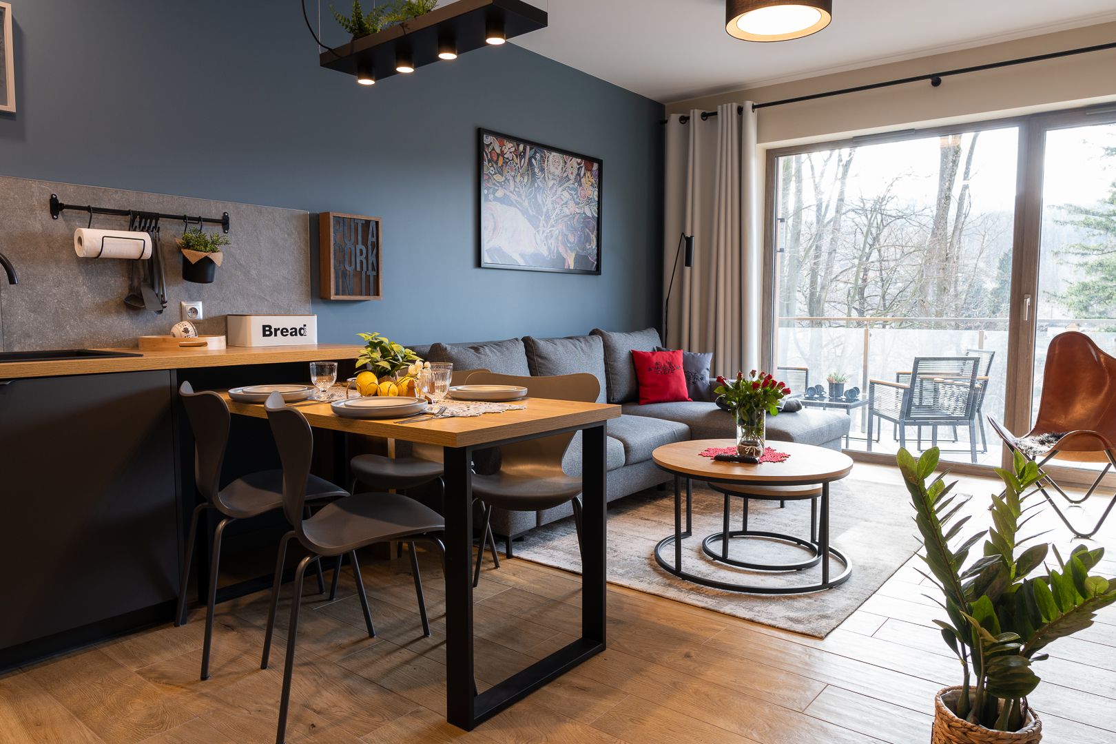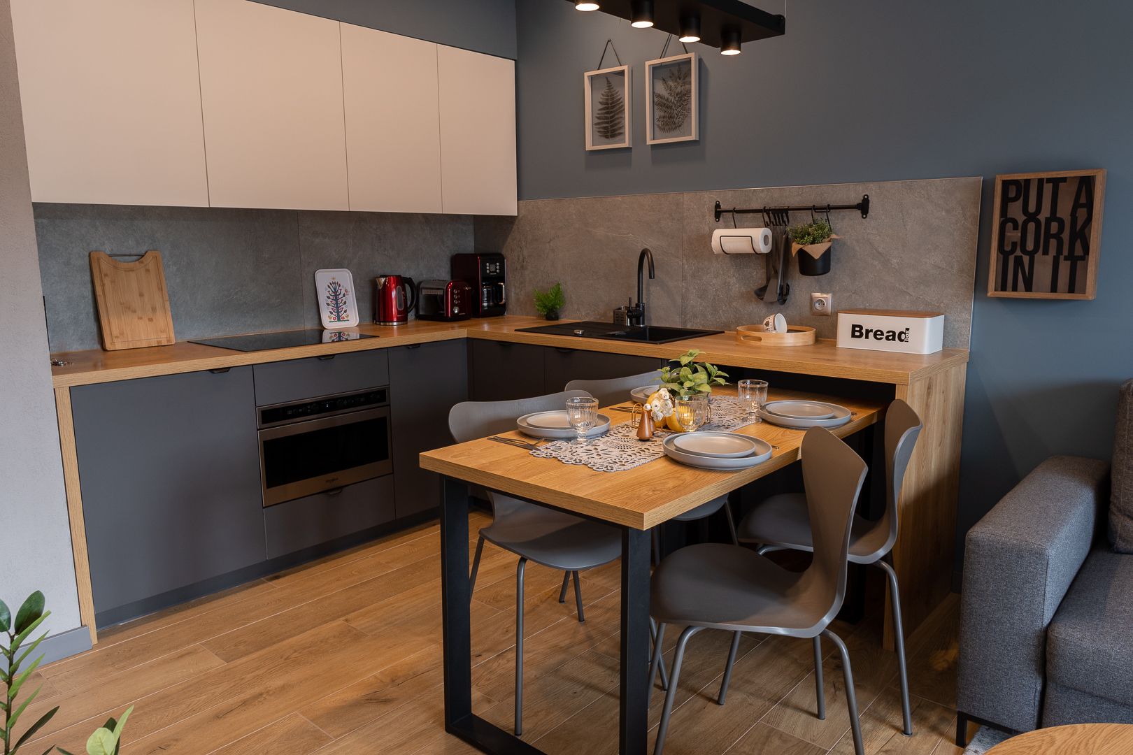 Obszerny balkon będzie ulubionym miejscem Gości na poranną kawę, a w pełni wyposażona kuchnia umożliwi przygotowanie nawet uroczystej kolacji. W skład wyposażenia wchodzą m.in.: talerze i sztućce, płyta kuchenna wraz z garnkami i patelnią, mikrofalówka, zmywarka oraz ekspres do kawy.
