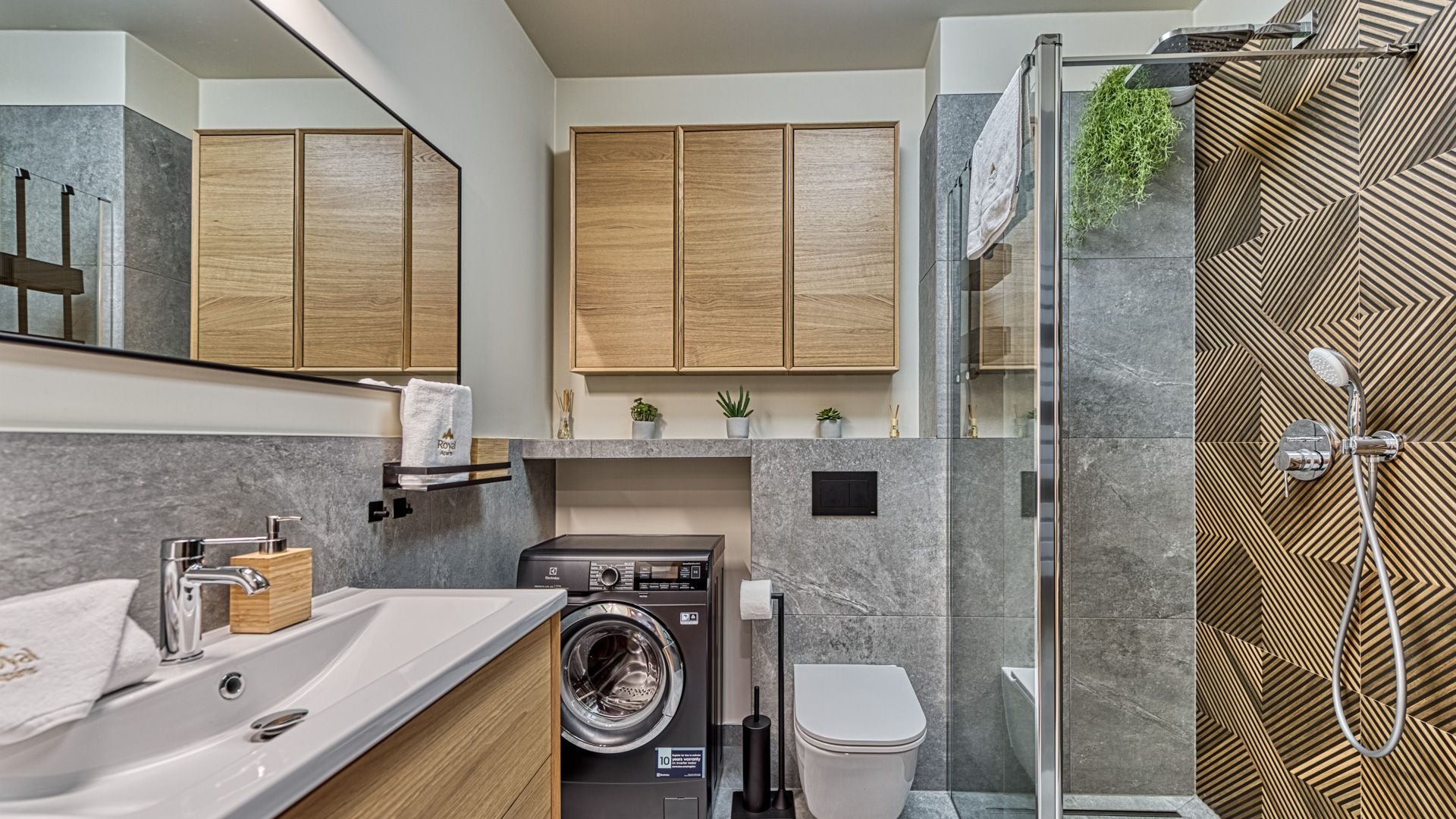Prezentowany apartament jest częścią prestiżowego kompleksu Stone Hill w samym centrum Szklarskiej Poręby. To nowoczesny, w pełni wyposażony apartament o powierzchni 38m^2, przeznaczony dla maksymalnie czterech osób. Składa się z sypialni, w której stoi duże, małżeńskie łoże, części wypoczynkowej, połączonej z aneksem kuchennym oraz łazienki z prysznicem i pralką. W części dziennej stoi rozkładana, dwuosobowa sofa, naprzeciwko której wisi panoramiczny telewizor.