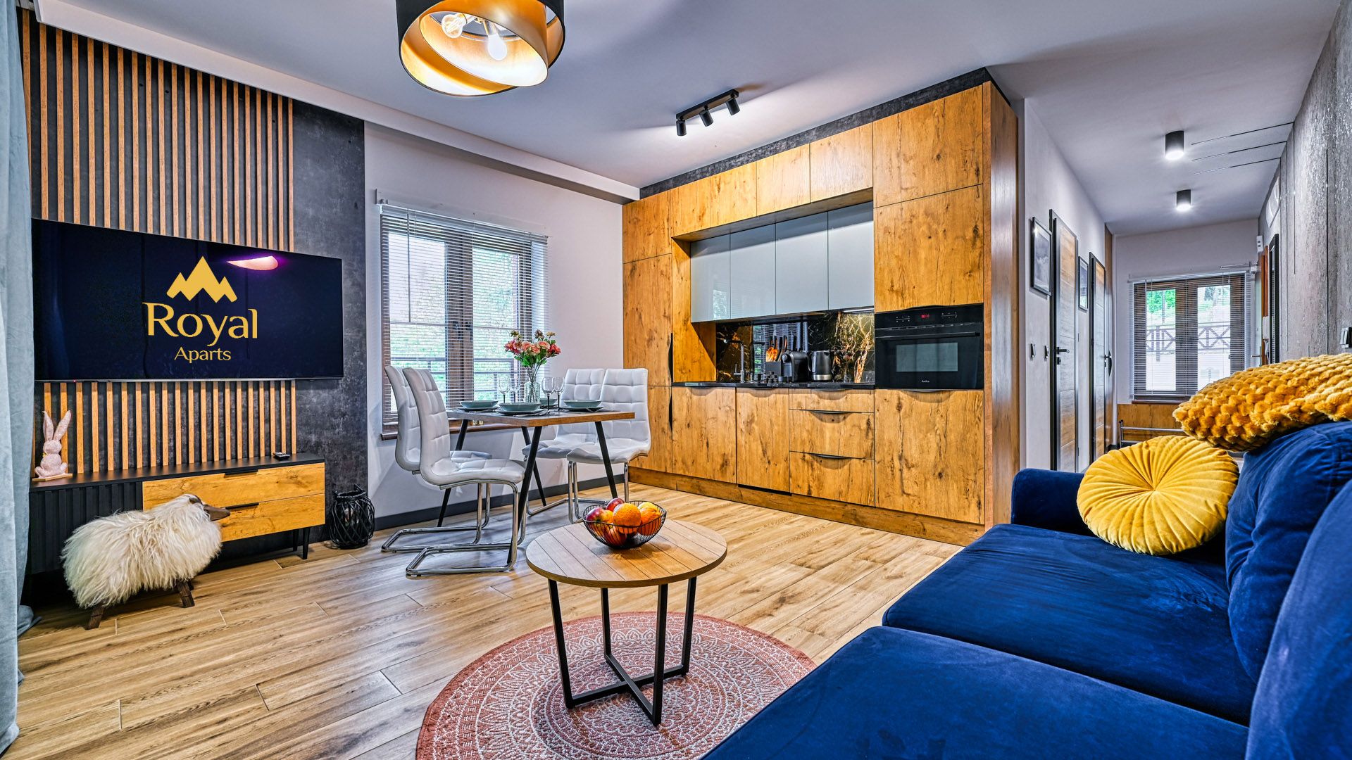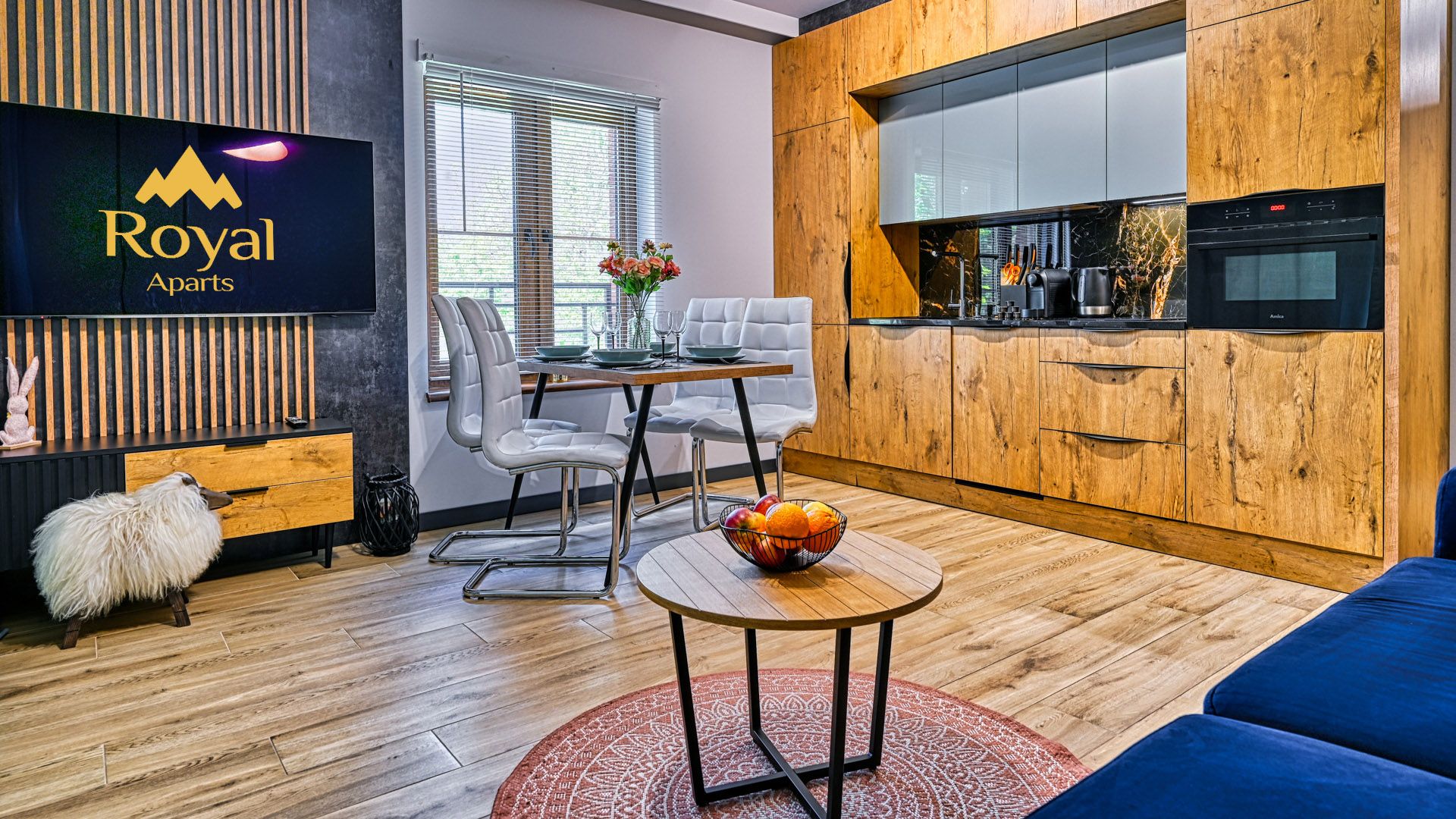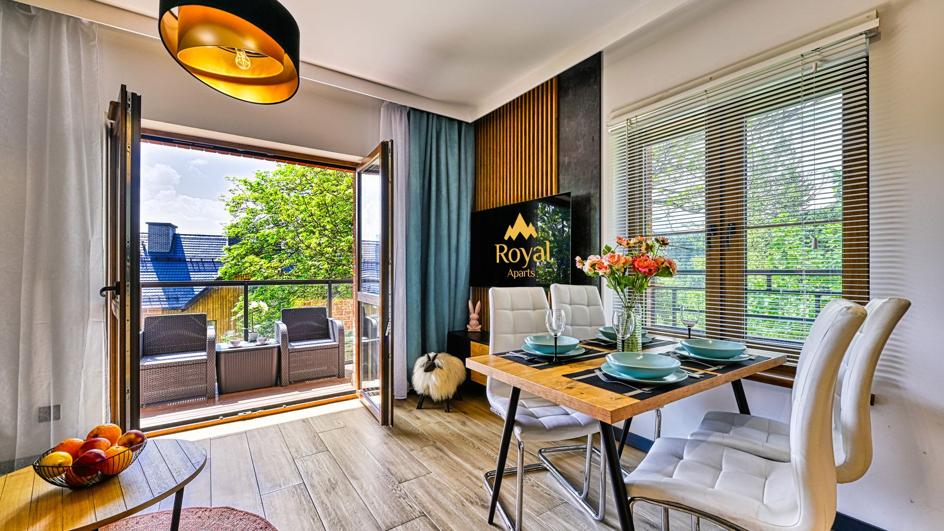 Prezentowany apartament jest częścią prestiżowego kompleksu Green Park Resort położonego w kameralnej i spokojnej części Szklarskiej Poręby. To nowoczesny, pięcioosobowy, w pełni wyposażony lokal o powierzchni 35,4m^2. W sypialni znajduje się duże łóżko małżeńskie, telewizor oraz obszerna szafa. Część dzienna apartamentu składa się z, salonu połączonego z aneksem kuchennym i wyposażona jest w rozkładaną sofę, rozkładany fotel, panoramiczny telewizor oraz stół kuchenny. Całość domyka wykończona w wysokim standardzie łazienka.