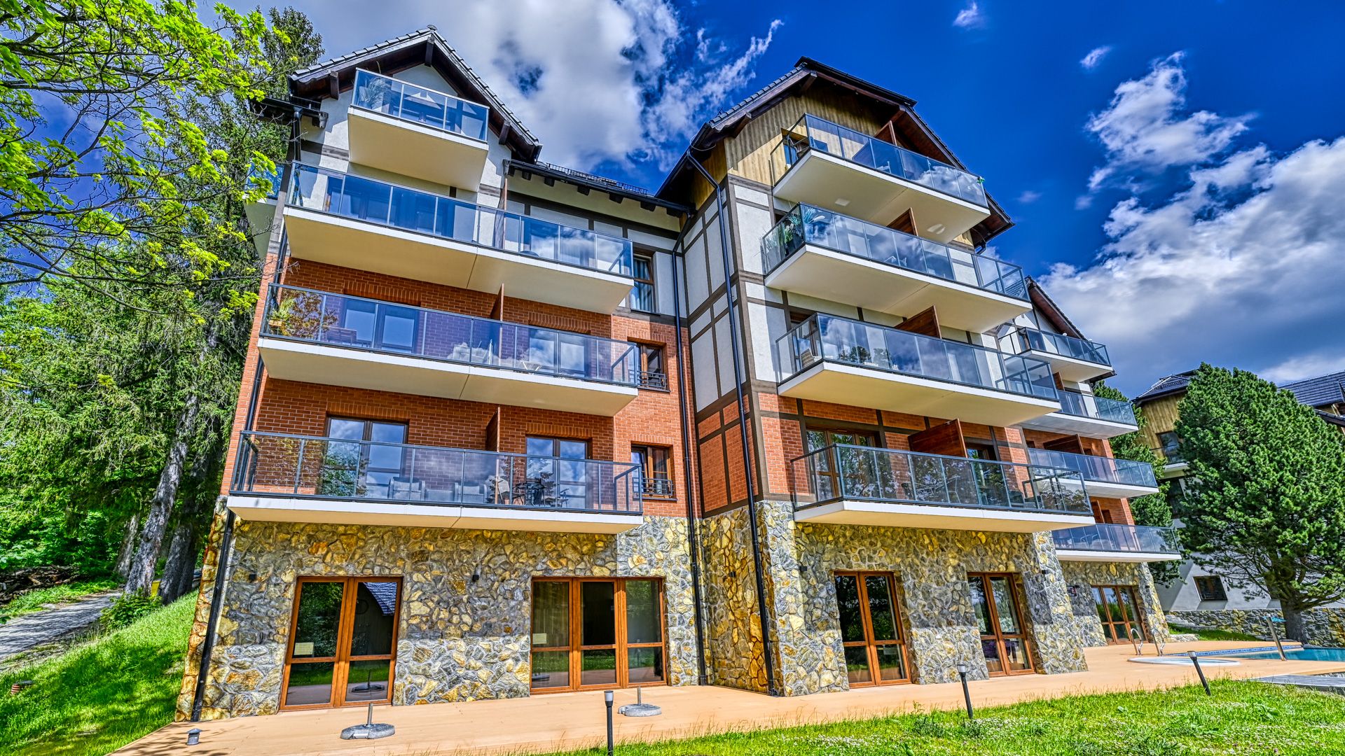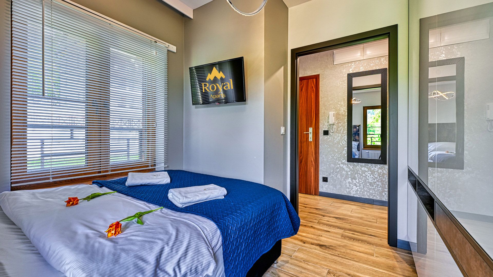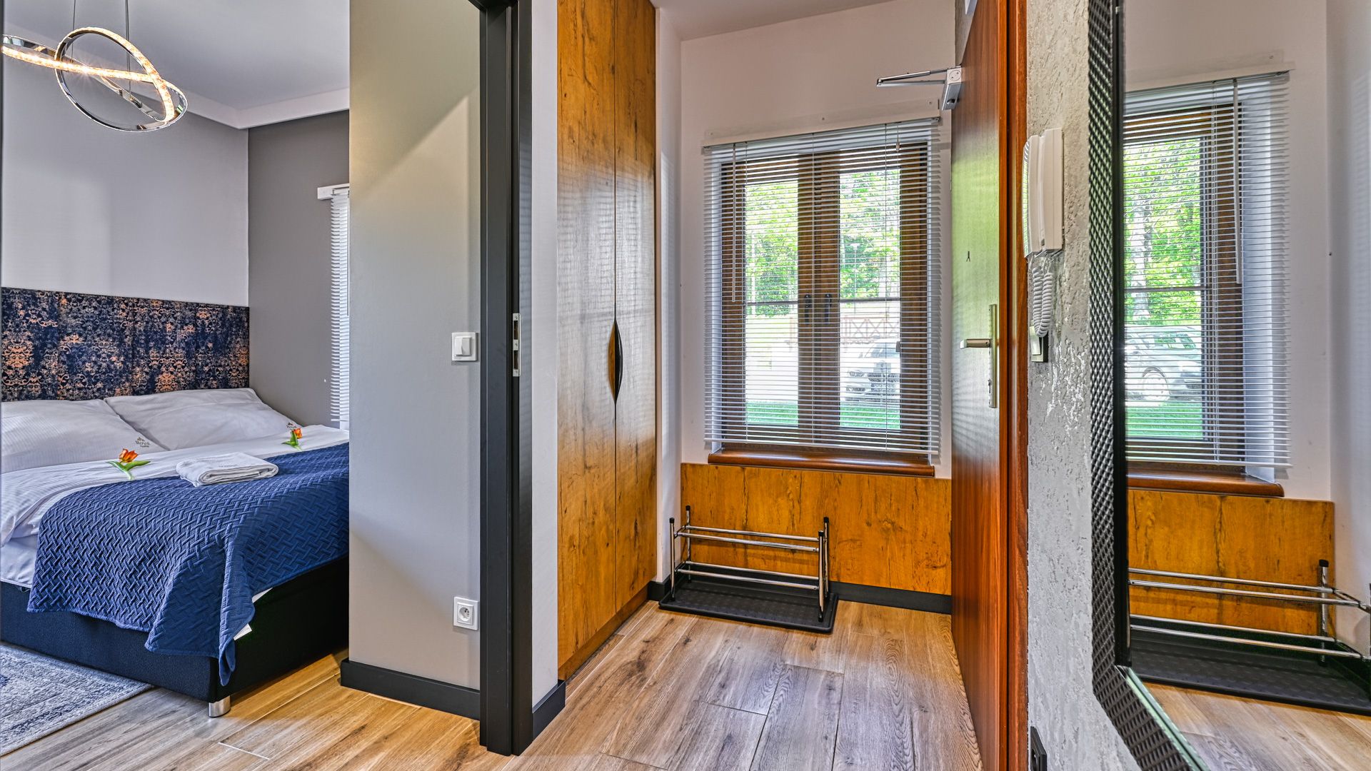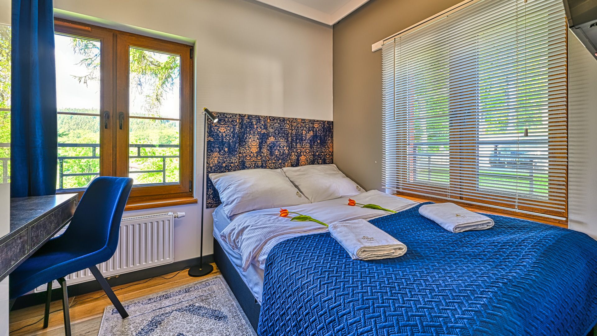 Prezentowany apartament jest częścią prestiżowego kompleksu Green Park Resort położonego w kameralnej i spokojnej części Szklarskiej Poręby. To nowoczesny, pięcioosobowy, w pełni wyposażony lokal o powierzchni 35,4m^2. W sypialni znajduje się duże łóżko małżeńskie, telewizor oraz obszerna szafa. Część dzienna apartamentu składa się z, salonu połączonego z aneksem kuchennym i wyposażona jest w rozkładaną sofę, rozkładany fotel, panoramiczny telewizor oraz stół kuchenny. Całość domyka wykończona w wysokim standardzie łazienka.