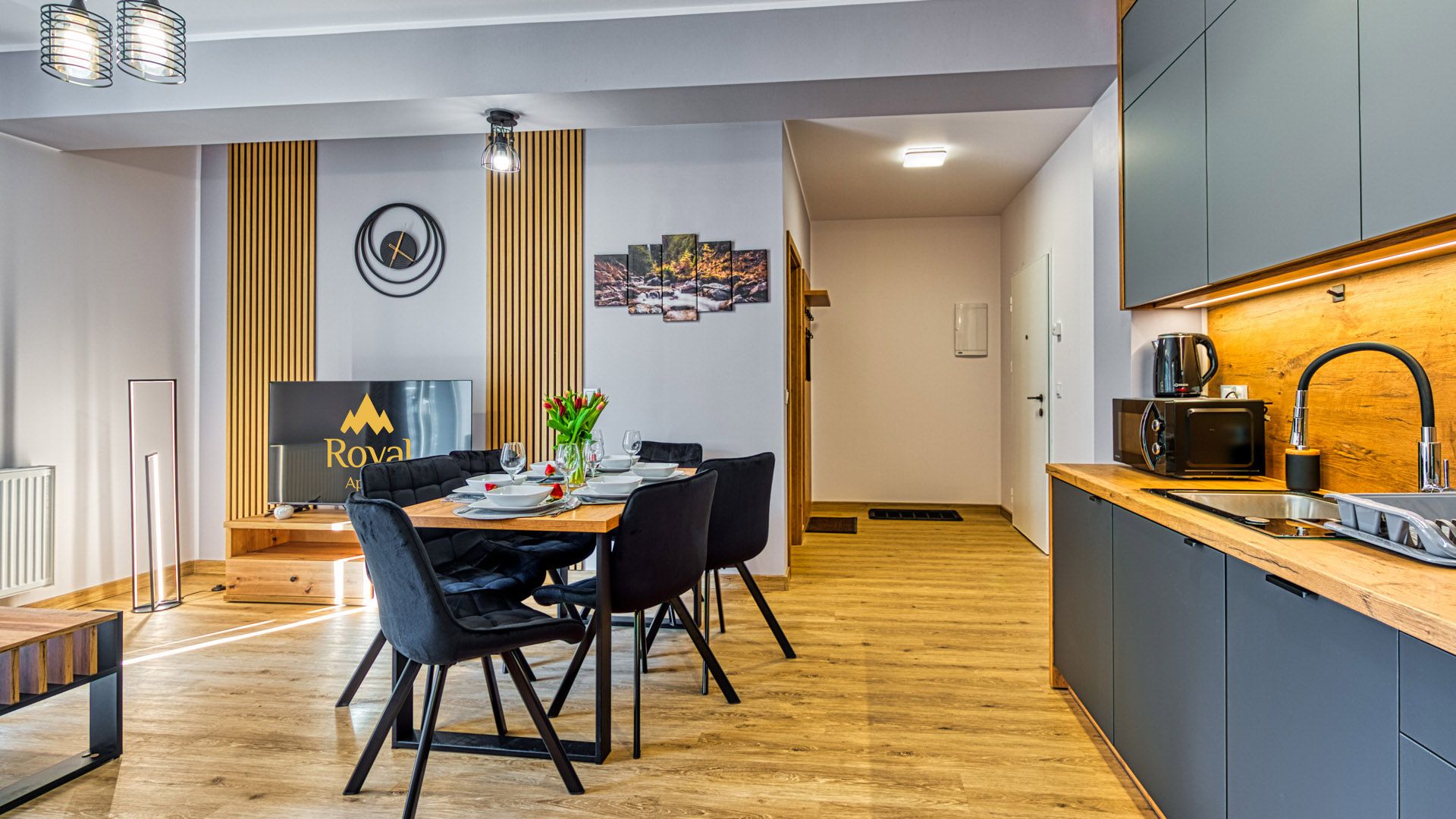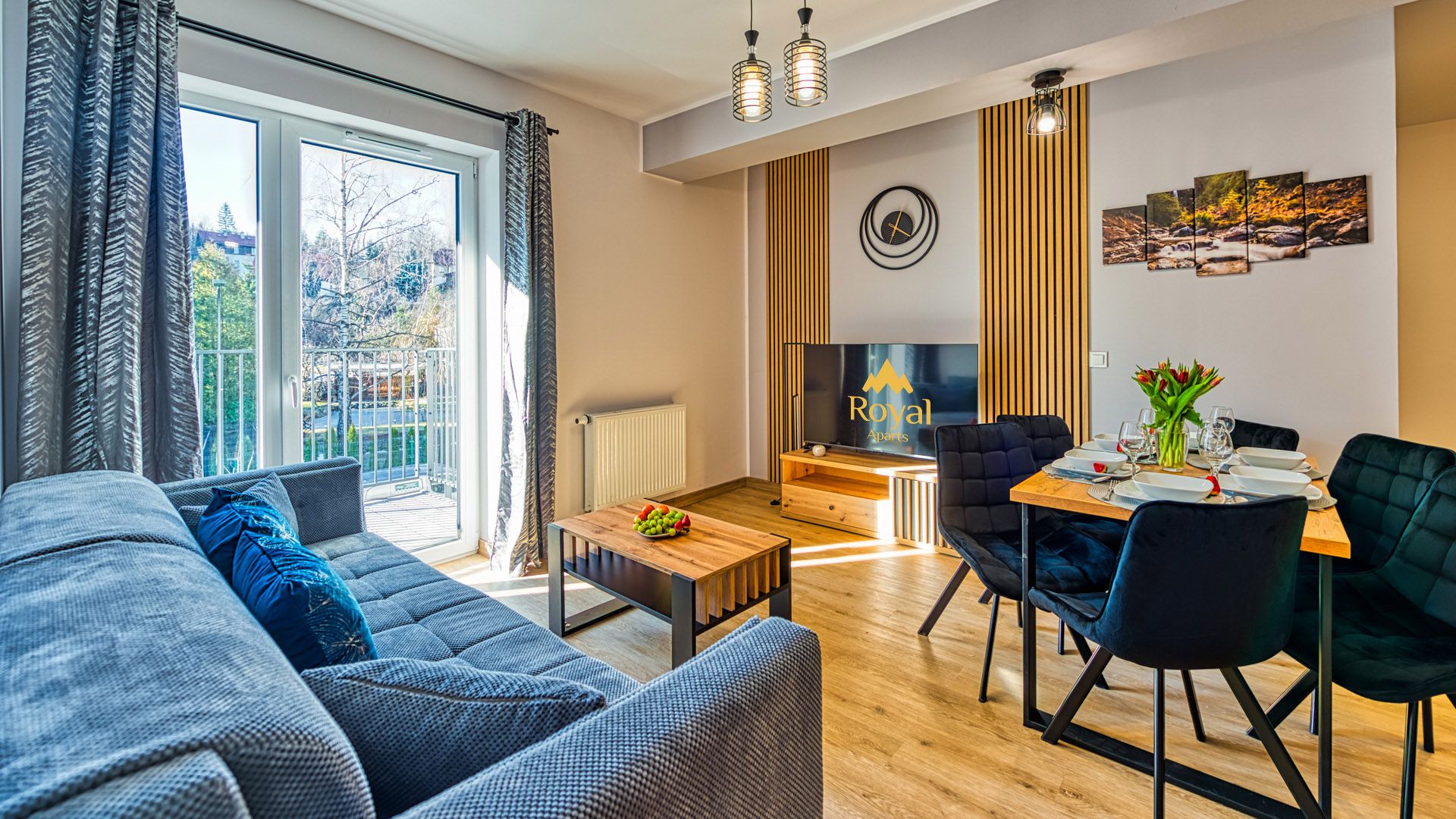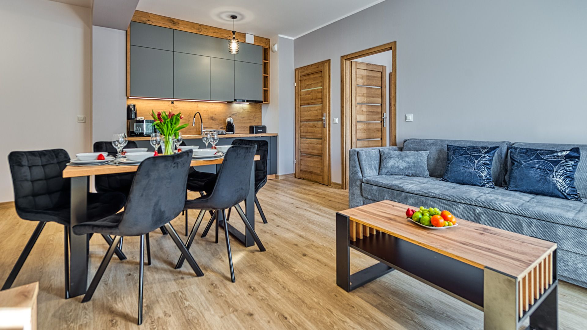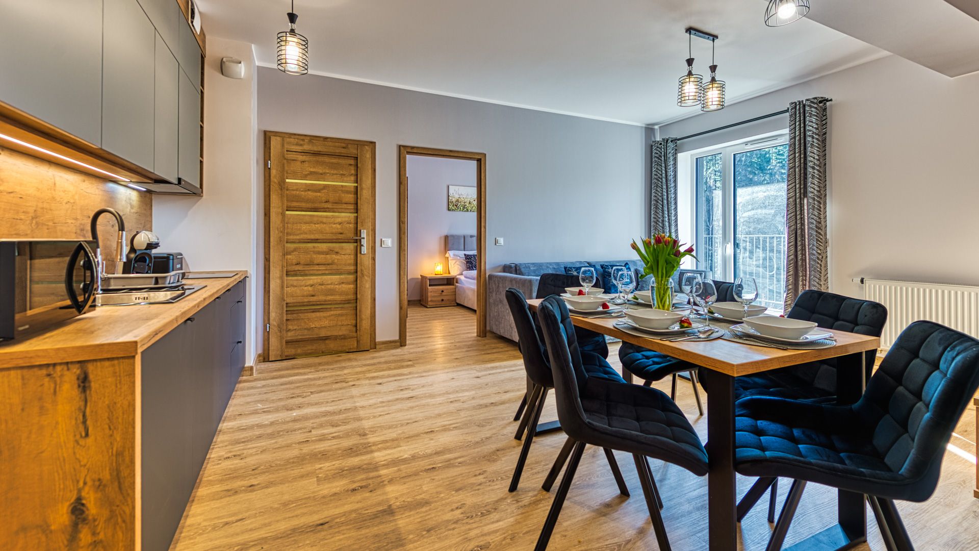 Ten przestronny, sześcioosobowy apartament zapewni Ci wygodę, przestrzeń i komfort podczas pobytu w naszym pięknym mieście, oferuje nie tylko wygodne wnętrze, ale także zapierający dech w piersiach widok na góry.