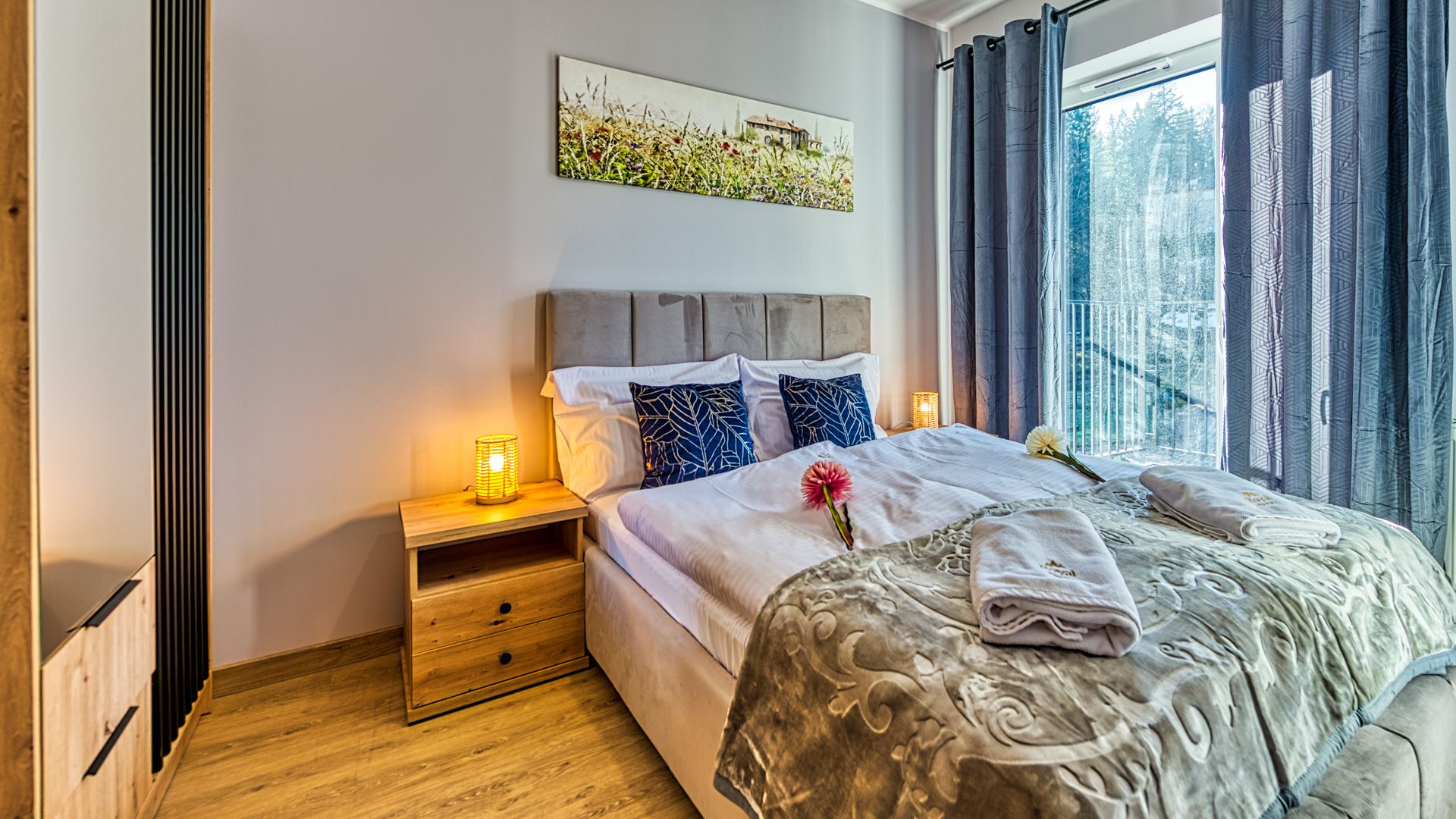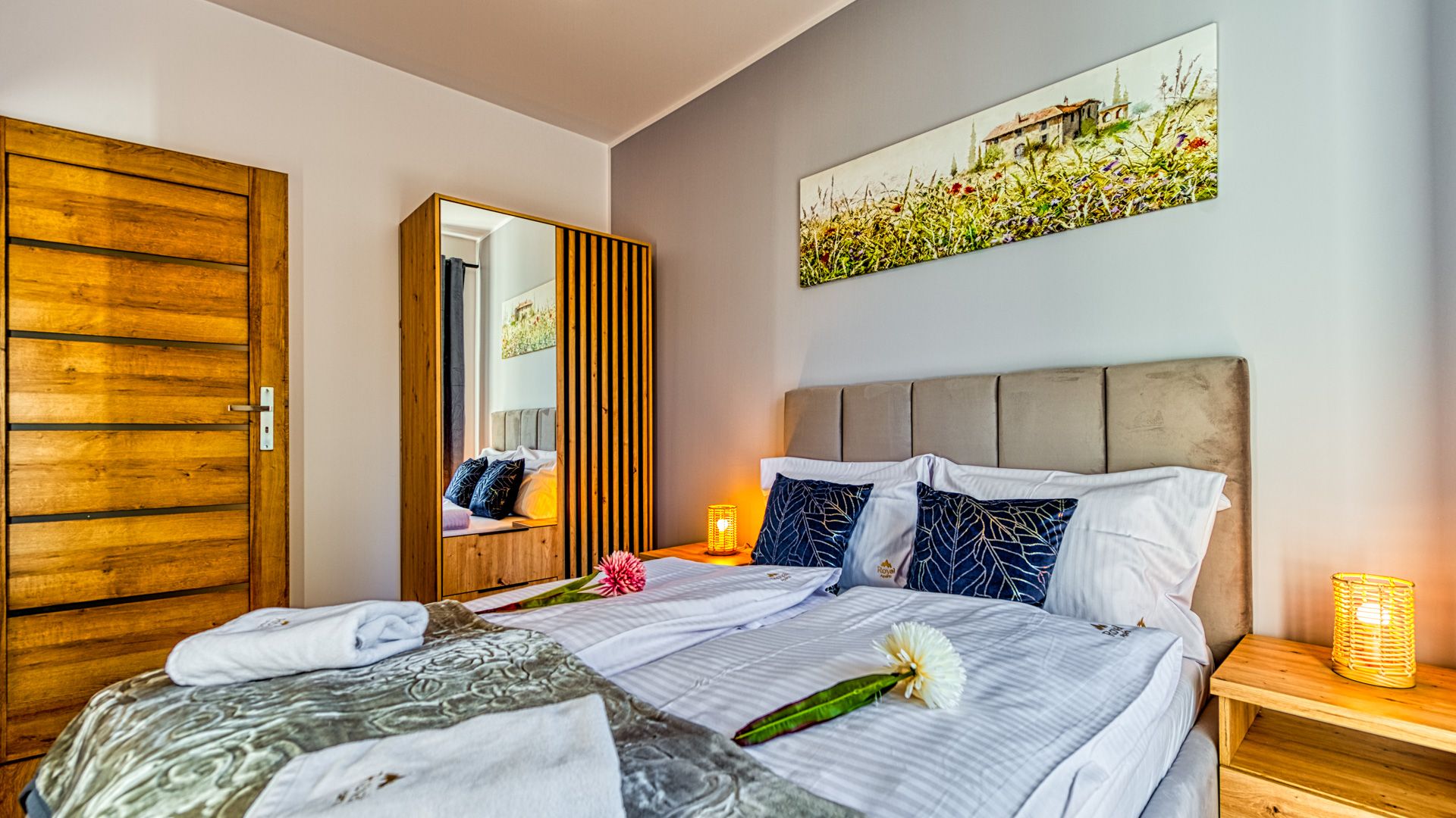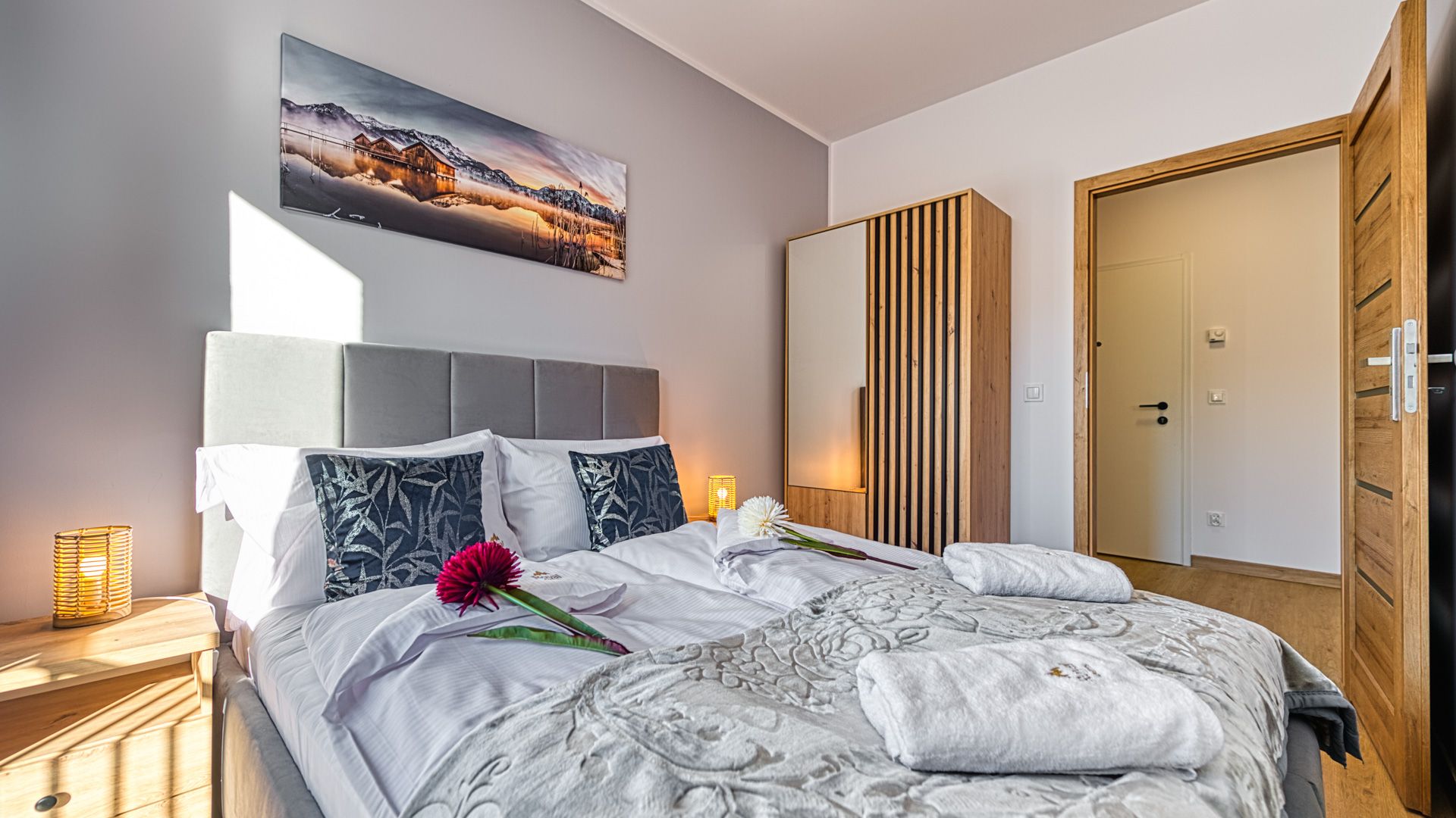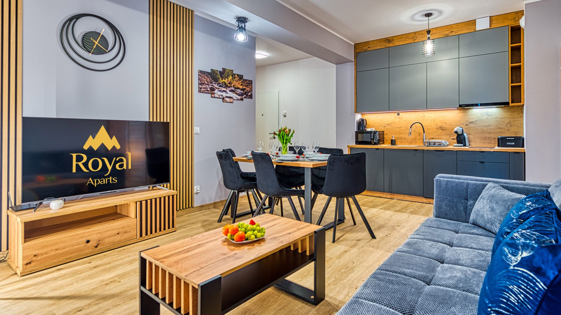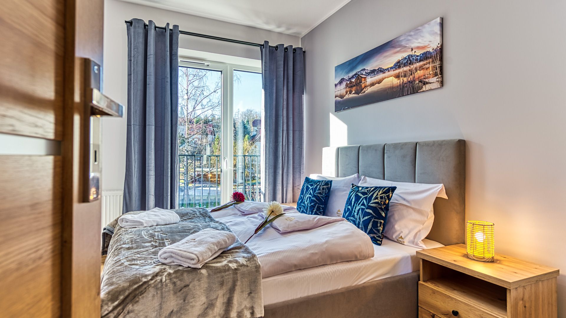 Ten przestronny, sześcioosobowy apartament zapewni Ci wygodę, przestrzeń i komfort podczas pobytu w naszym pięknym mieście, oferuje nie tylko wygodne wnętrze, ale także zapierający dech w piersiach widok na góry.