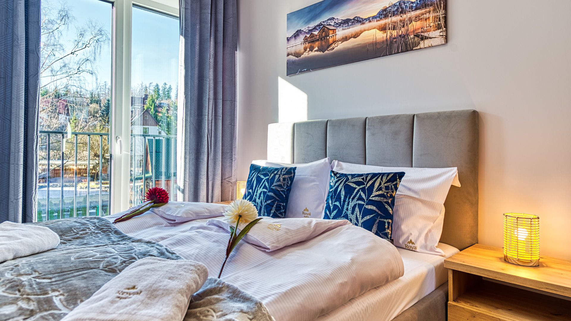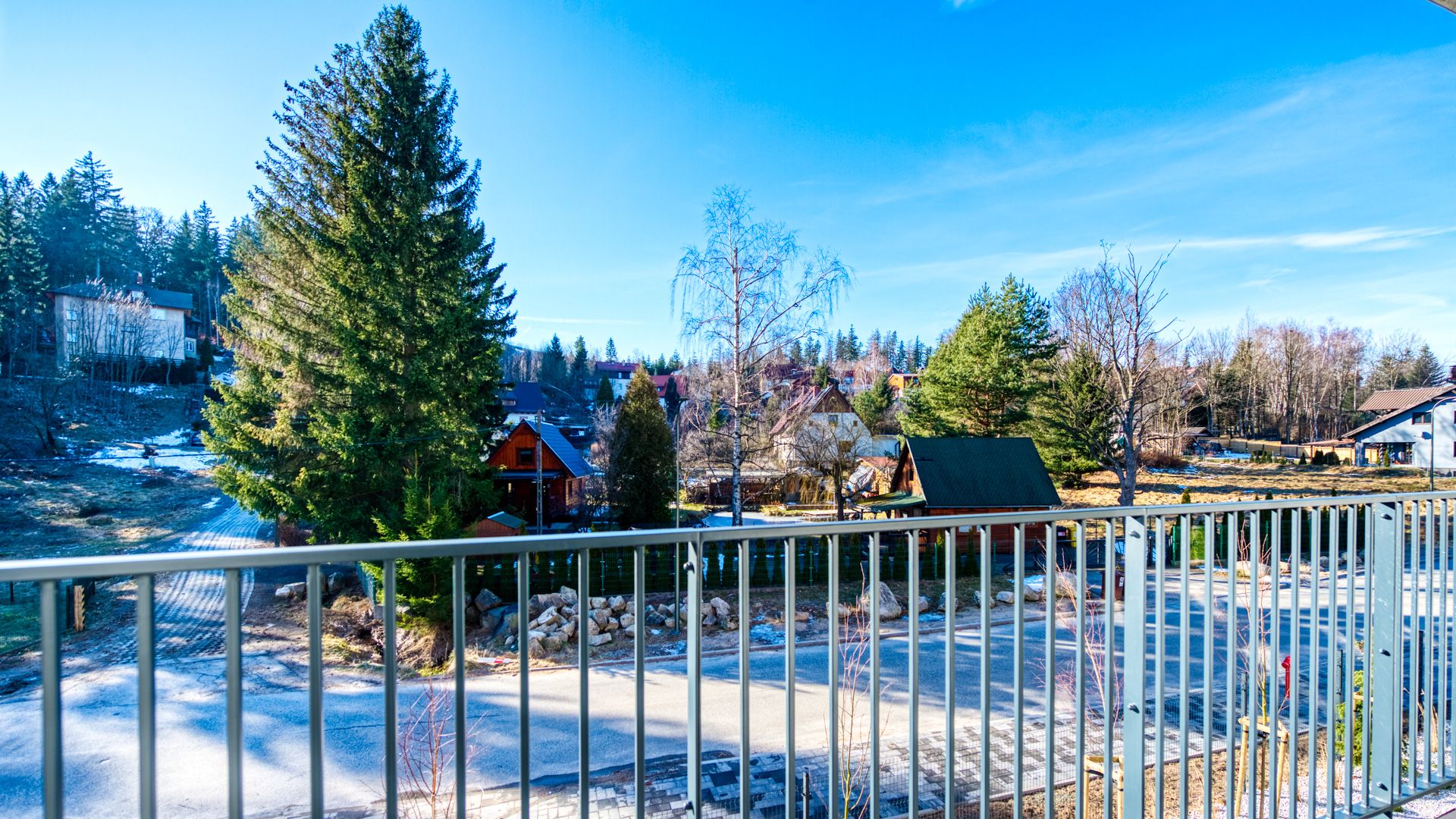 Otwierając drzwi balkonowe, możesz cieszyć się świeżym powietrzem i widokiem na górski krajobraz. To idealne miejsce, aby wypić poranną kawę lub delektować się romantyczną kolacją przy zachodzie słońca.