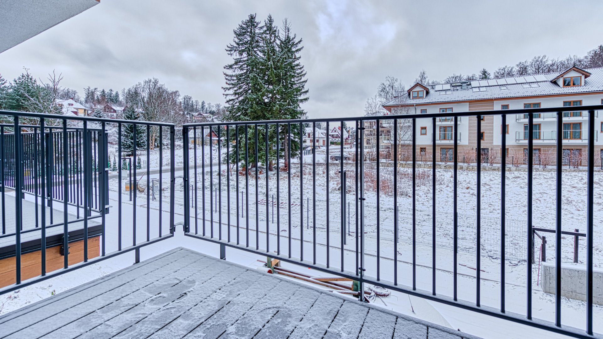 Otwierając drzwi balkonowe, możesz cieszyć się świeżym powietrzem oraz widokiem na ogród i górski krajobraz. To idealne miejsce, aby wypić poranną kawę lub delektować się romantyczną kolacją przy zachodzie słońca.