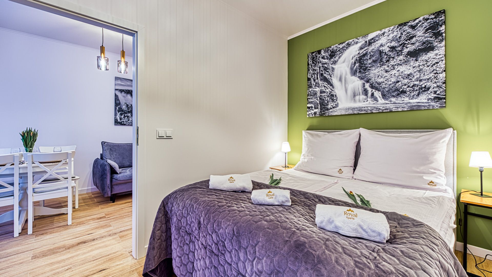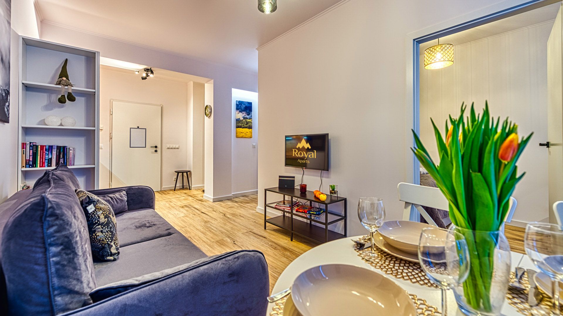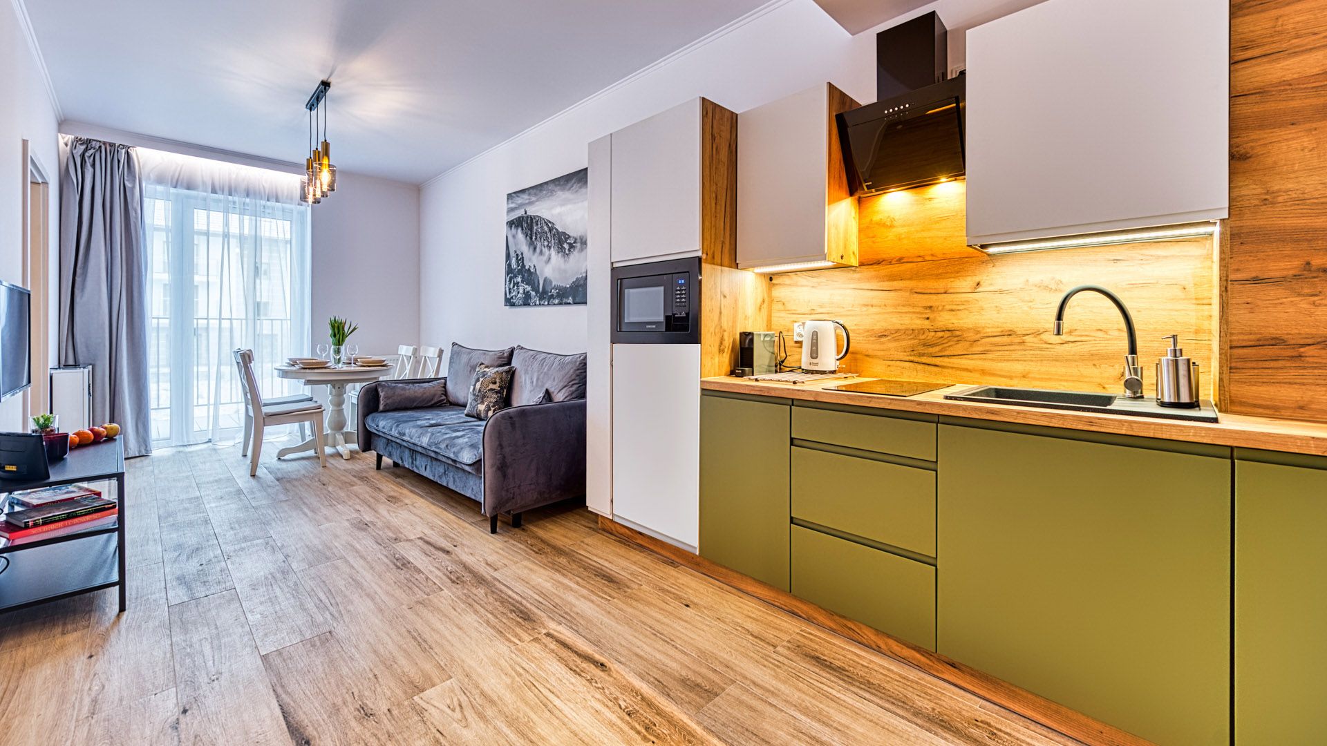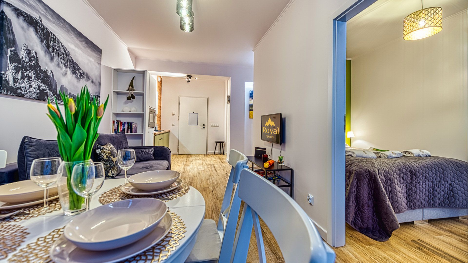 Apartament składa się z salonu z sofą, jadalnią i aneksem kuchennym, gdzie znajdziesz wszystkie niezbędne urządzenia i sprzęty do gotowania. W sypialni znajduje się duże, dwuosobowe łóżko zachęcające do odpoczynku po dniu pełnym aktywności. Biurko w sypialni jest doskonałym rozwiązaniem do podróży typu "home office". Telewizor z płaskim ekranem i dostęp do Wi-Fi zapewnią rozrywkę i łączność podczas pobytu.