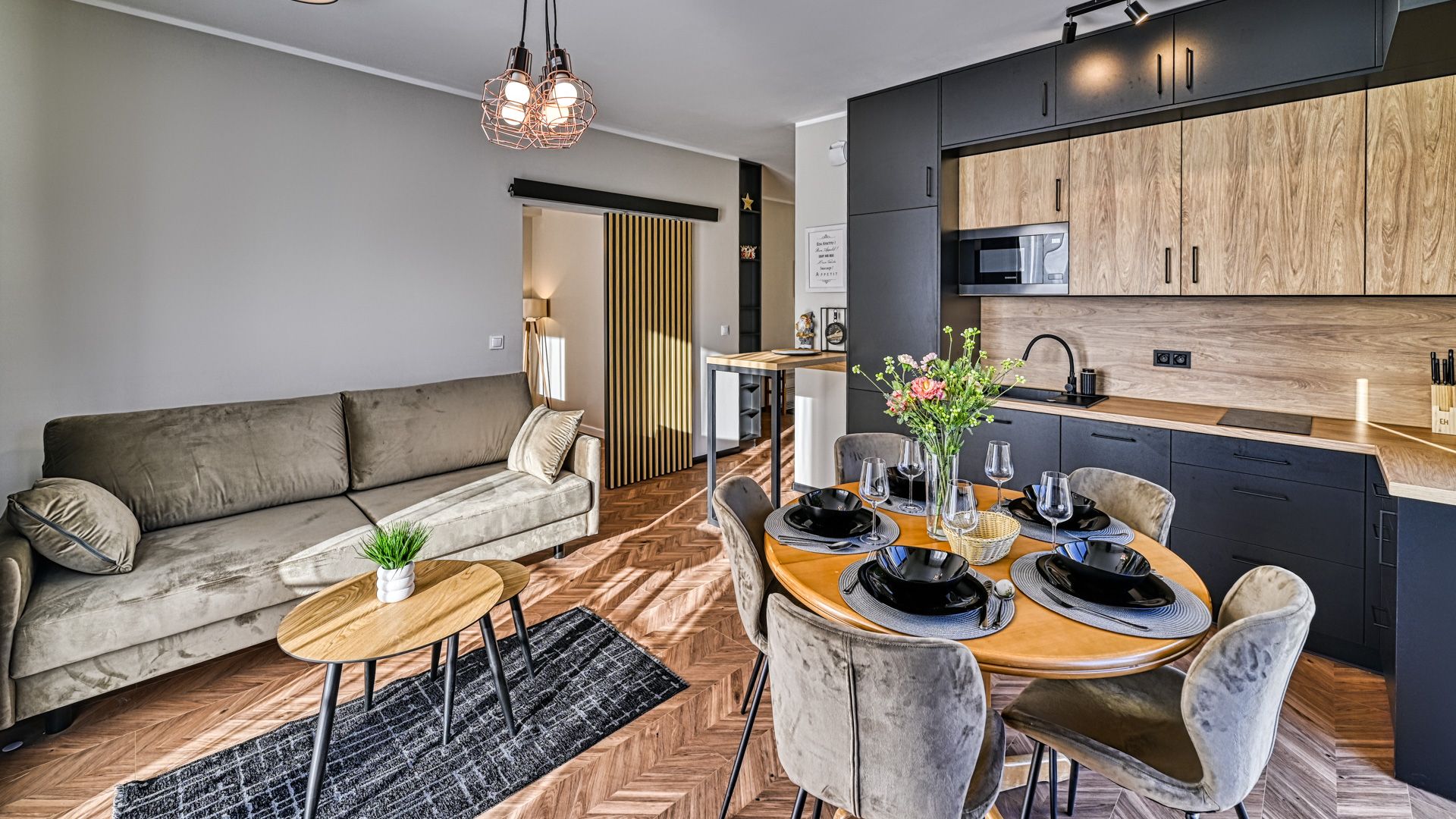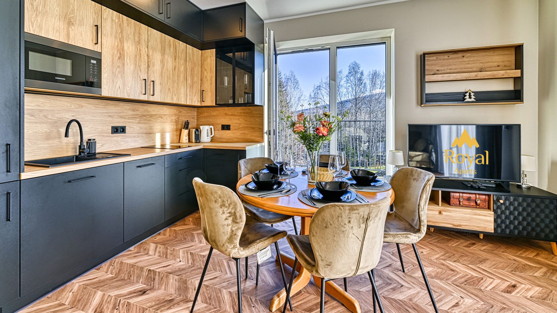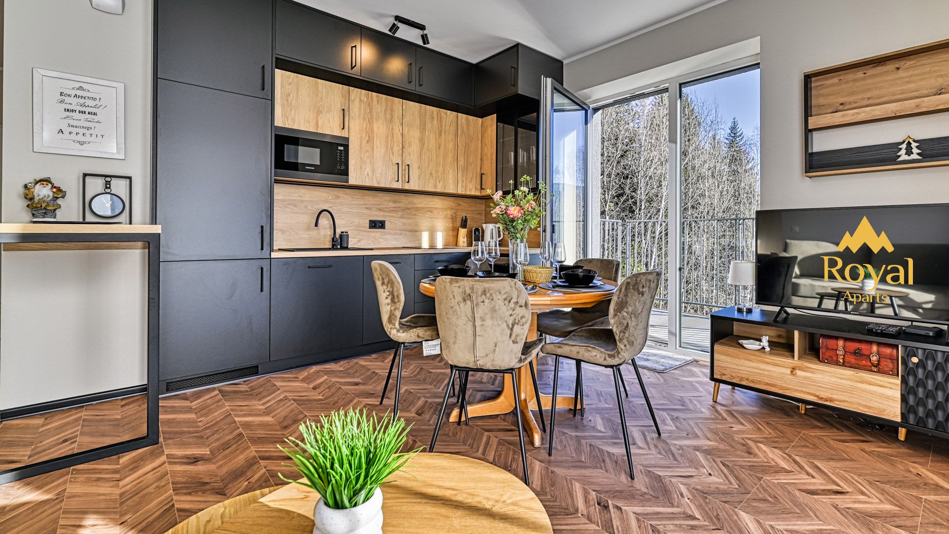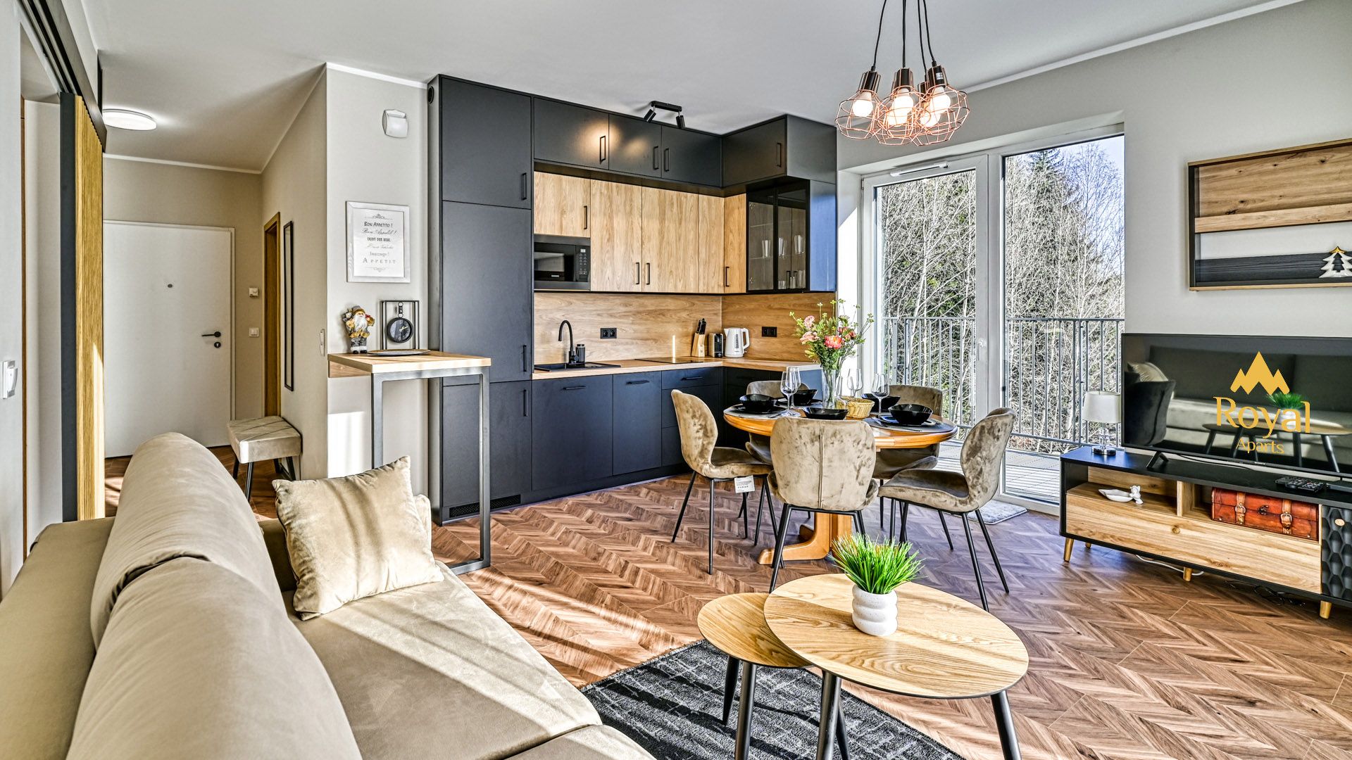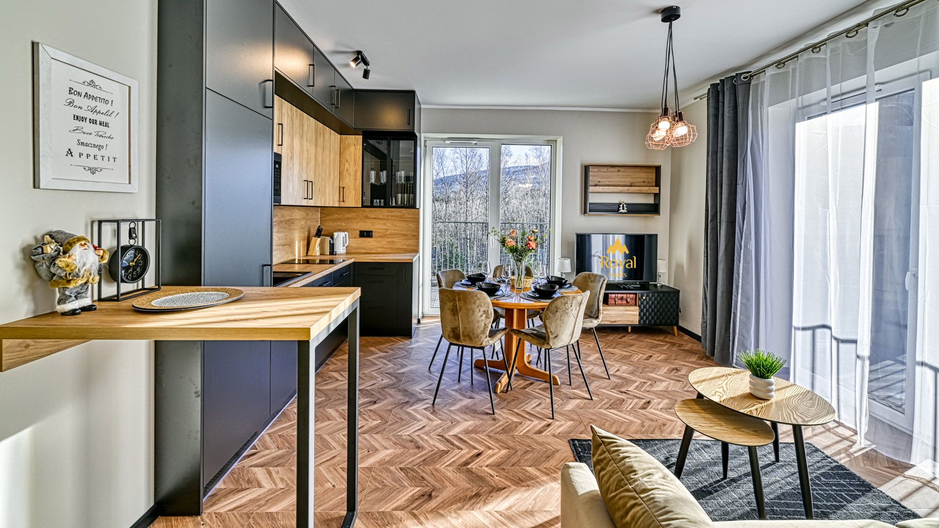 Ten przestronny, sześcioosobowy apartament zapewni Ci wygodę, przestrzeń i komfort podczas pobytu w naszym pięknym mieście, oferując nie tylko wygodne wnętrze, ale także zapierający dech w piersiach widok na góry.