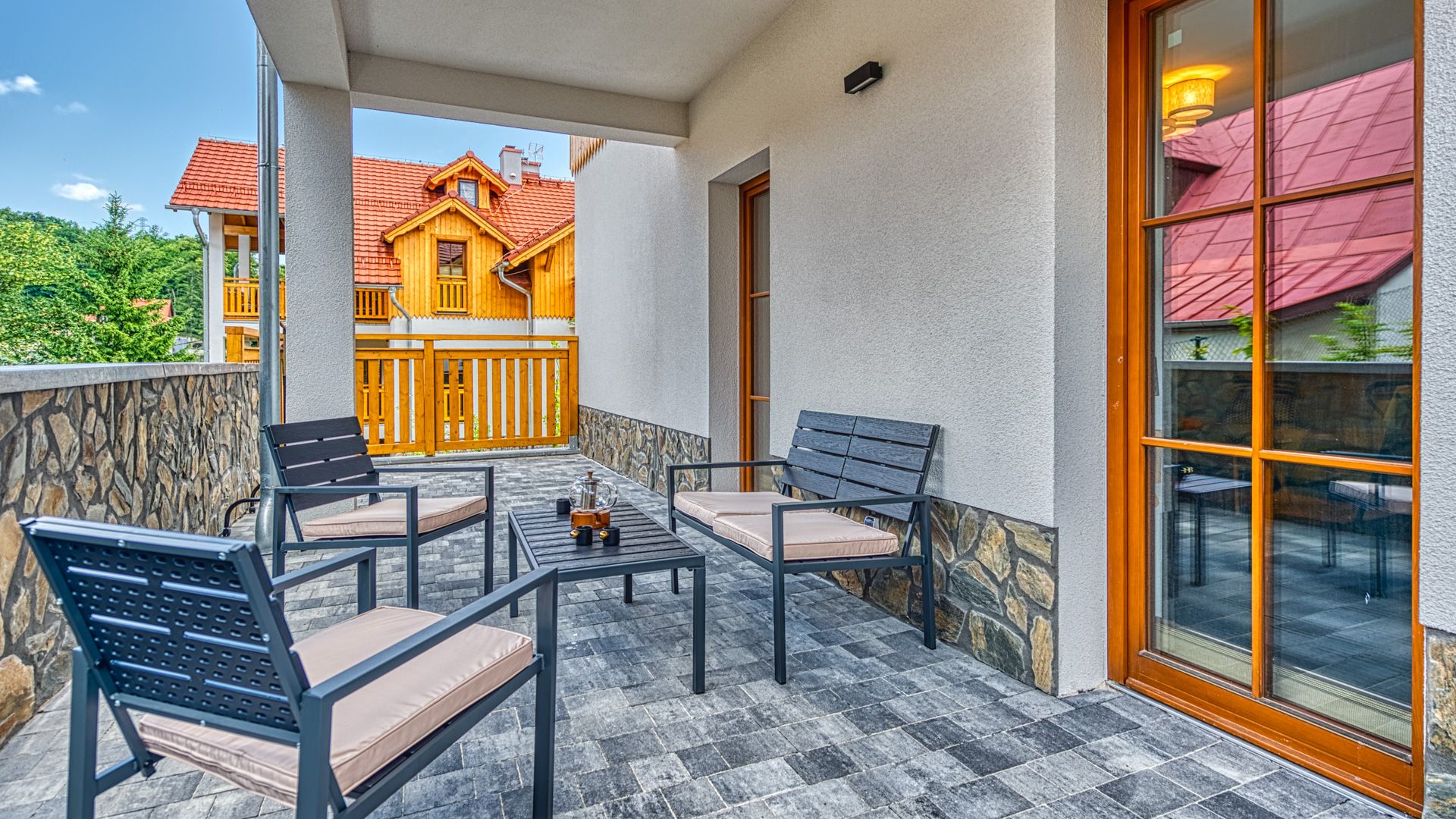 Prezentowany apartament mieści się przy ulicy Waryńskiego 2/10 w Szklarskiej Porębie. Jest to jasny, przestronny lokal o powierzchni 49m^2, który wygodnie pomieści cztery osoby. Zawiera wszystko, co niezbędne, by spędzić udany czas w tej pięknej, górskiej miejscowości. Do dyspozycji Gości oddajemy jedną sypialnię, w której mieści się duże, dwuosobowe łoże, część wypoczynkową, połączoną z jadalnią i aneksem kuchennym, zaopatrzoną w rozkładaną sofę, łazienkę z prysznicem oraz duży taras. W apartamencie zamontowano ogrzewanie podłogowe.