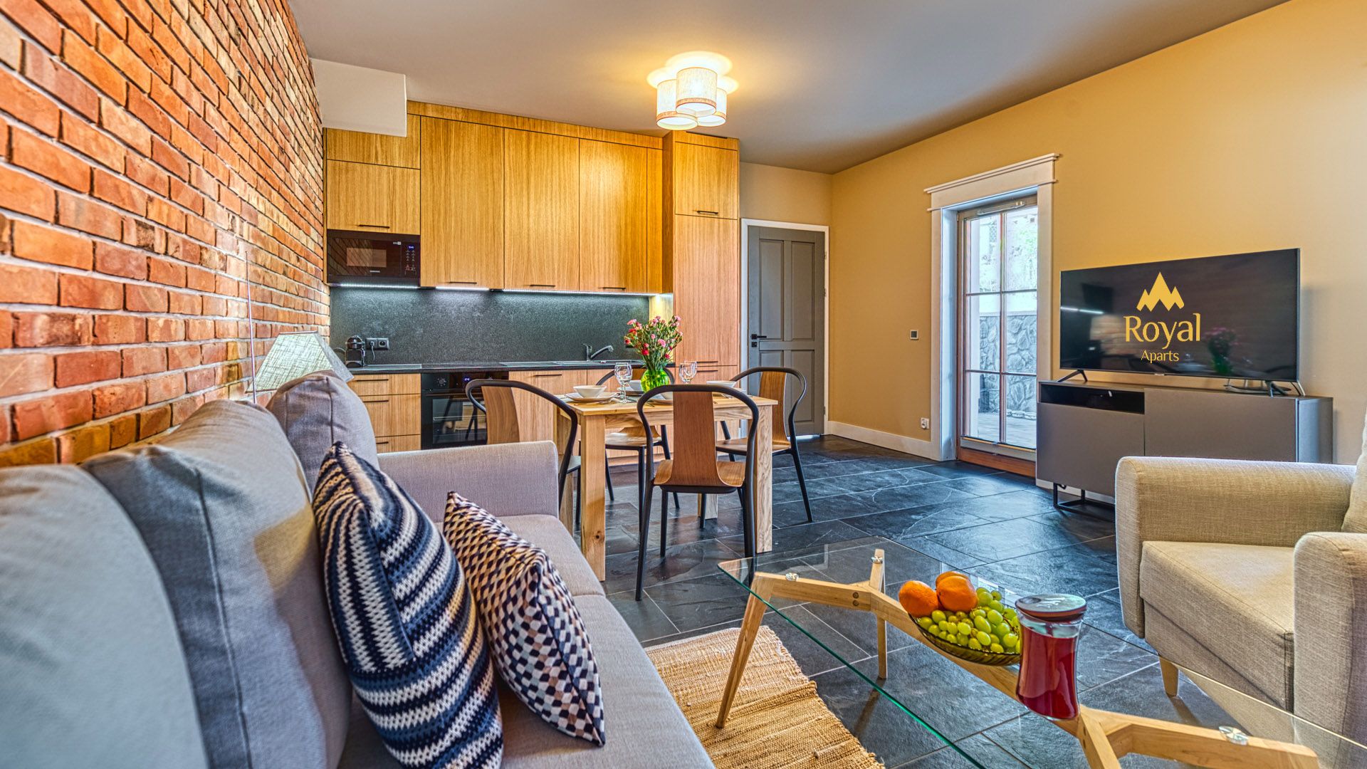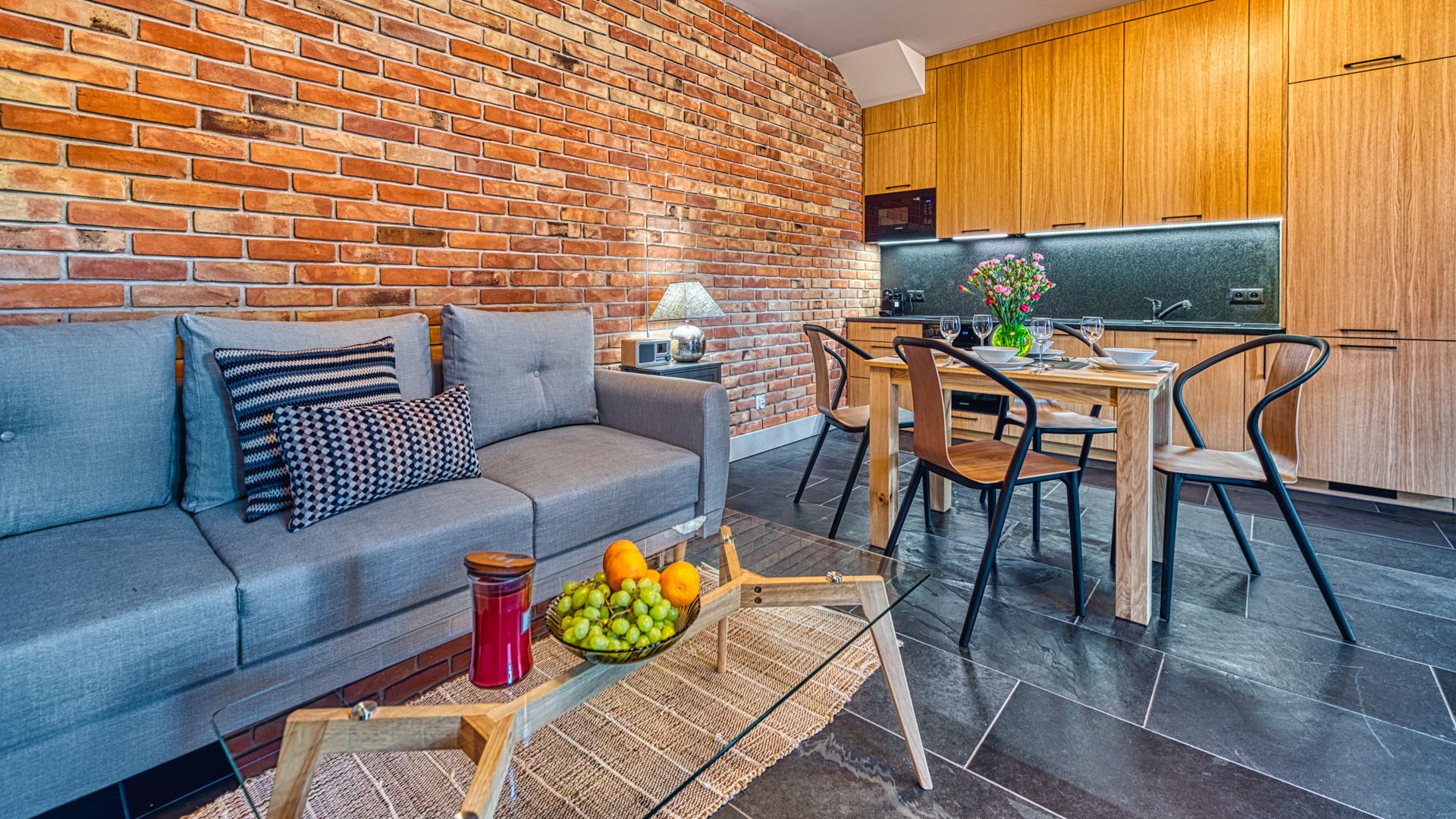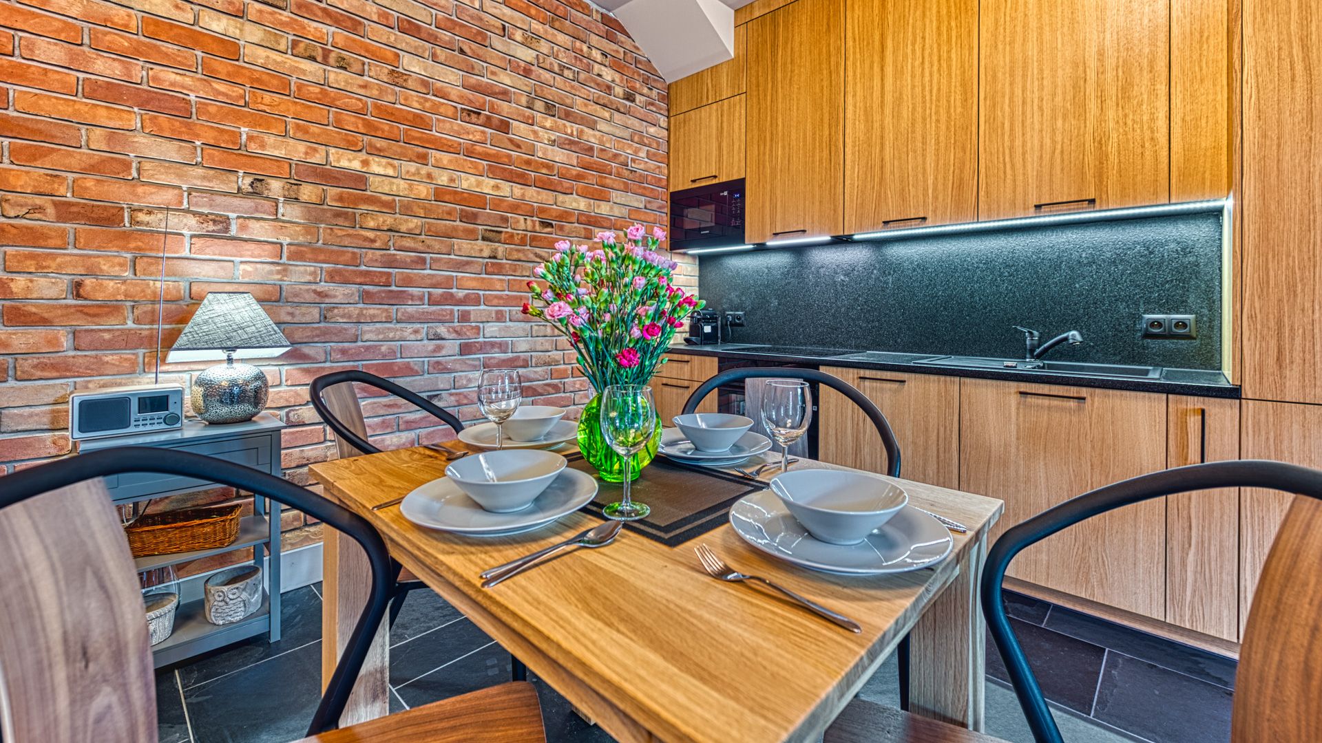 Sam aneks kuchenny posiada bogate wyposażenie, które pozwoli na przygotowanie pysznych posiłków. W jego skład wchodzą m.in. czajnik, talerze i sztućce, płyta kuchenna, lodówka, ekspres do kawy, opiekacz, mikrofalówka, zmywarka, piekarnik. W ładnie urządzonej łazience mieści się prysznic, toaleta, pralka, umywalka i lustro. W lokalu znajduje się także duży, płaski telewizor oraz bezpłatny internet WiFi.