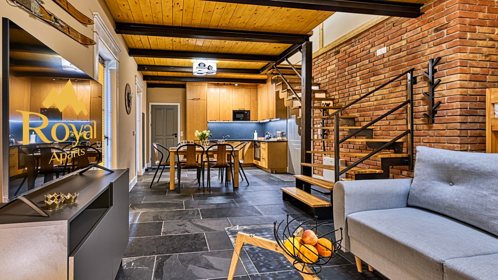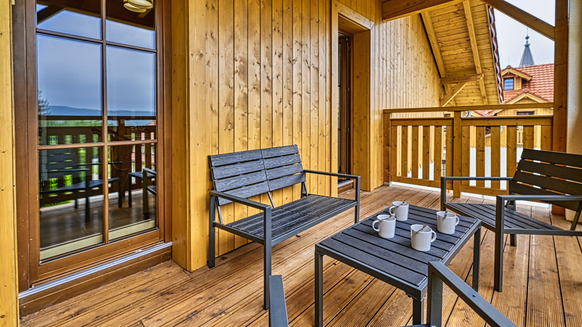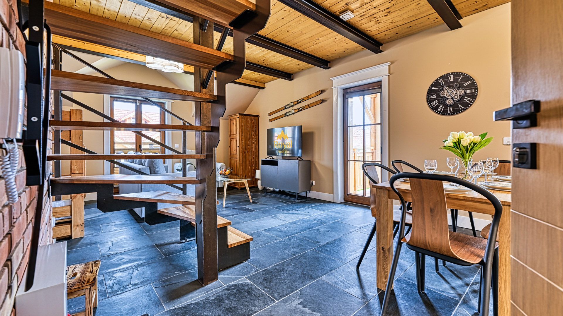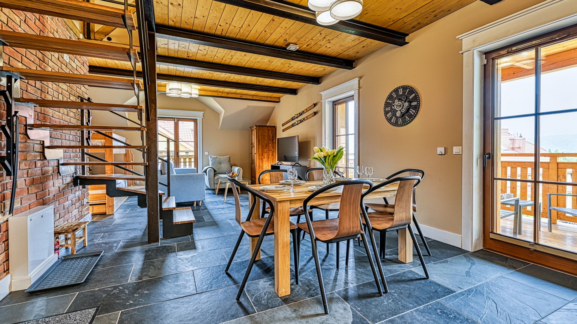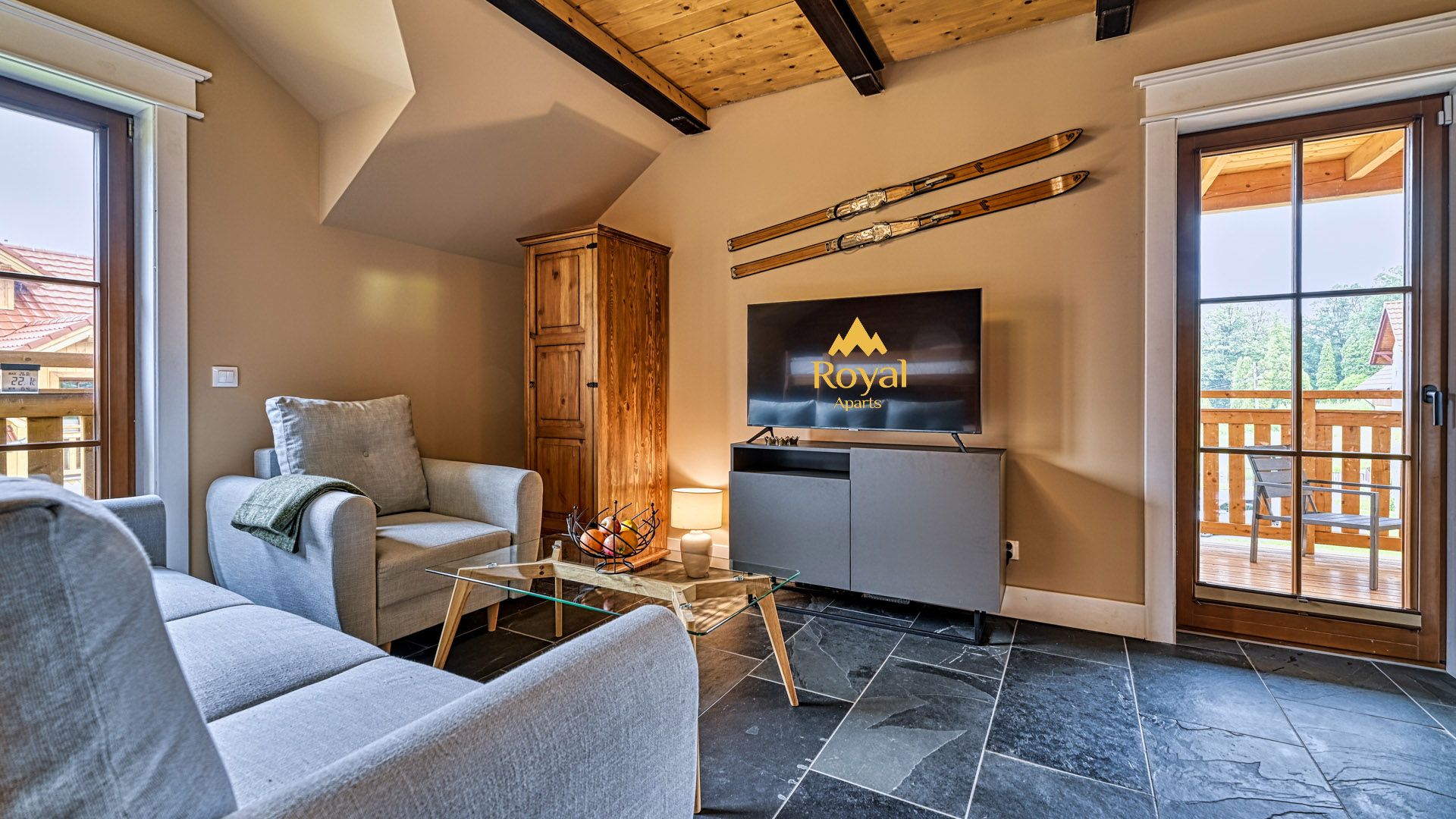 Apartament posiada dwa balkony, które oferują efektowne widoki. Stanowią one idealne miejsce, aby zrelaksować się po pełnym wrażeń dniu i cieszyć się świeżym powietrzem w akompaniamencie górskich krajobrazów.