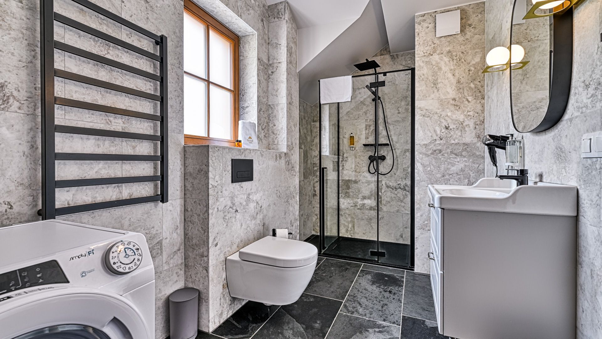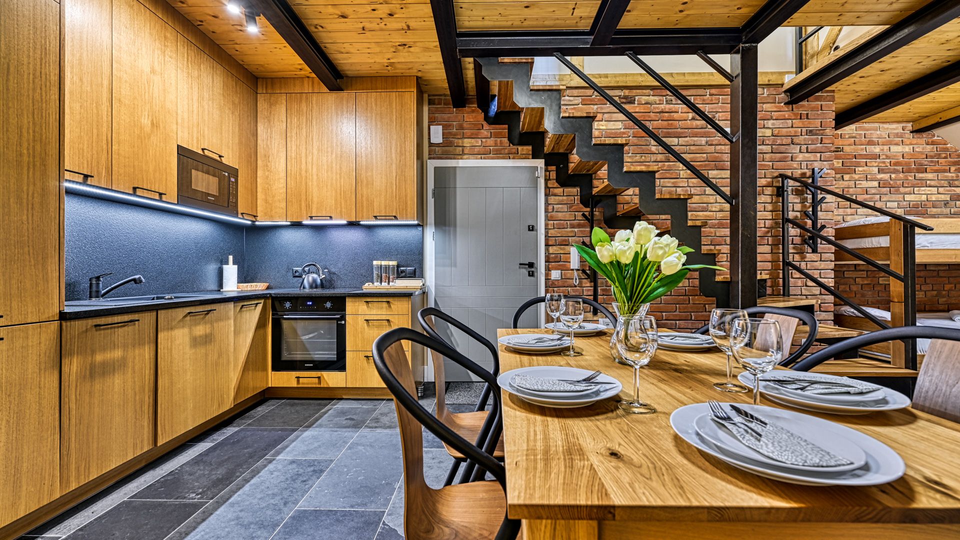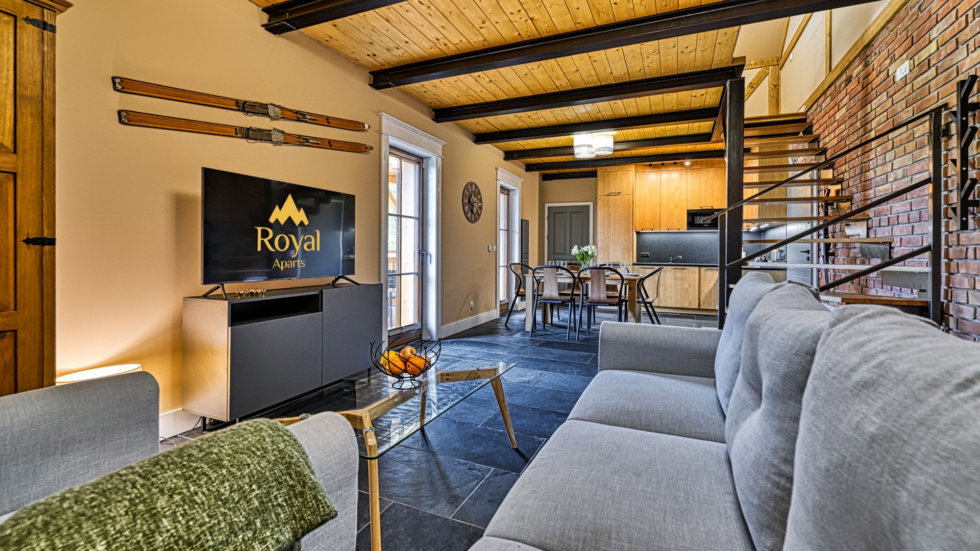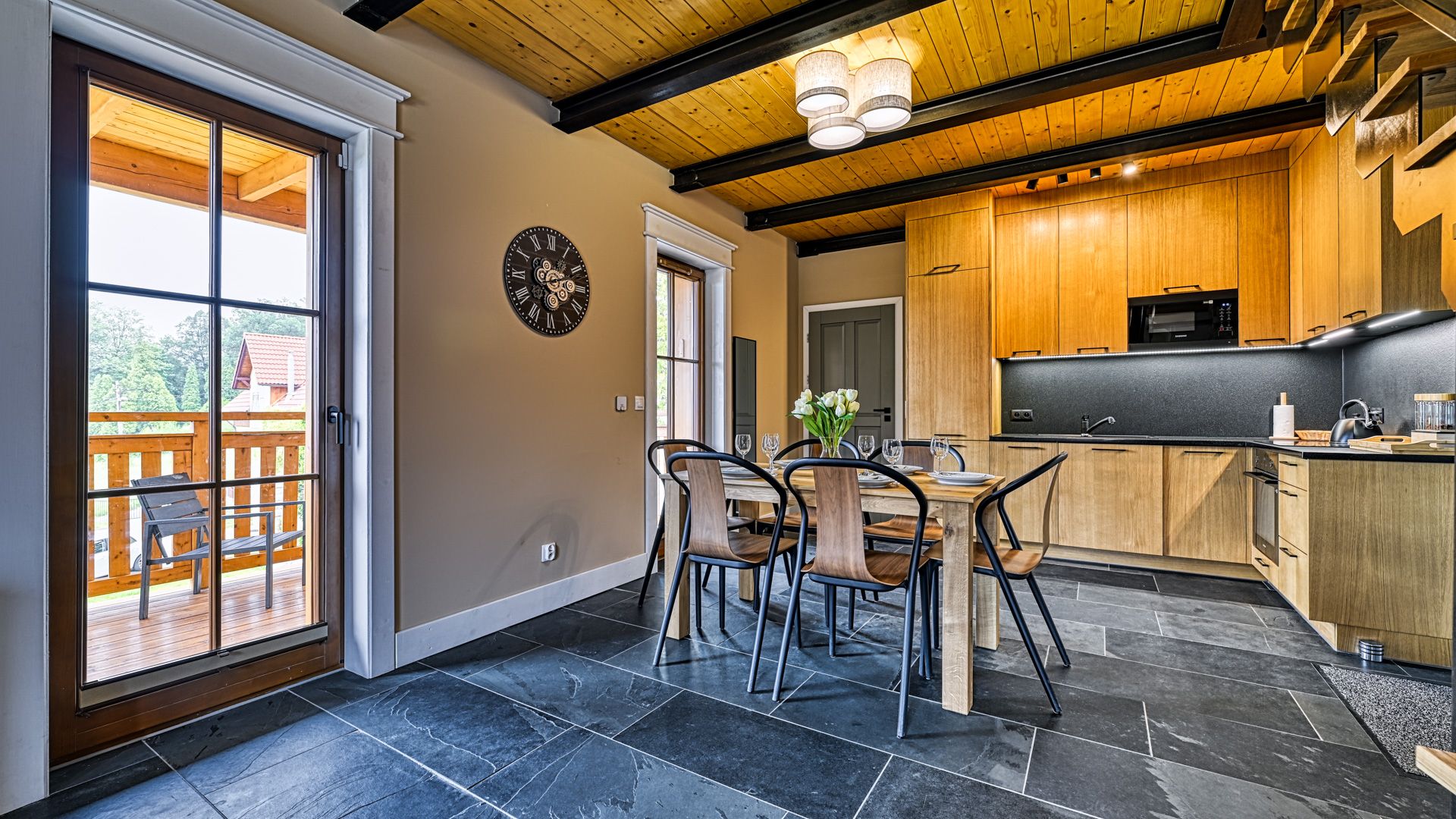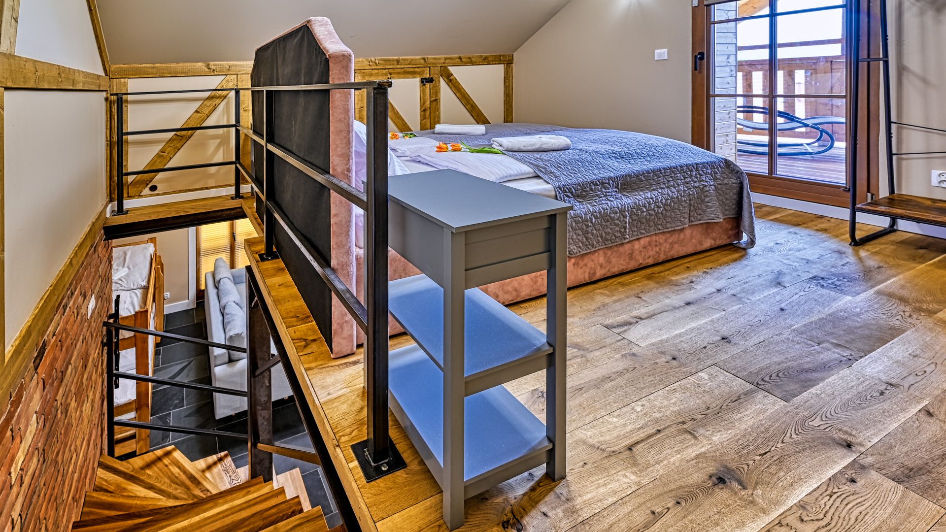 Apartament posiada dwa balkony, które oferują efektowne widoki. Stanowią one idealne miejsce, aby zrelaksować się po pełnym wrażeń dniu i cieszyć się świeżym powietrzem w akompaniamencie górskich krajobrazów.