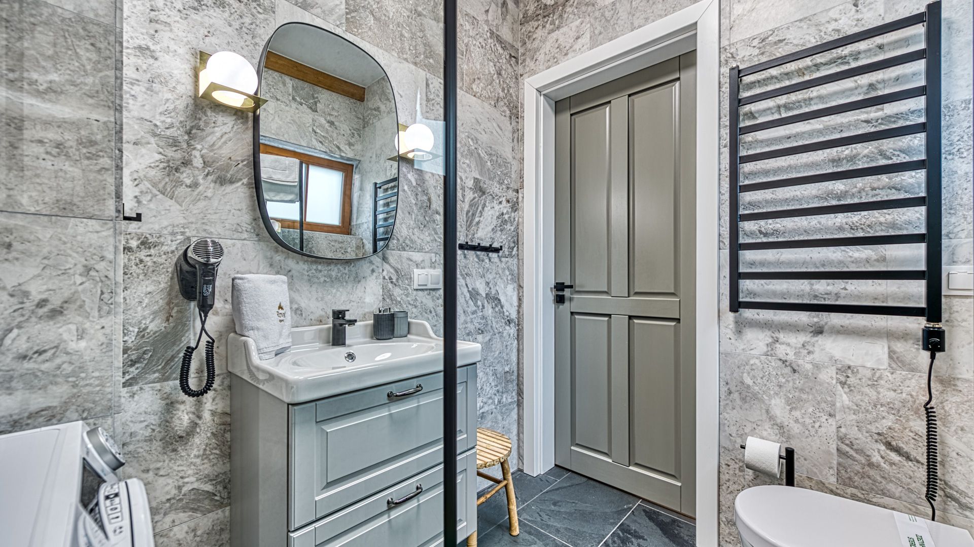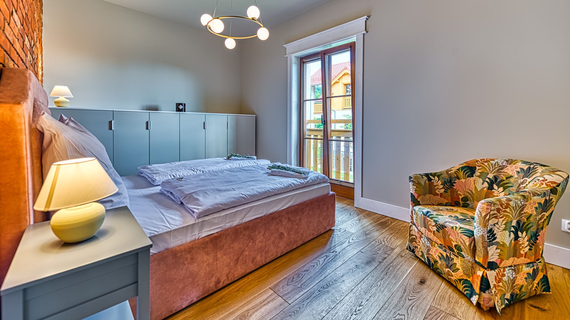 Prezentowany apartament mieści się przy ulicy Waryńskiego 2/9 w Szklarskiej Porębie. Jest to jasny, przestronny lokal o powierzchni 49m^2, który wygodnie pomieści cztery osoby. Zawiera wszystko, co niezbędne, by spędzić udany czas w tej pięknej, górskiej miejscowości. Do dyspozycji Gości oddajemy jedną sypialnię, w której mieści się duże, dwuosobowe łoże, część wypoczynkową, połączoną z jadalnią i aneksem kuchennym, zaopatrzoną w rozkładaną sofę, łazienkę z prysznicem oraz duży taras. W apartamencie zamontowano ogrzewanie podłogowe.