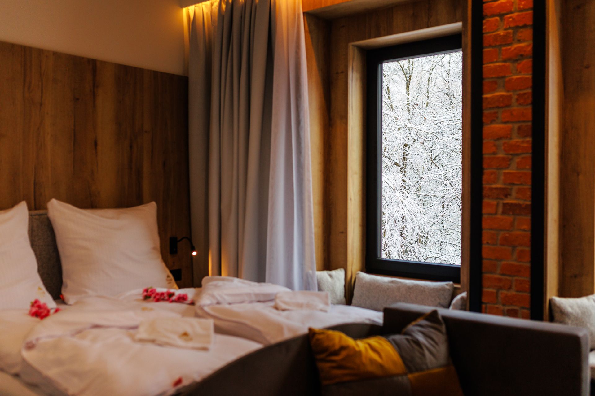 Goście Harmony Land mogą korzystać z udogodnień dostępnych na terenie obiektu, takich jak sauna i jacuzzi, które uprzyjemniają chwile relaksu po dniu pełnym wrażeń.