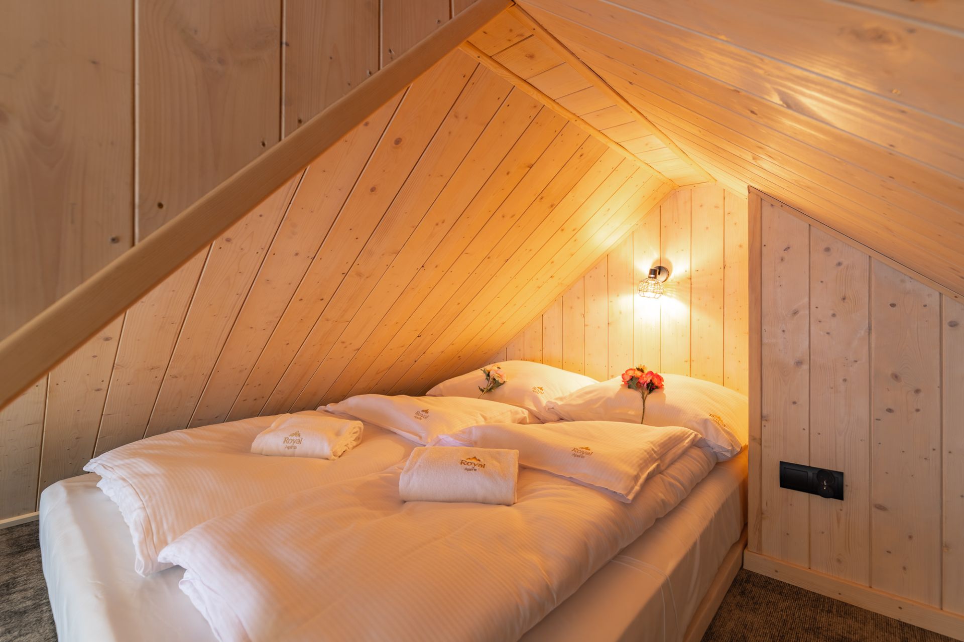 Na antresoli mieści się przestronna sypialnia z dużym, dwuosobowym łóżkiem, które zapewnia komfortowy sen. Dodatkowa sypialnia z równie wygodnym, dwuosobowym łóżkiem znajduje się na dolnym poziomie apartamentu, co gwarantuje prywatność i wygodę dla gości.