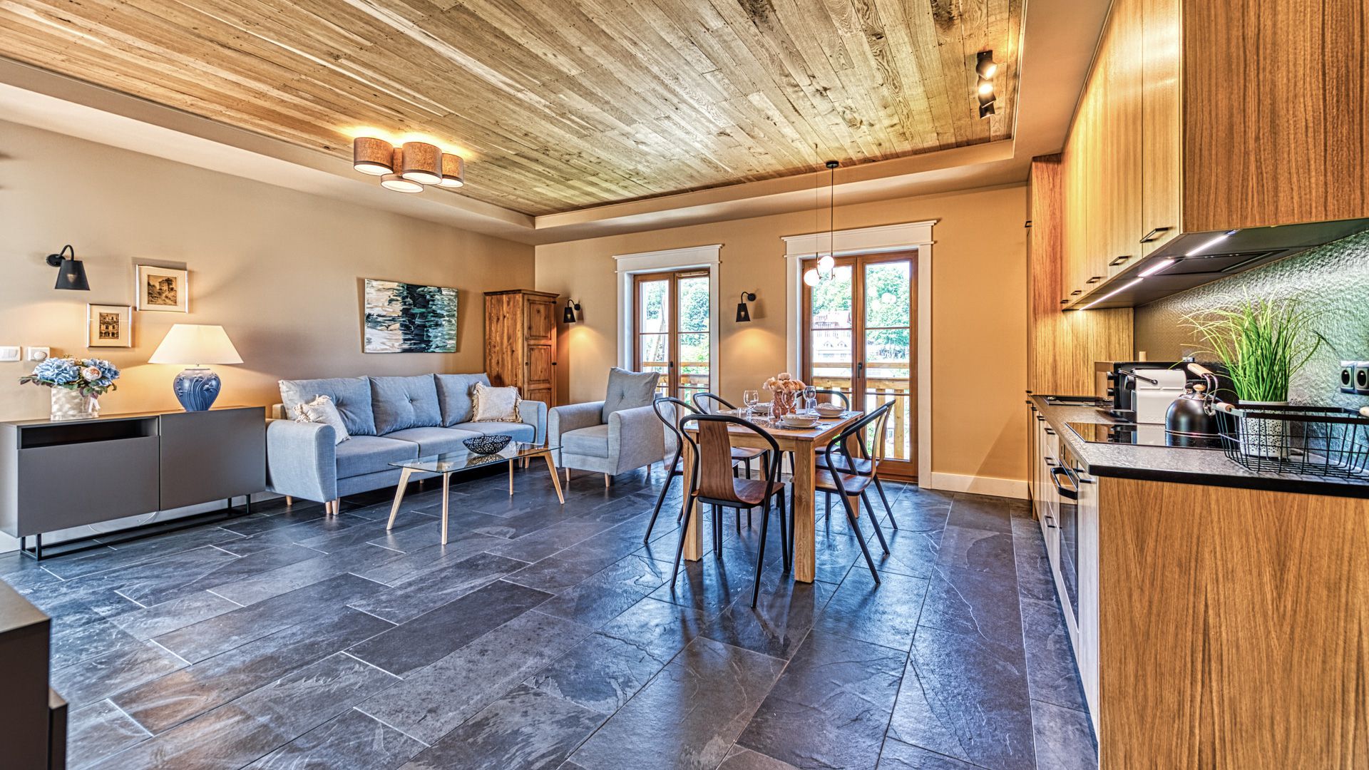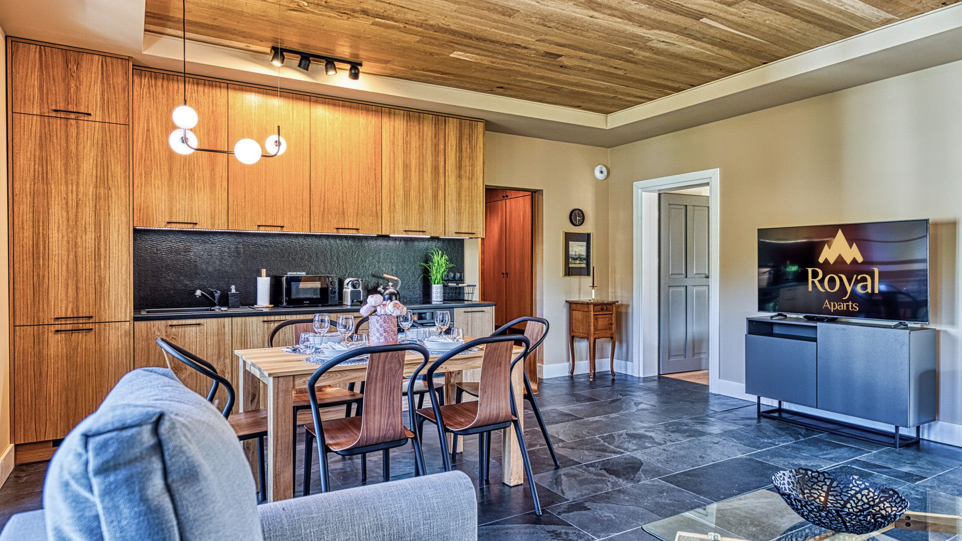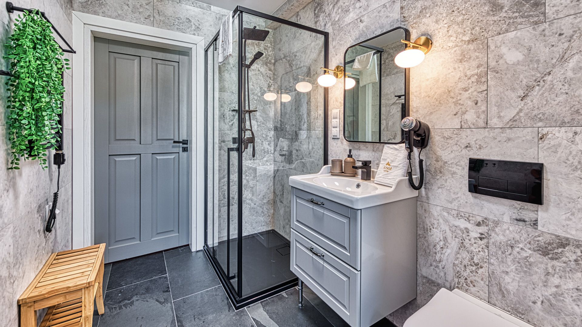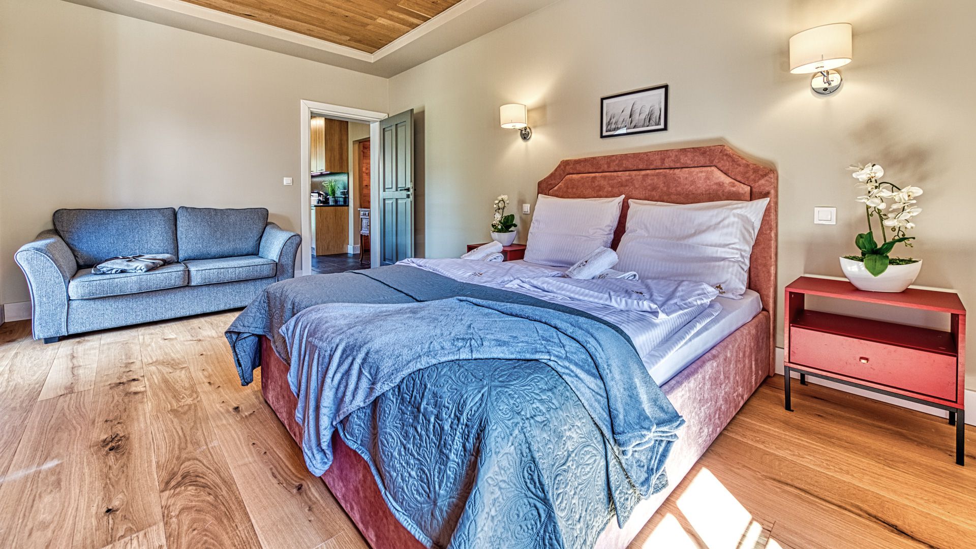 Sam aneks kuchenny posiada bogate wyposażenie, które pozwoli na przygotowanie pysznych posiłków. W jego skład wchodzą m.in. czajnik, talerze i sztućce, płyta kuchenna, lodówka, ekspres do kawy, opiekacz, mikrofalówka, zmywarka, piekarnik. W ładnie urządzonej łazience mieści się prysznic, toaleta, pralka, zlew i lustro. Obszerny balkon pozwoli zachwycić się pięknymi widokami, np. podczas picia porannej kawy. W lokalu znajduje się także duży, płaski telewizor oraz bezpłatny internet WiFi. W budynku wygospodarowany jest schowek na sprzęt sportowy itp.