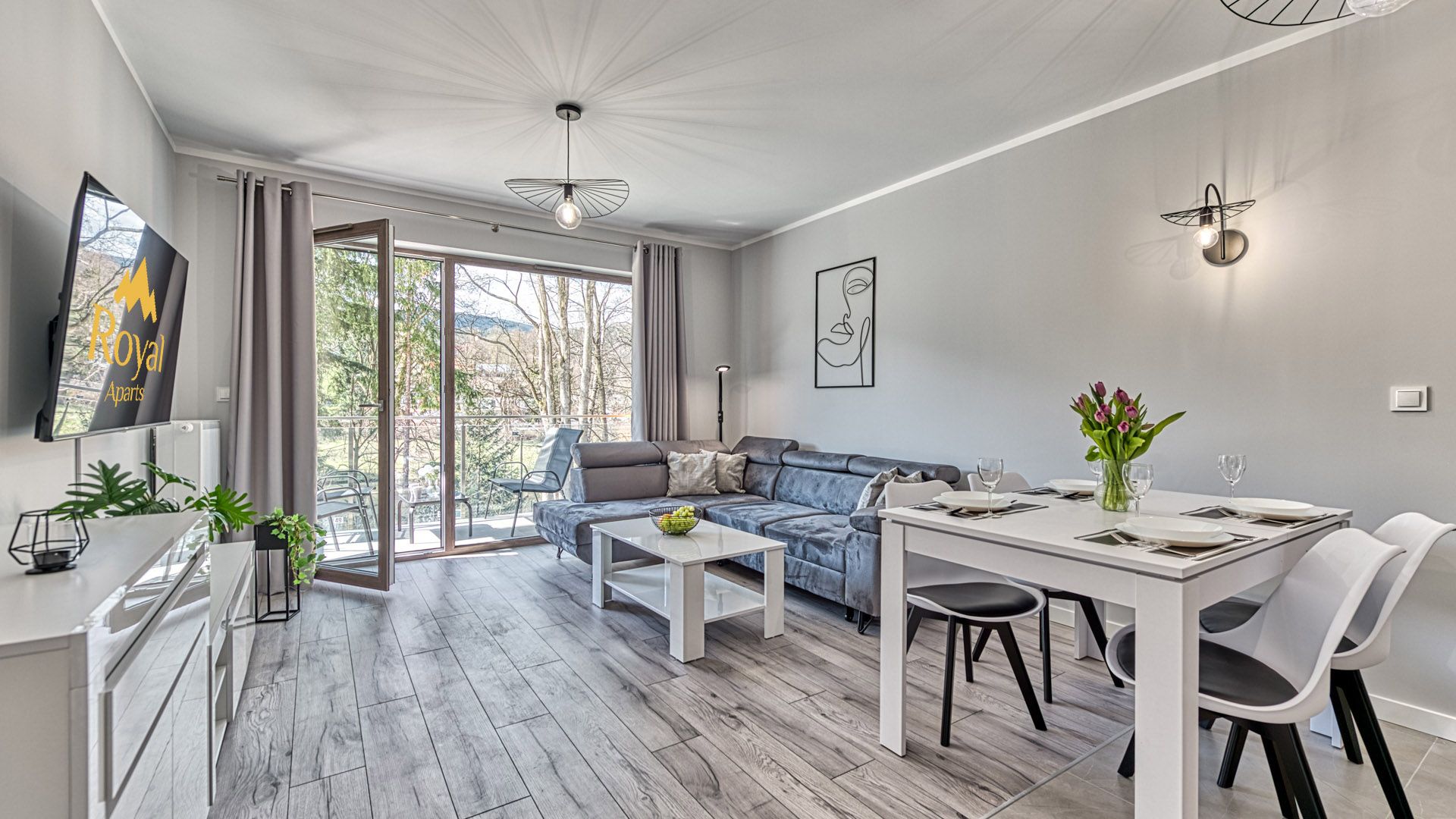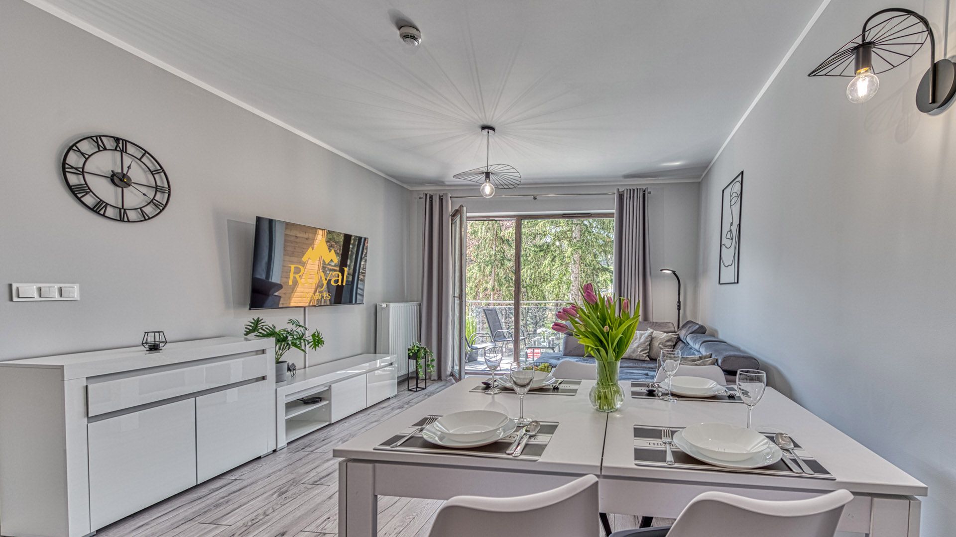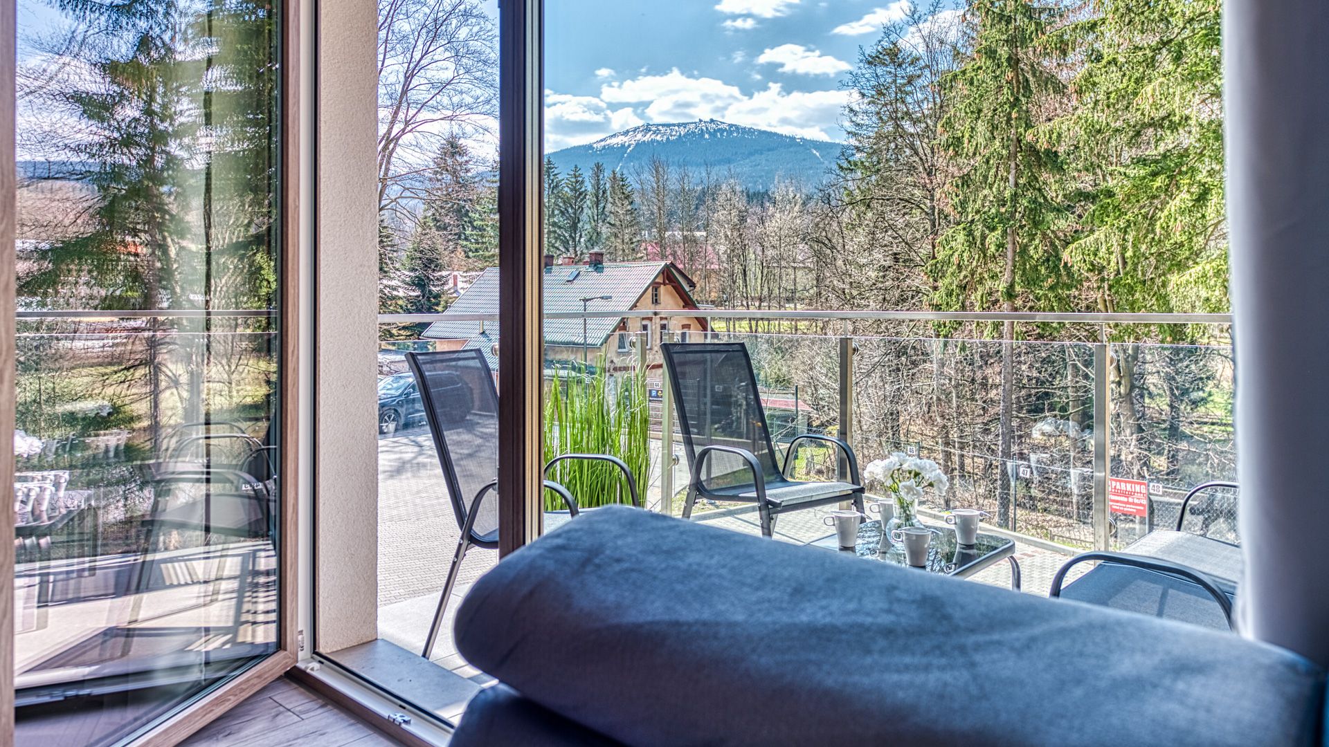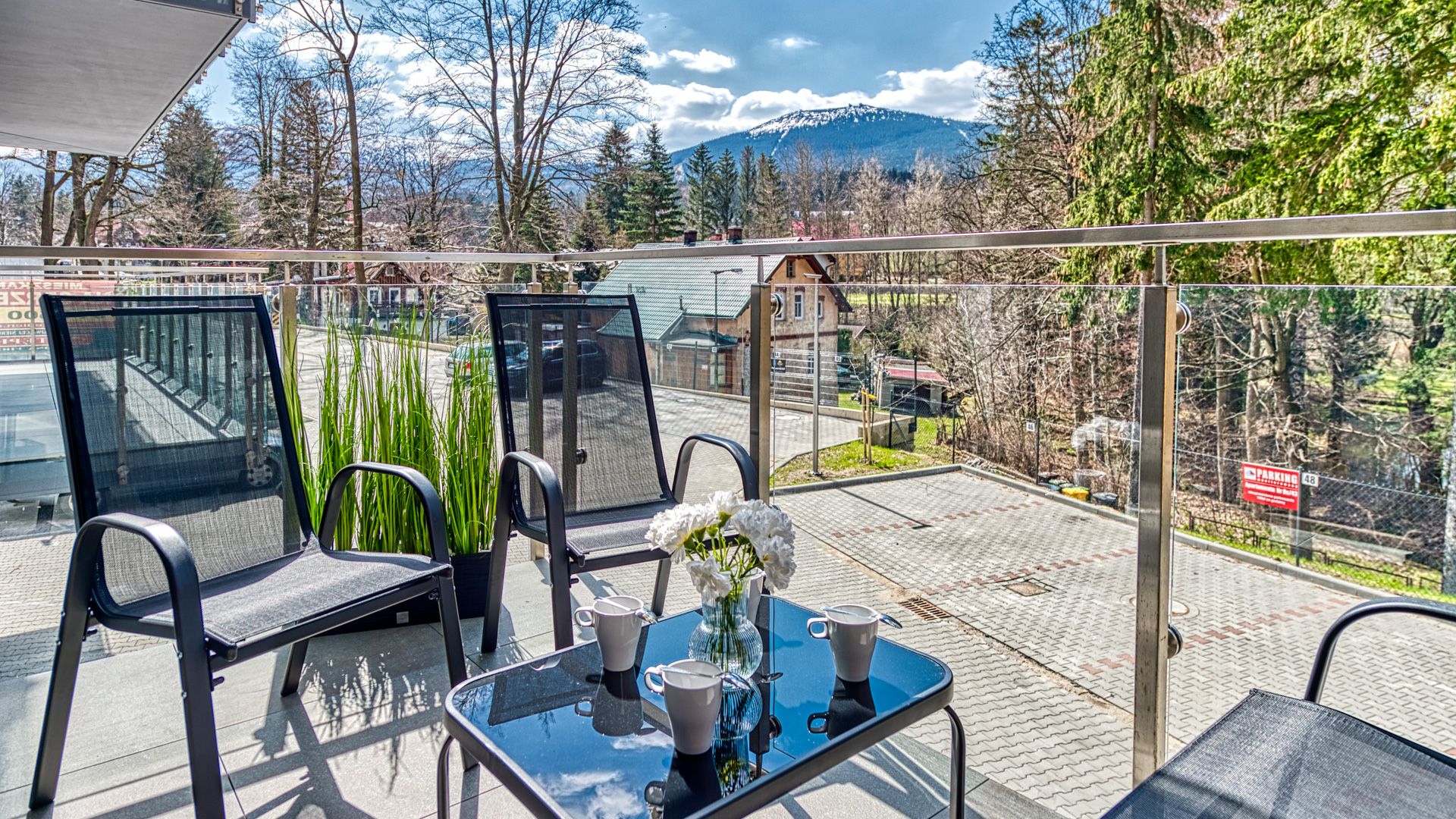 Obszerny balkon będzie ulubionym miejscem Gości na poranną kawę w otoczeniu gór. Dodatkowym atutem apartamentu jest prywatny schowek na sprzęt sportowy.