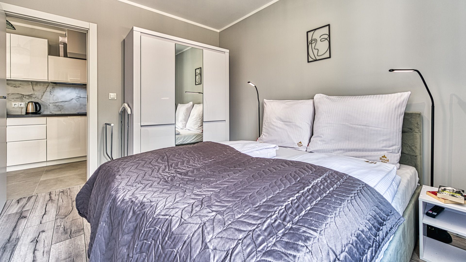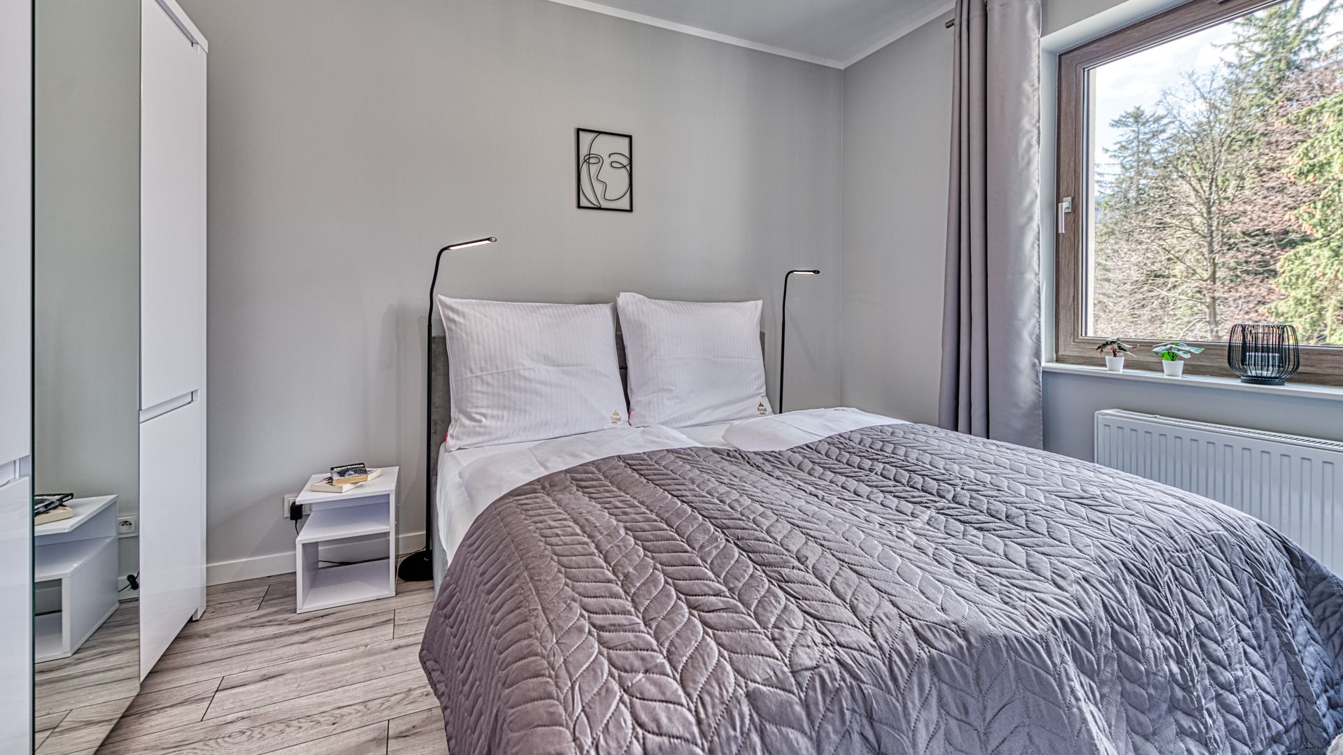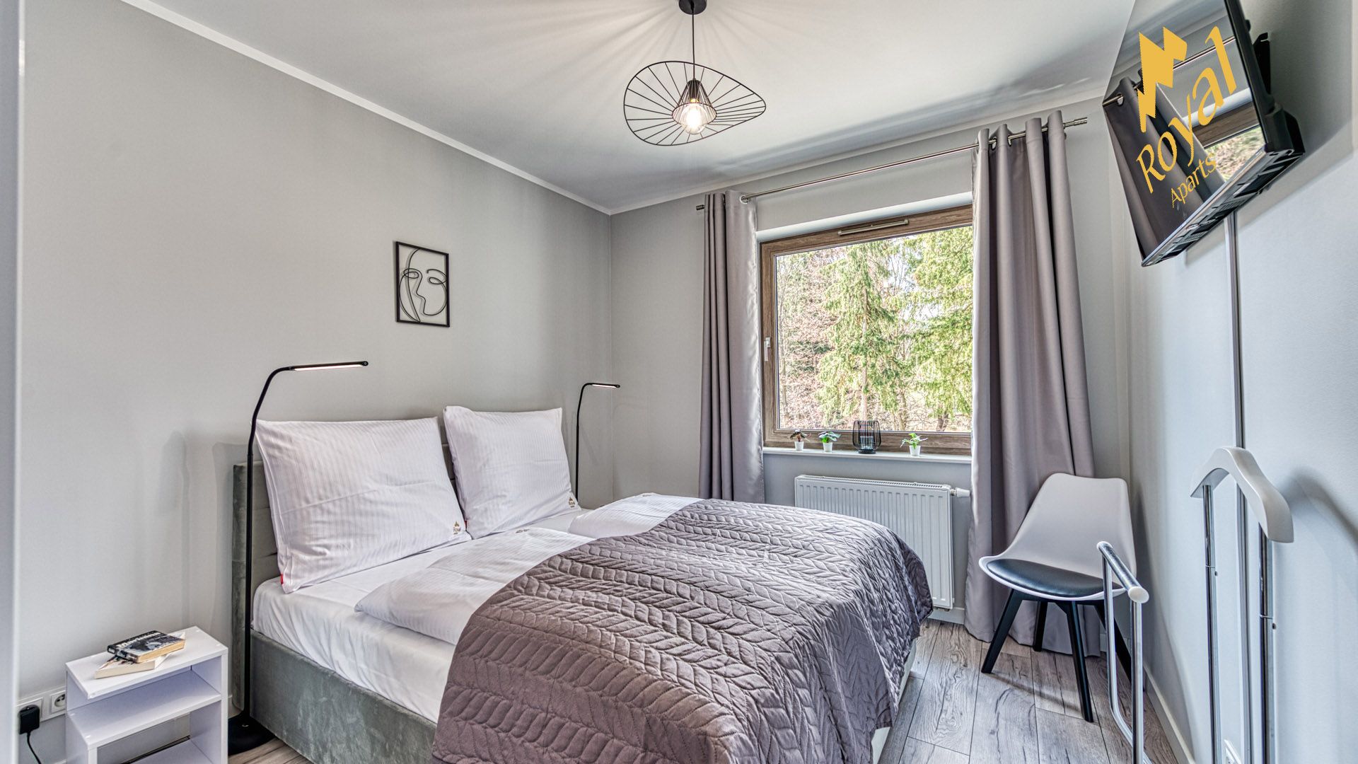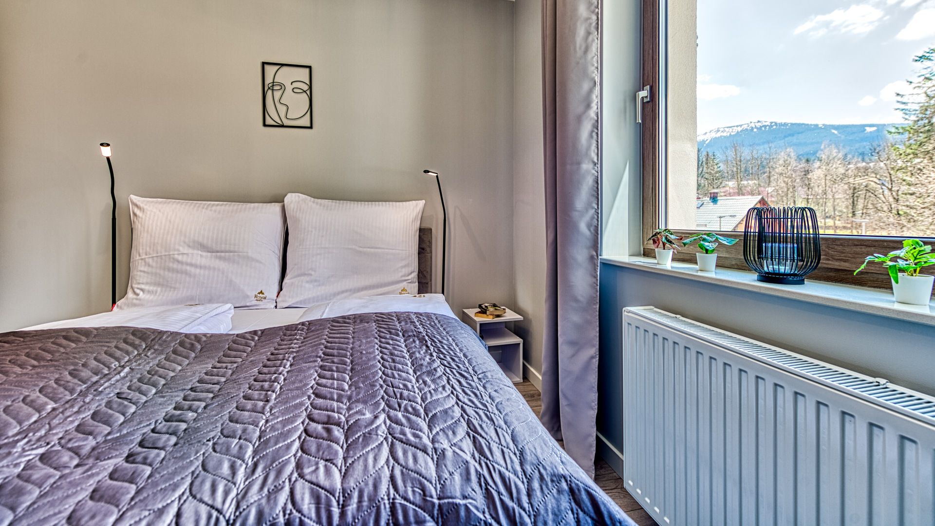 Prezentowany apartament jest częścią prestiżowego kompleksu Stone Hill w samym centrum Szklarskiej Poręby. To nowoczesny, czteroosobowy, w pełni wyposażony lokal o powierzchni 39m^2. W sypialni znajduje się duże łóżko małżeńskie. Część dzienna apartamentu składa się z, salonu połączonego z aneksem kuchennym i wyposażona jest w rozkładaną sofę oraz stół kuchenny. Całość domyka wykończona w wysokim standardzie łazienka z prysznicem i pralką.