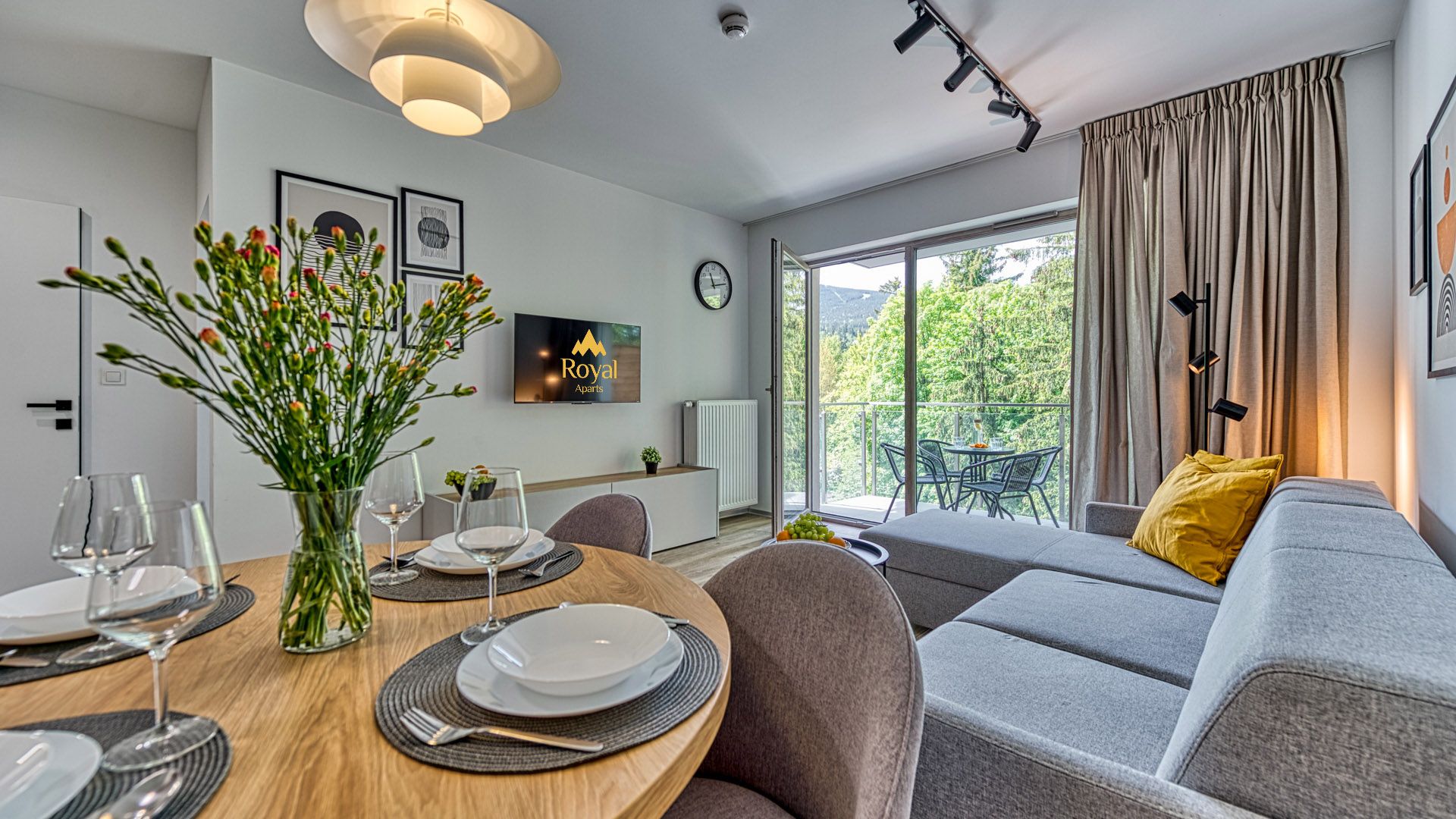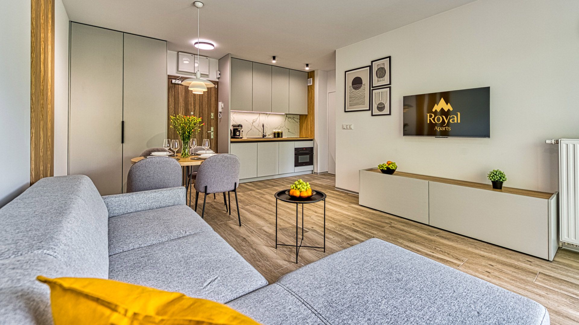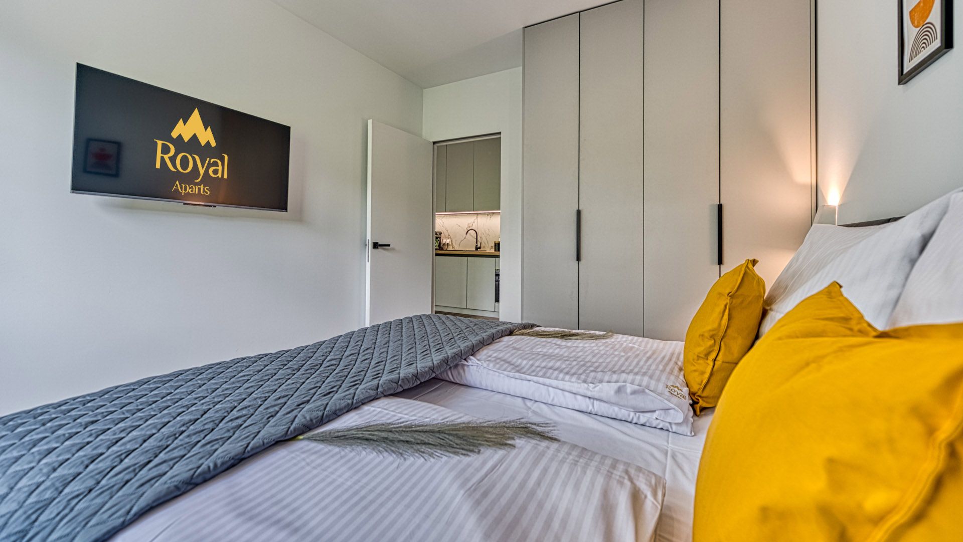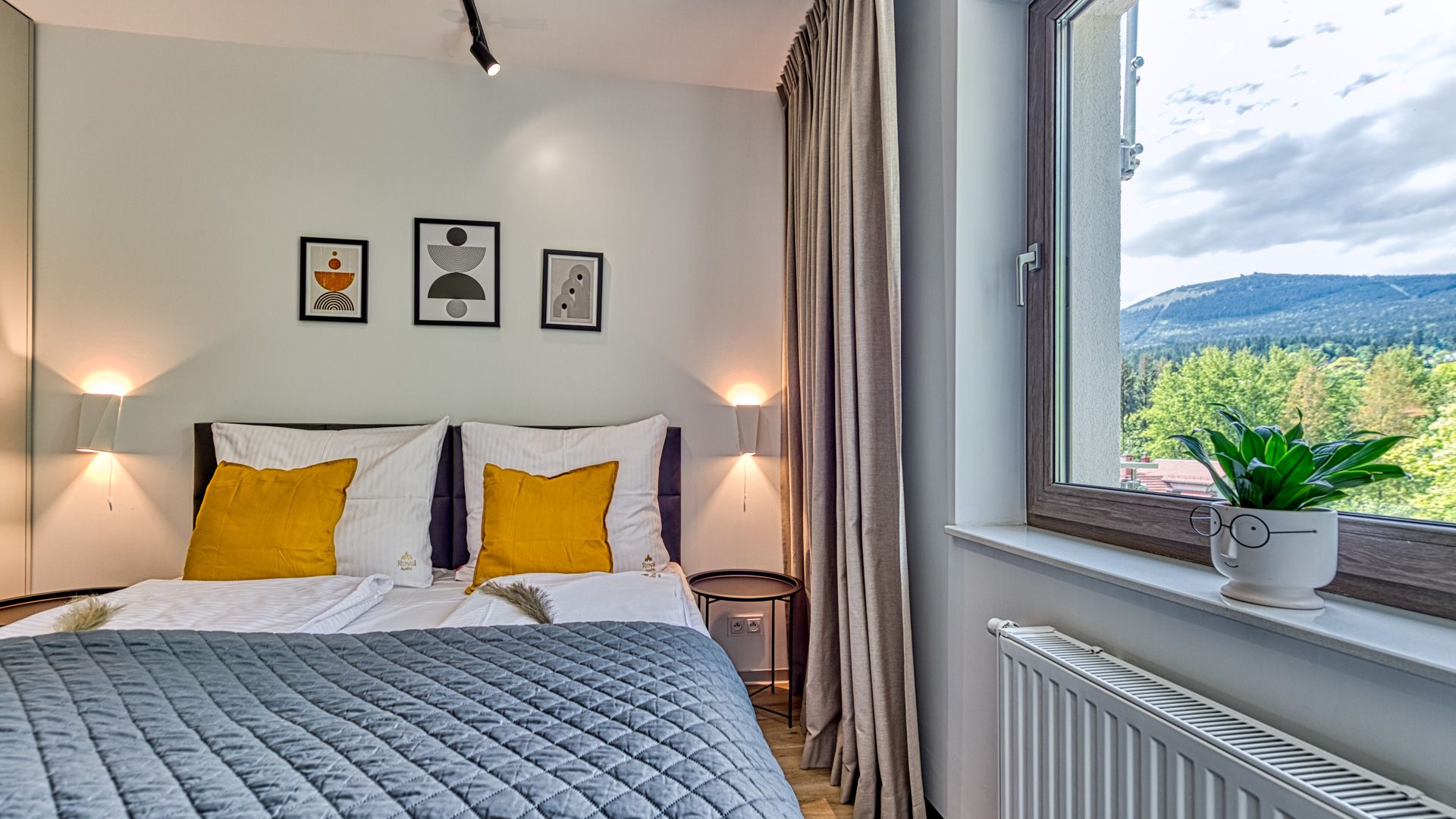 Prezentowany apartament jest częścią prestiżowego kompleksu Stone Hill w samym centrum Szklarskiej Poręby. To nowoczesny, czteroosobowy, w pełni wyposażony lokal o powierzchni 39m^2. W sypialni znajduje się duże łóżko małżeńskie oraz obszerna szafa. Część dzienna apartamentu składa się z, salonu połączonego z aneksem kuchennym i wyposażona jest w rozkładaną sofę, panoramiczny telewizor i stół kuchenny. Całość domyka wykończona w wysokim standardzie łazienka.