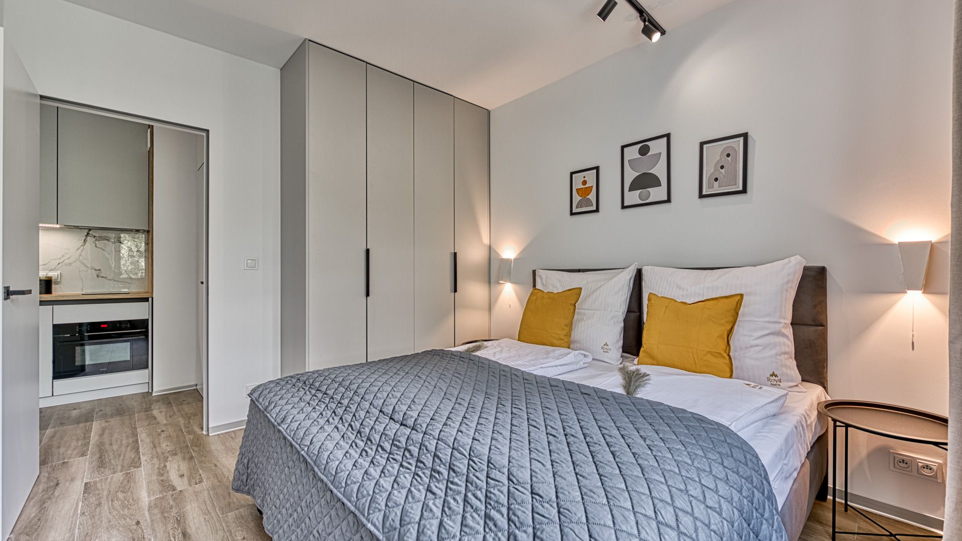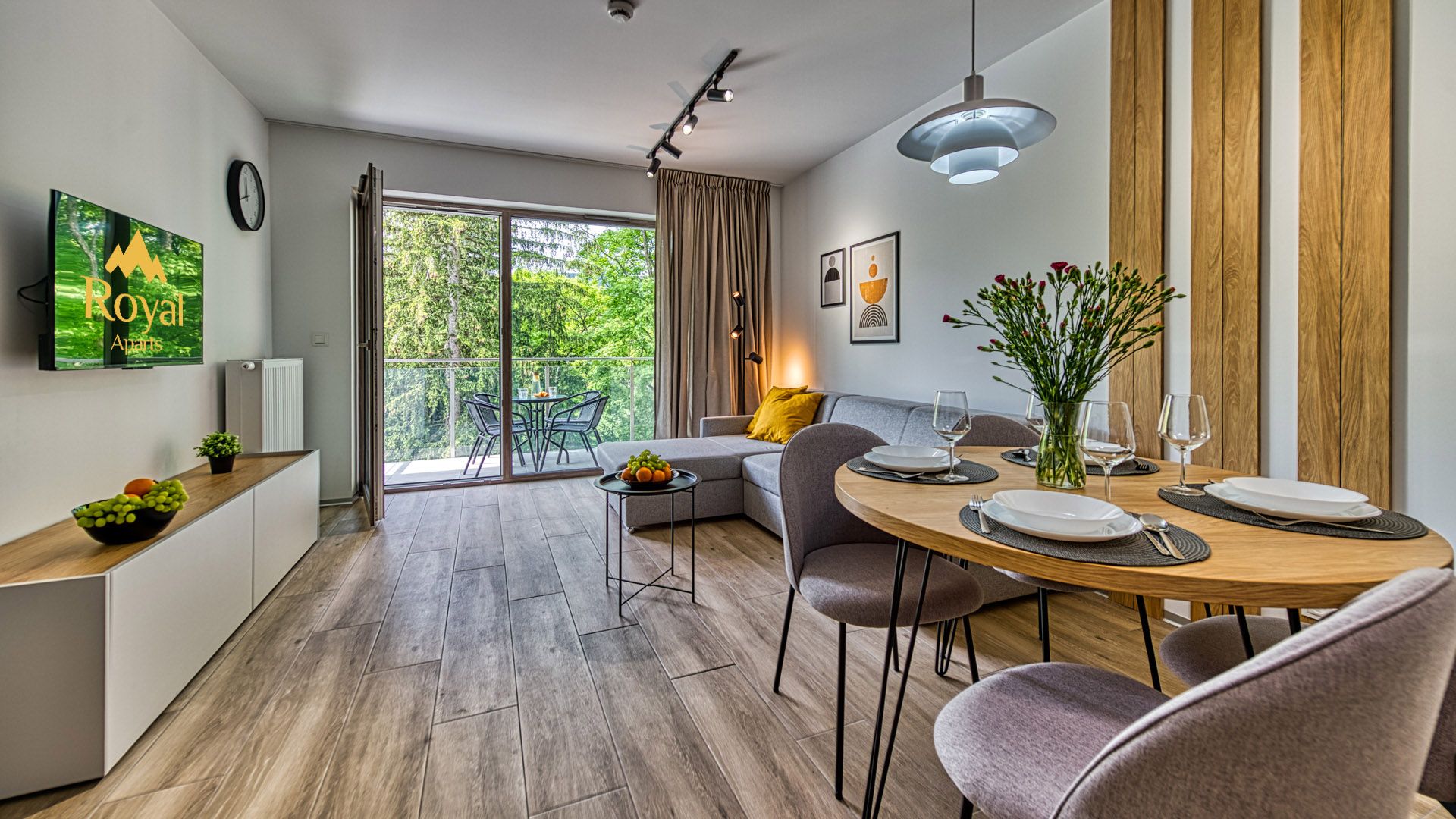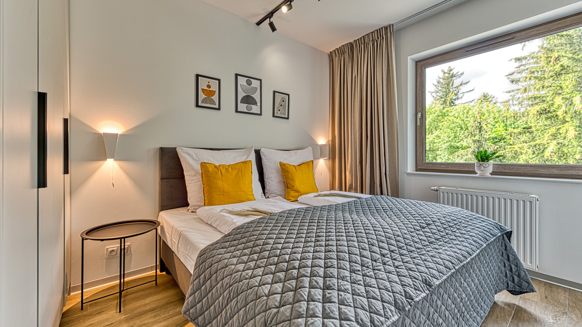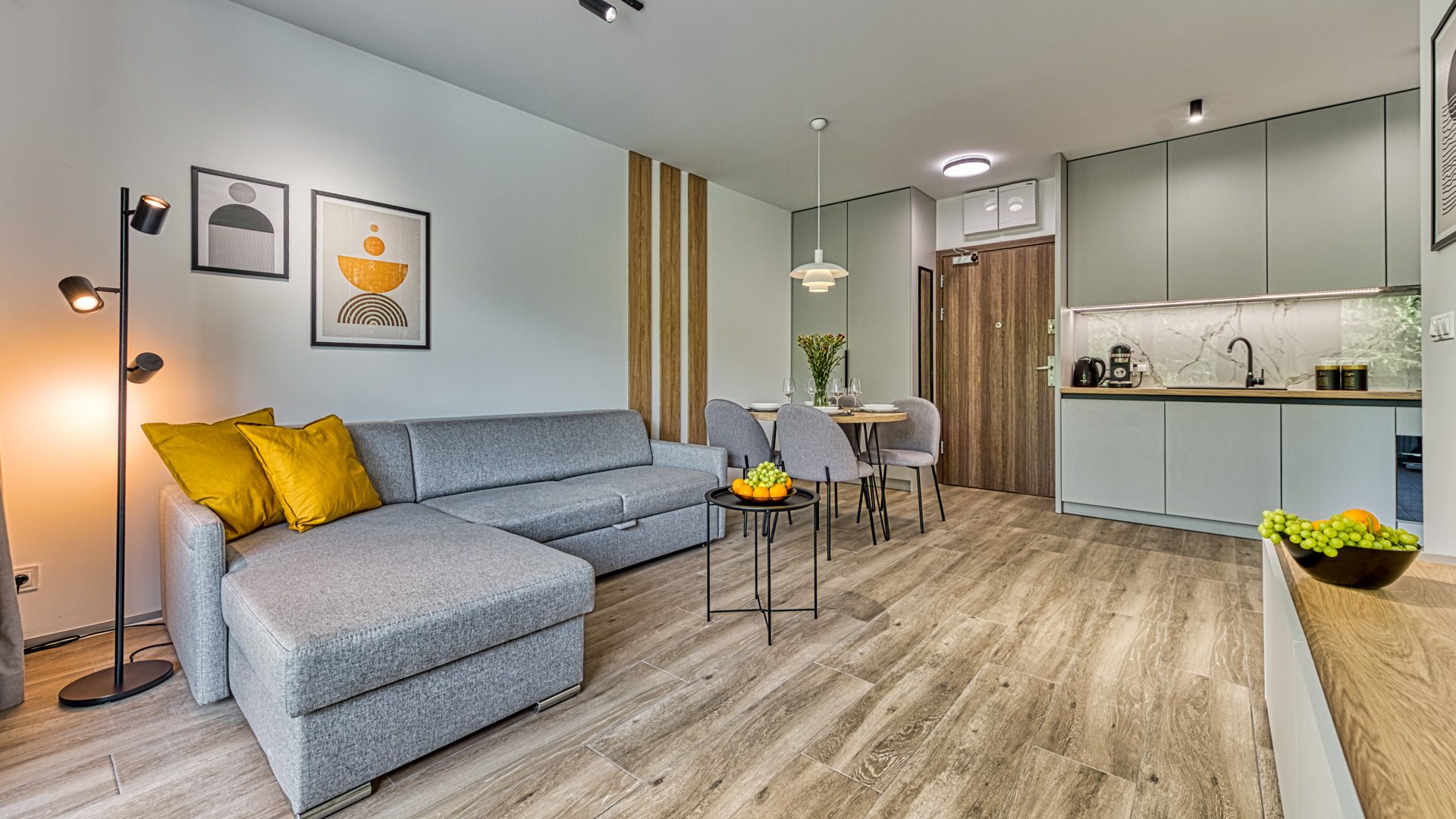 Prezentowany apartament jest częścią prestiżowego kompleksu Stone Hill w samym centrum Szklarskiej Poręby. To nowoczesny, czteroosobowy, w pełni wyposażony lokal o powierzchni 39m^2. W sypialni znajduje się duże łóżko małżeńskie oraz obszerna szafa. Część dzienna apartamentu składa się z, salonu połączonego z aneksem kuchennym i wyposażona jest w rozkładaną sofę, panoramiczny telewizor i stół kuchenny. Całość domyka wykończona w wysokim standardzie łazienka.