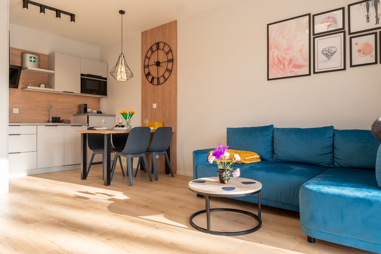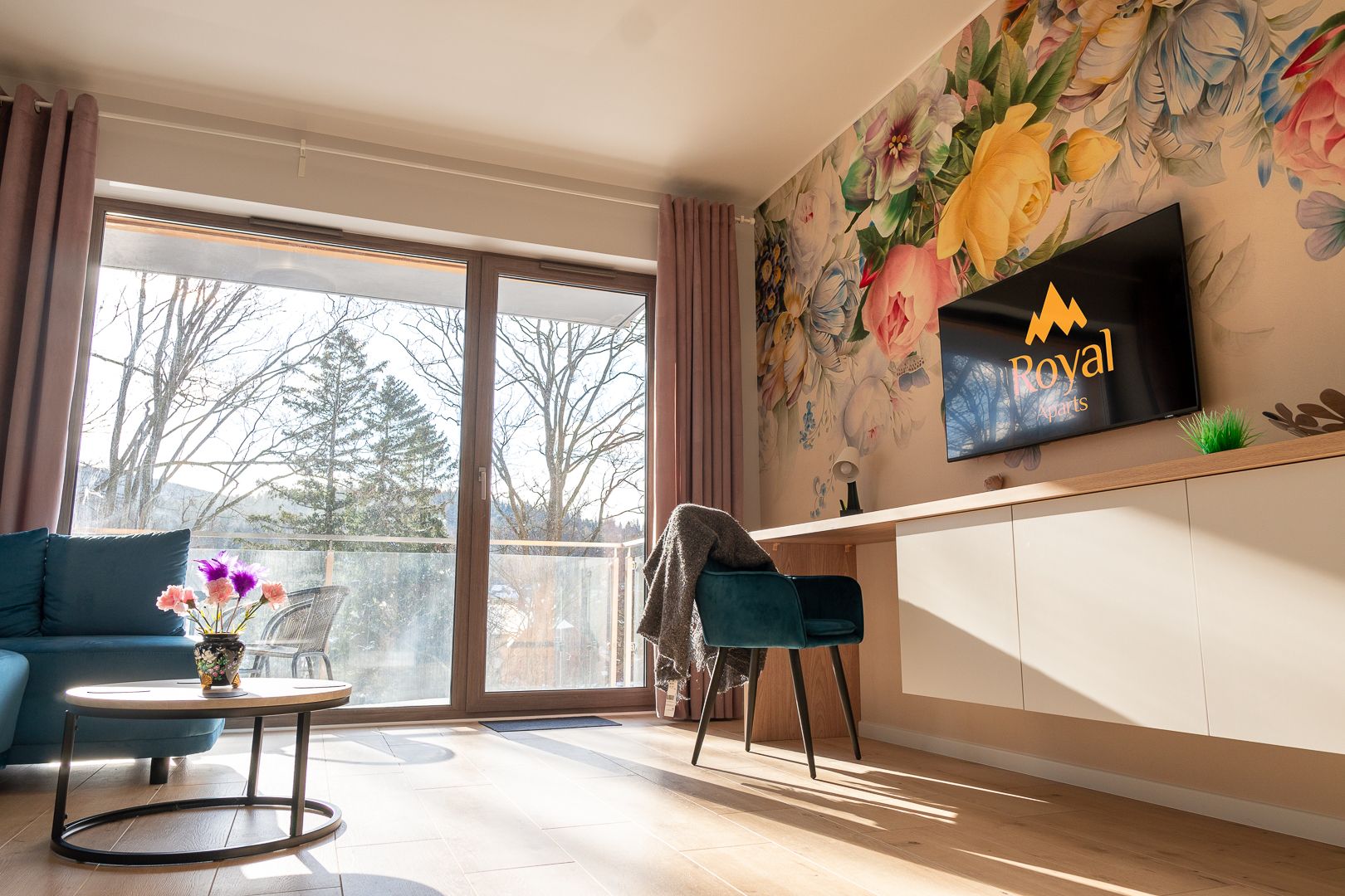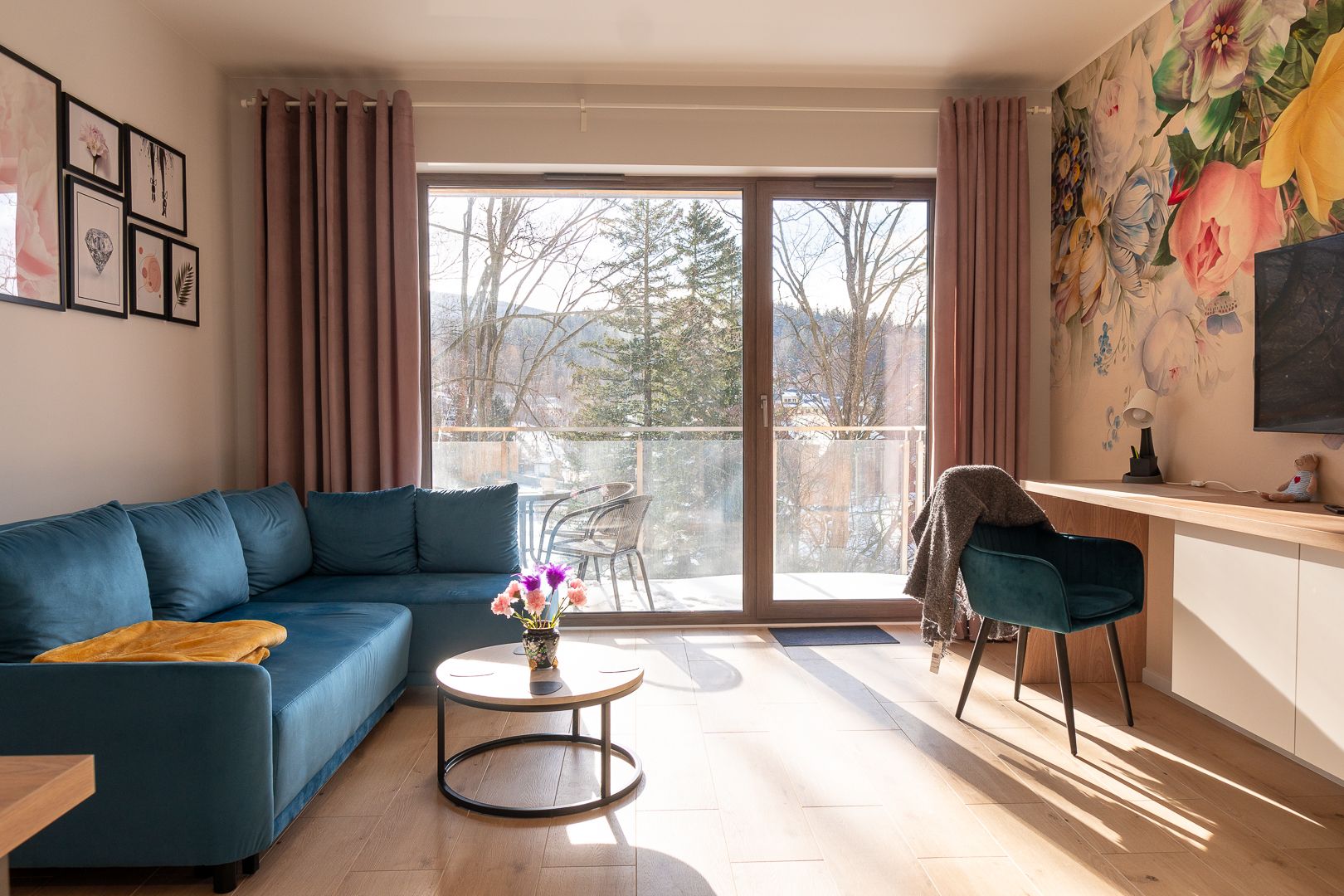 Prezentowany apartament jest częścią prestiżowego kompleksu Stone Hill w samym centrum Szklarskiej Poręby. To nowoczesny, dwupokojowy apartament o powierzchni 39m^2. W sypialni znajduje się wygodne małżeńskie łoże i duża szafa. Część dzienna apartamentu zaopatrzona w rozkładaną sofę i płaski telewizor, połączona jest z w pełni wyposażonym aneksem kuchennym. Sam aneks zaopatrzony jest we wszelkie niezbędne do przygotowania smacznego posiłku sprzęty, m.in. czajnik, płytę grzewczą, talerze i sztućce, lodówkę, ekspres do kawy, opiekacz/toster, zmywarkę, mikrofalówkę, etc. W łazience znajduje się pralka oraz prysznic. Ponadto zapewniamy Gościom dostęp do darmowego Internetu Wi-Fi.