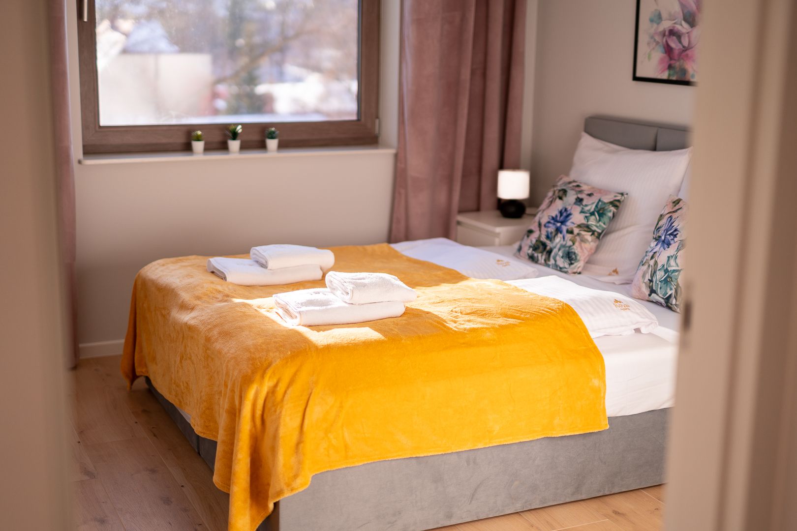 Goście apartamentu mogą nieodpłatnie korzystać z basenu, jacuzzi i saun, znajdujących się w budynku "B" kompleksu Stone Hill. Przejście do budynku "B" prowadzi przez otwartą przestrzeń. Prosimy wziąć to pod uwagę.