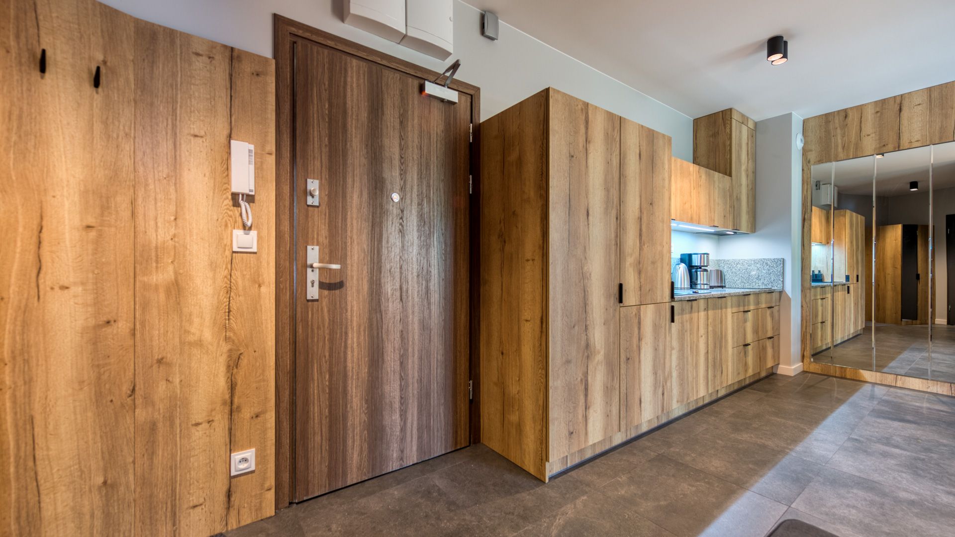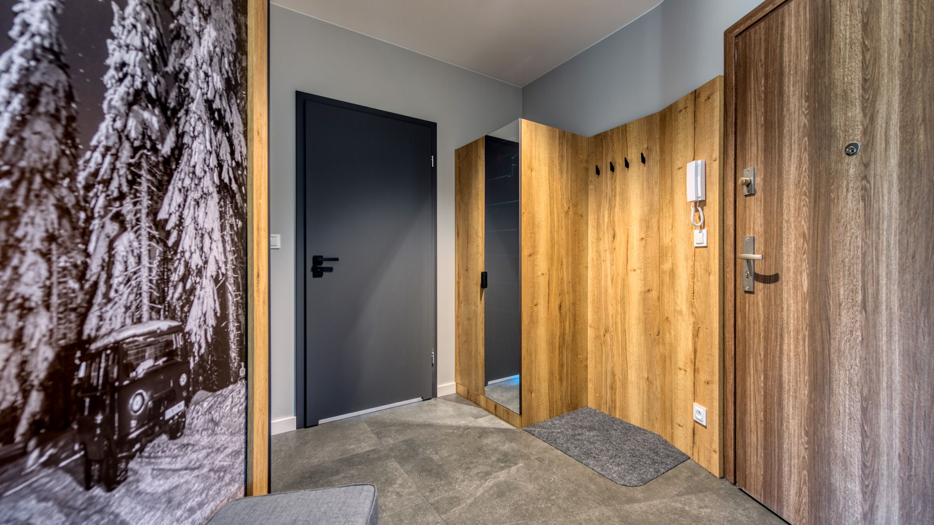 Dużym atutem apartamentu jest prywatny garaż z możliwością przechowania rowerów lub sprzętu narciarskiego.