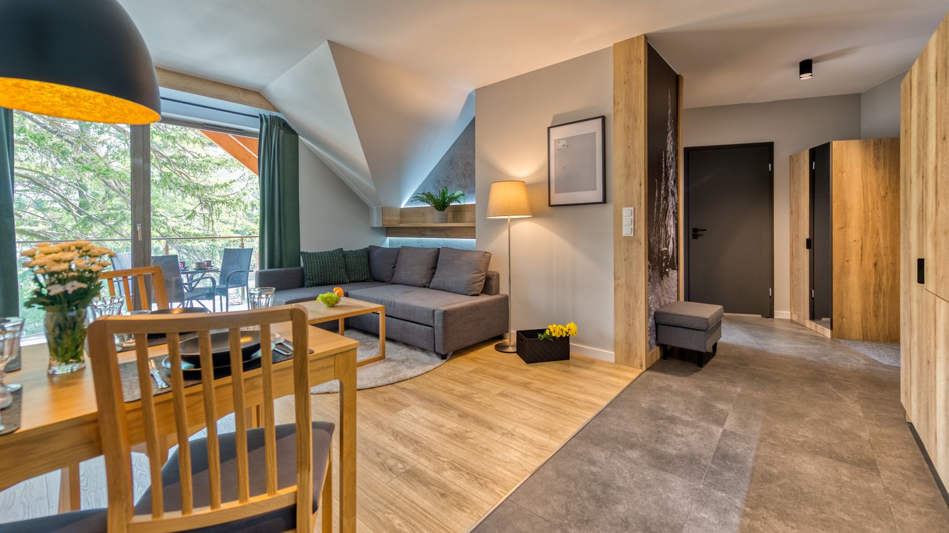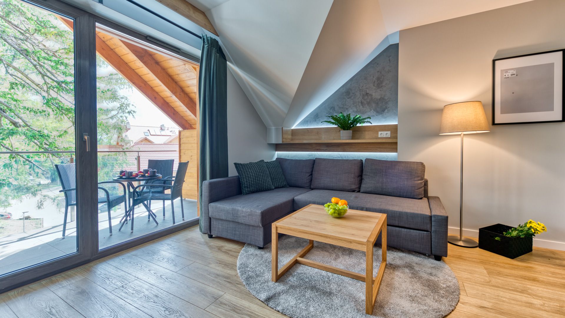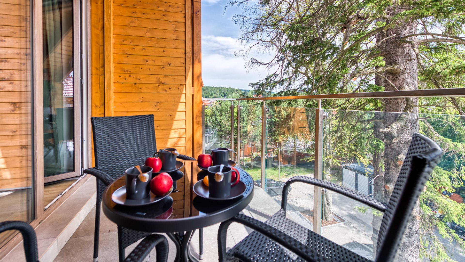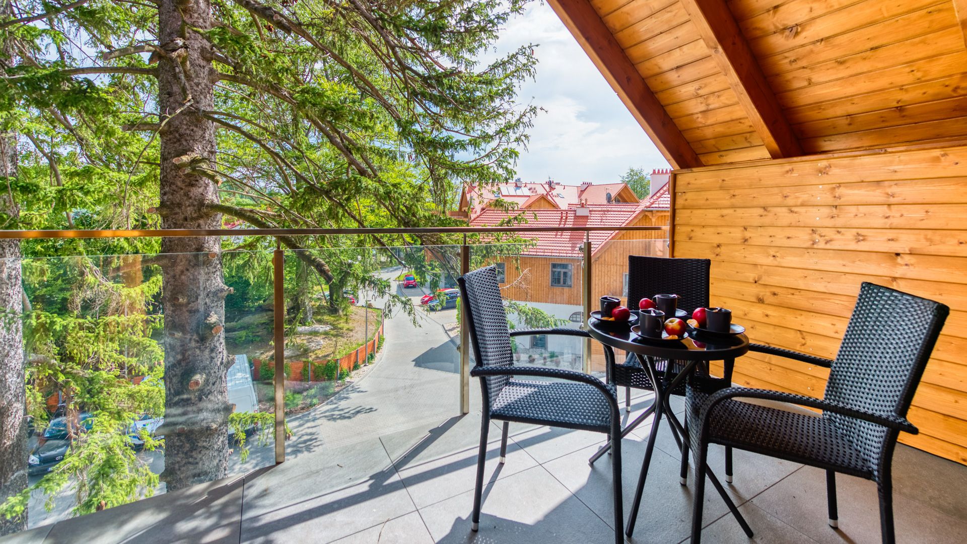 Obszerny balkon będzie ulubionym miejscem Gości na poranną kawę w otoczeniu gór.