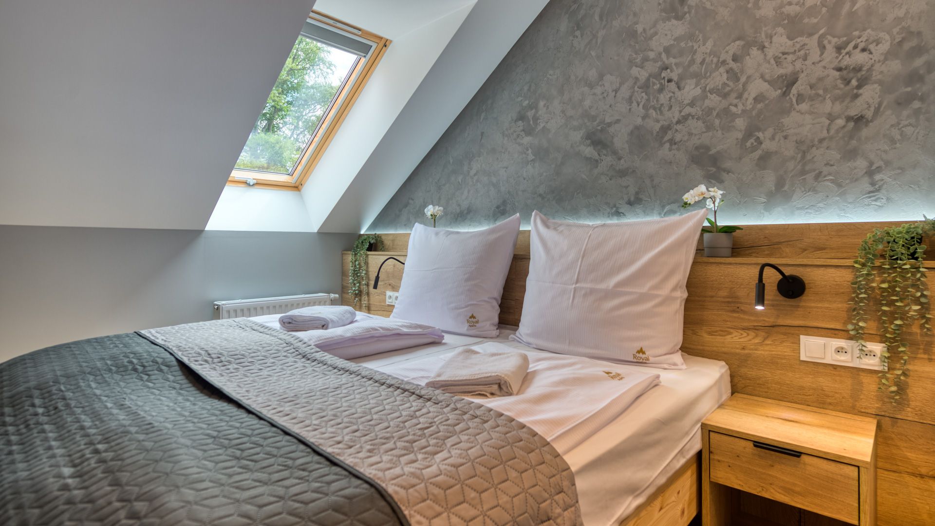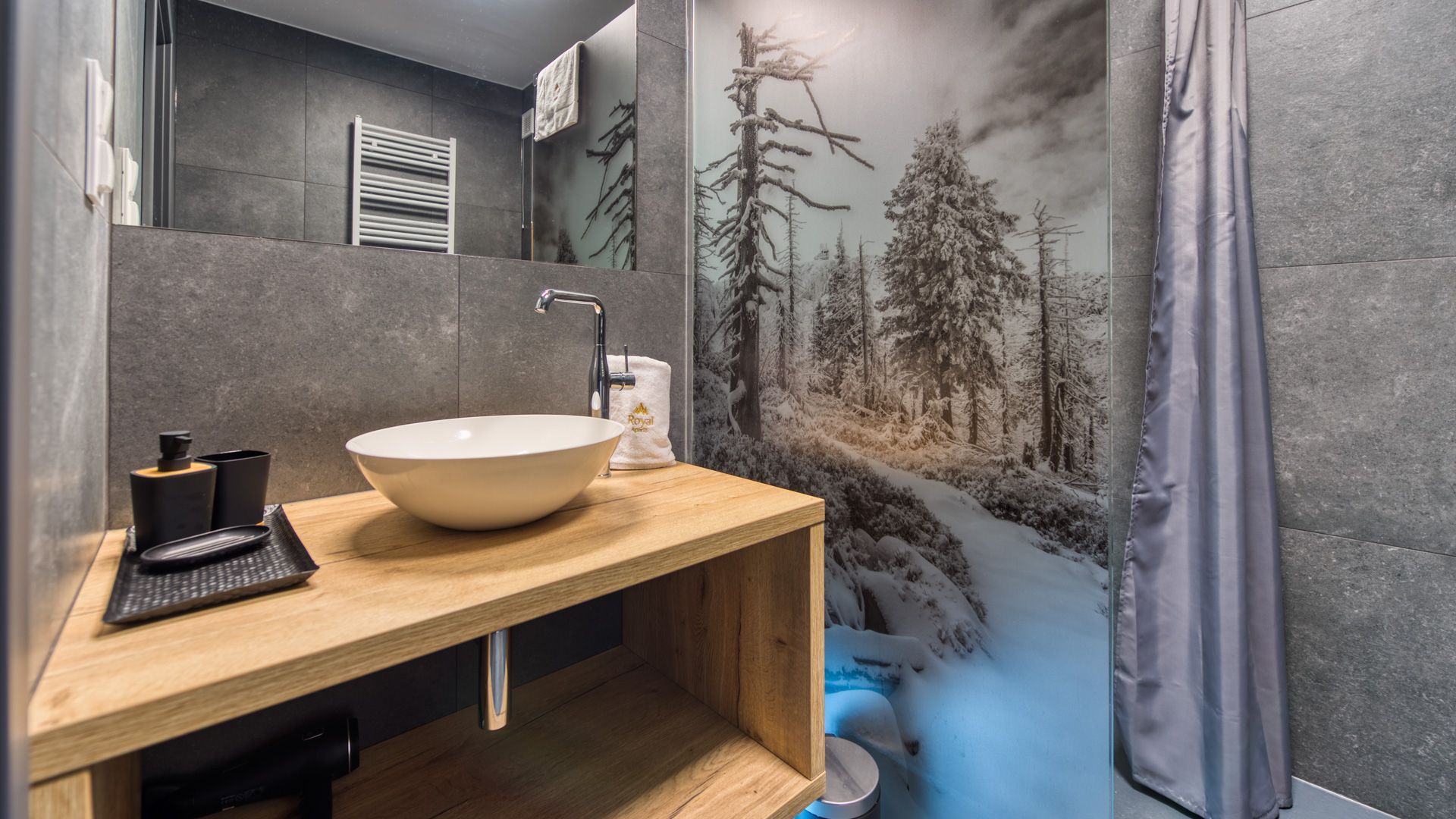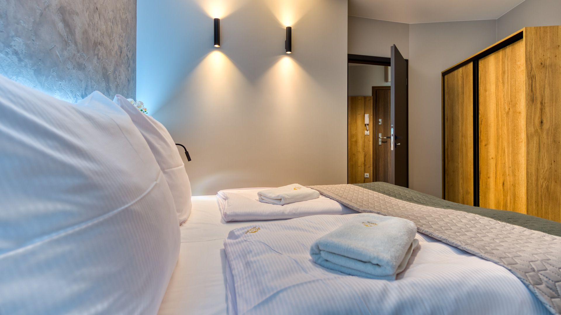 Prezentowany apartament jest częścią prestiżowego kompleksu Stone Hill w samym centrum Szklarskiej Poręby. To nowoczesny, czteroosobowy, w pełni wyposażony lokal o powierzchni 40m^2. W sypialni znajduje się duże łóżko małżeńskie oraz obszerna szafa. Część dzienna apartamentu składa się z, salonu połączonego z aneksem kuchennym i wyposażona jest w rozkładaną sofę, panoramiczny telewizor i stół kuchenny. Całość domyka wykończona w wysokim standardzie łazienka z pralką.