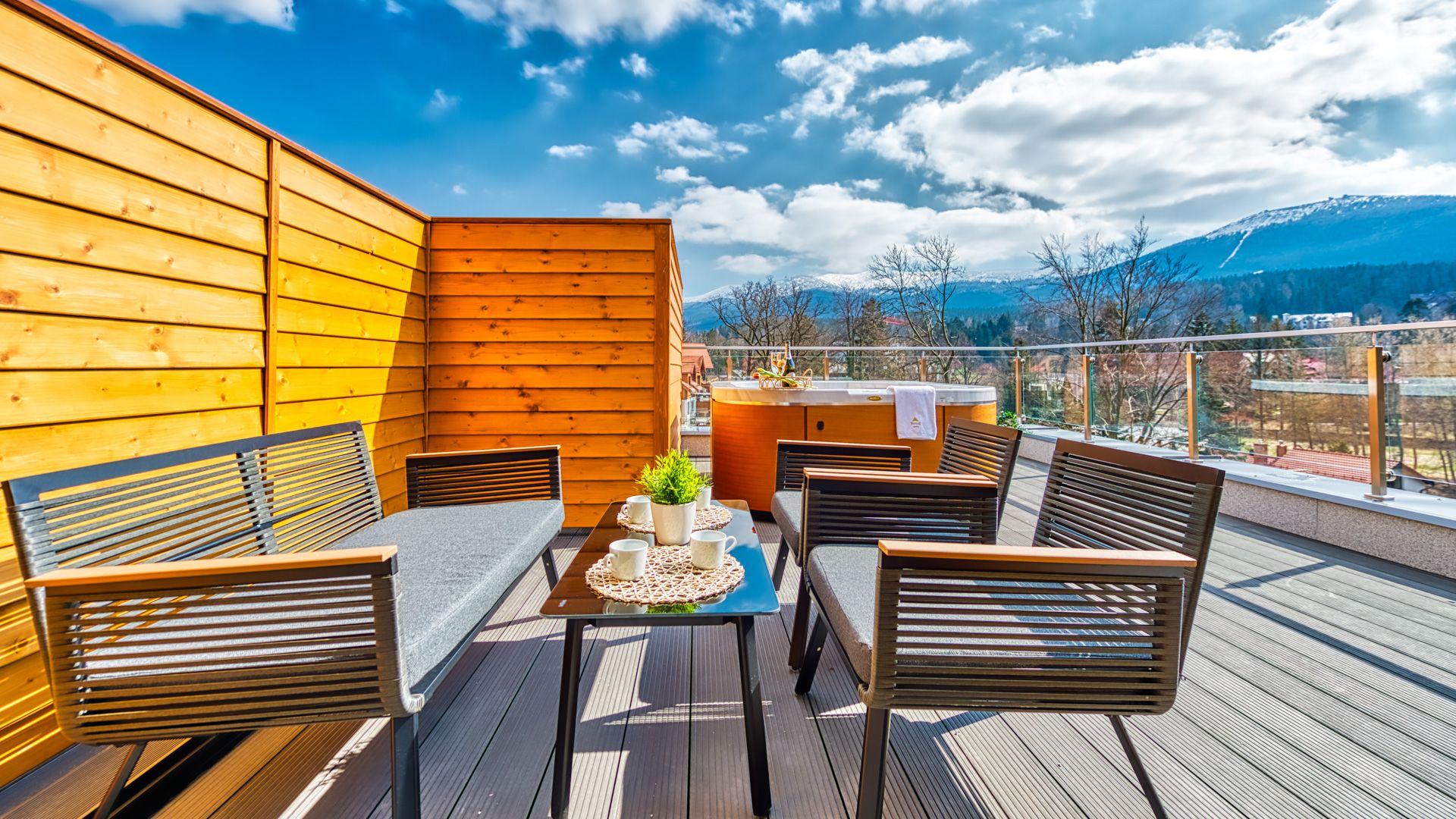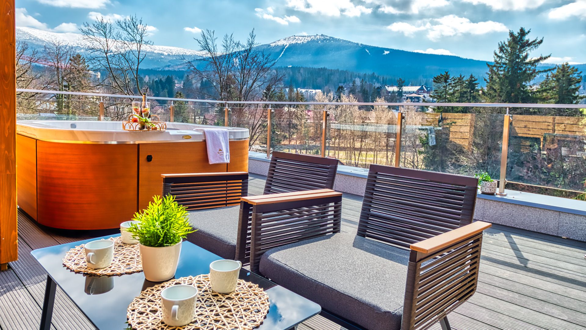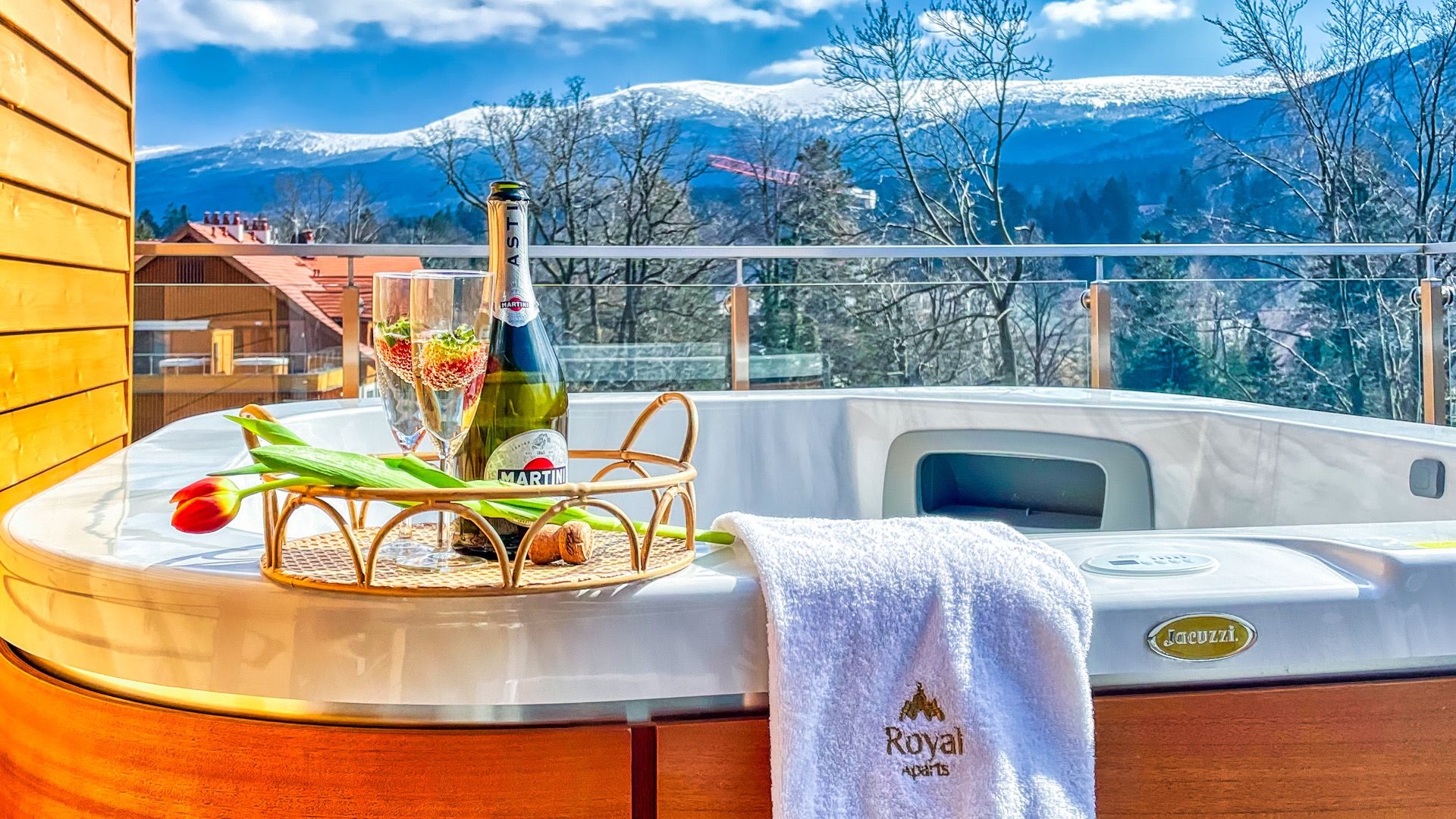 Prezentowany apartament jest częścią prestiżowego kompleksu Stone Hill w samym centrum Szklarskiej Poręby. To nowoczesny, w pełni wyposażony lokal o powierzchni 37m^2, który zapewni komfortowy pobyt nawet czterem osobom. Największym atutem, który czyni ten apartament wyjątkowym jest jacuzzi, znajdujące się na obszernym tarasie, skąd można podziwiać piękną panoramę gór.