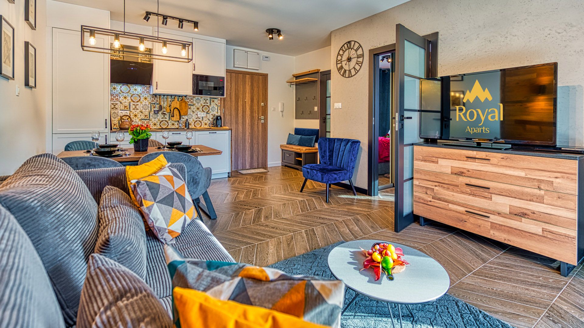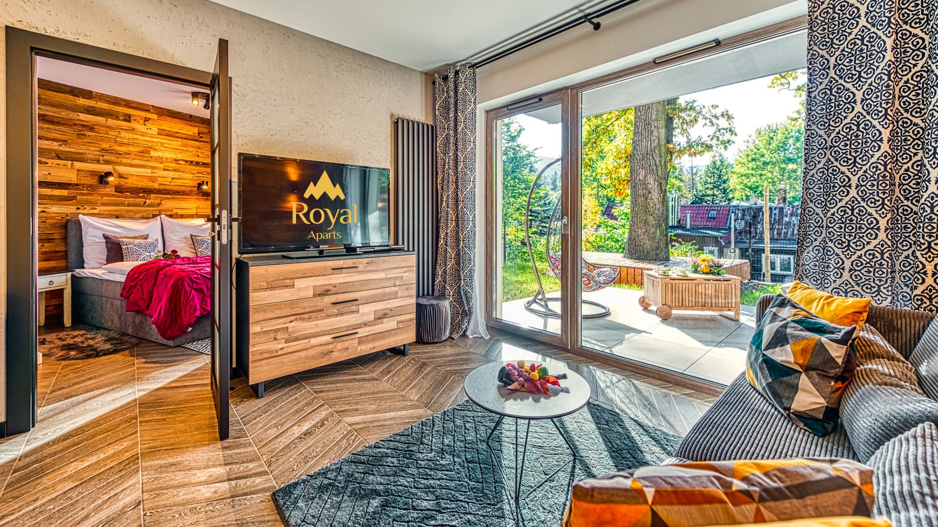 Prezentowany apartament jest częścią prestiżowego kompleksu Stone Hill w samym centrum Szklarskiej Poręby. To nowoczesny, czteroosobowy, w pełni wyposażony lokal o powierzchni 40m^2. W sypialni znajduje się duże łóżko małżeńskie, płaski telewizor oraz obszerna szafa. Część dzienna apartamentu składa się z, salonu połączonego z aneksem kuchennym i wyposażona jest w rozkładaną sofę, panoramiczny telewizor i stół kuchenny. Całość domyka wykończona w wysokim standardzie łazienka.