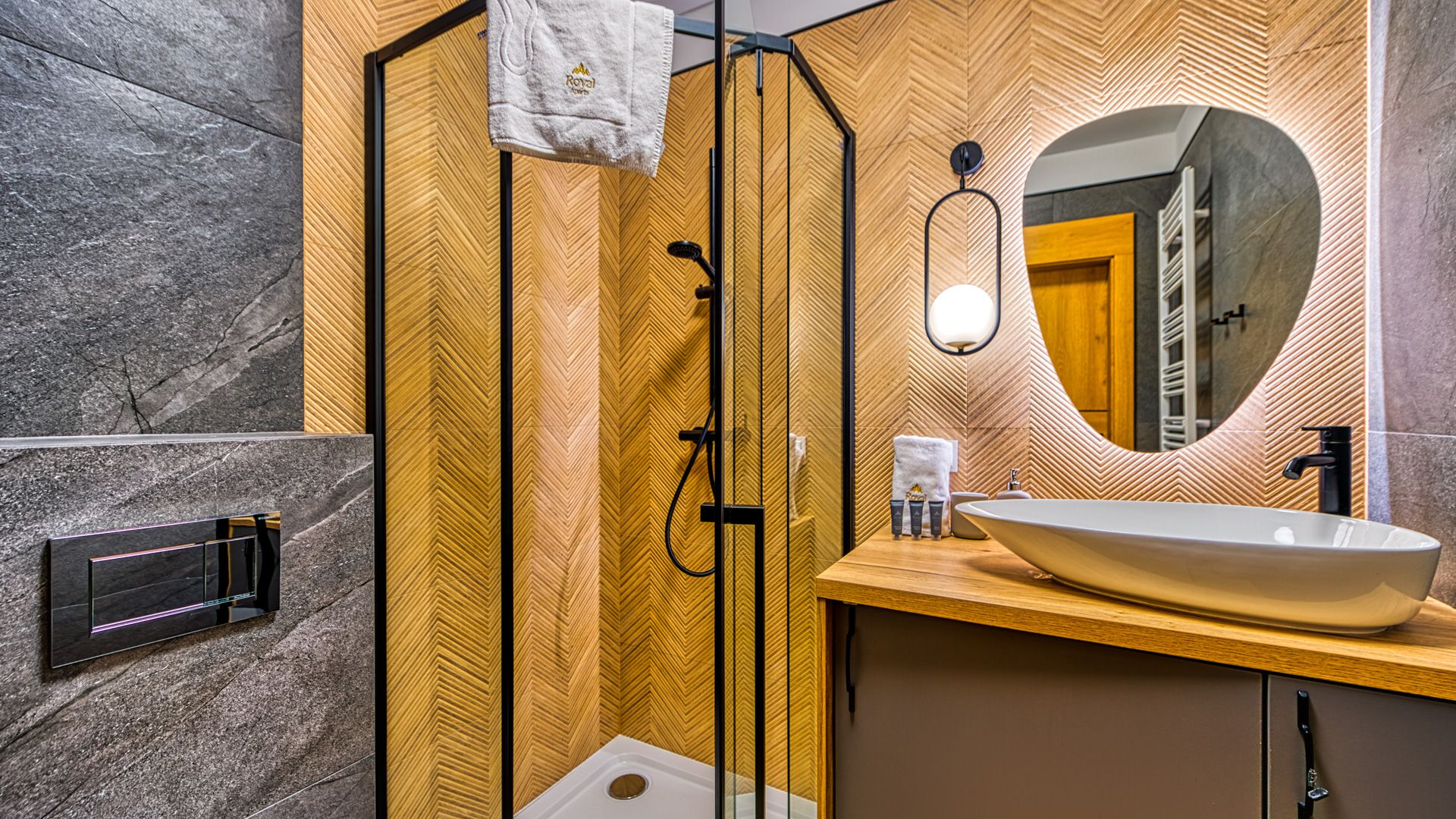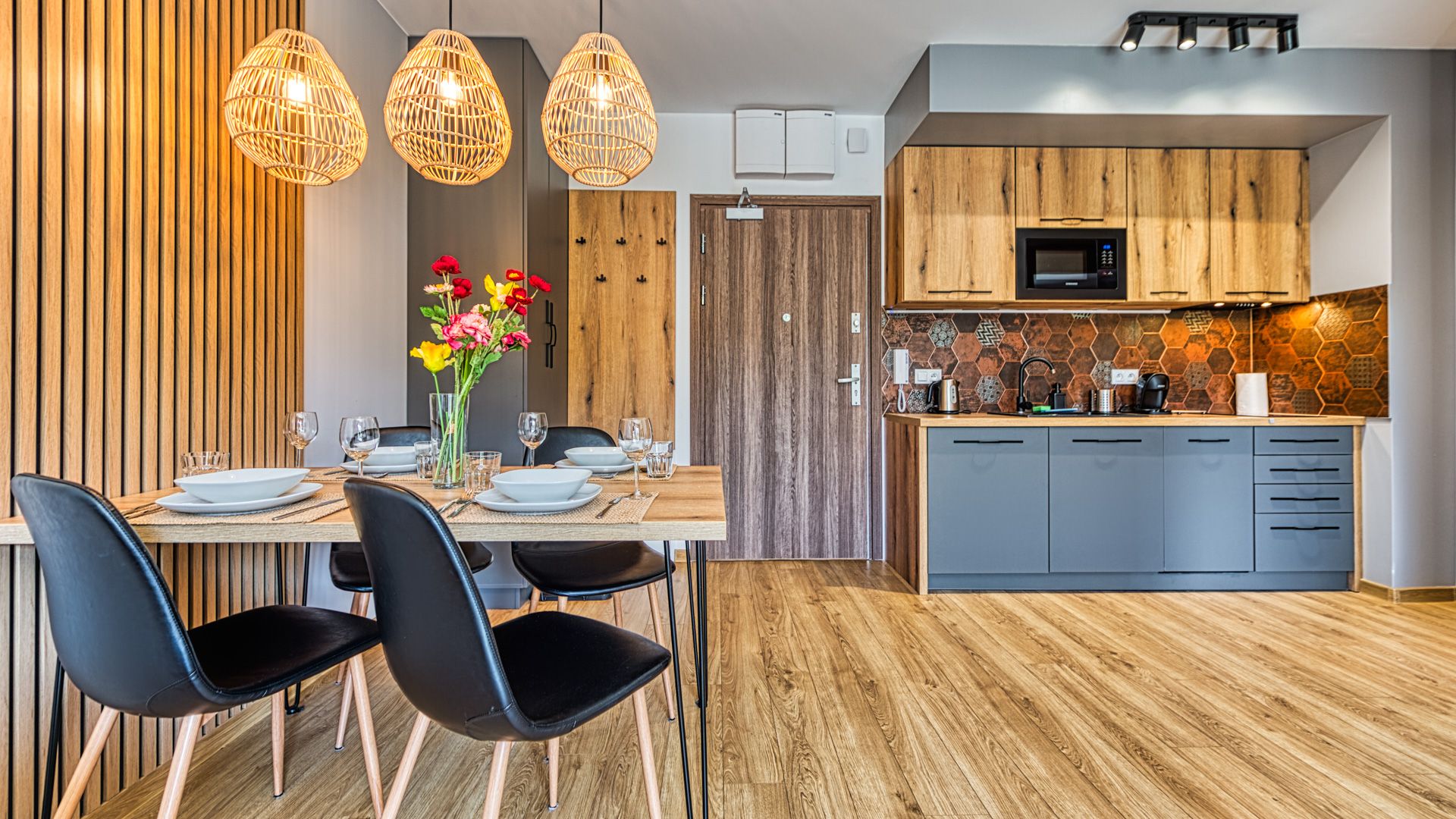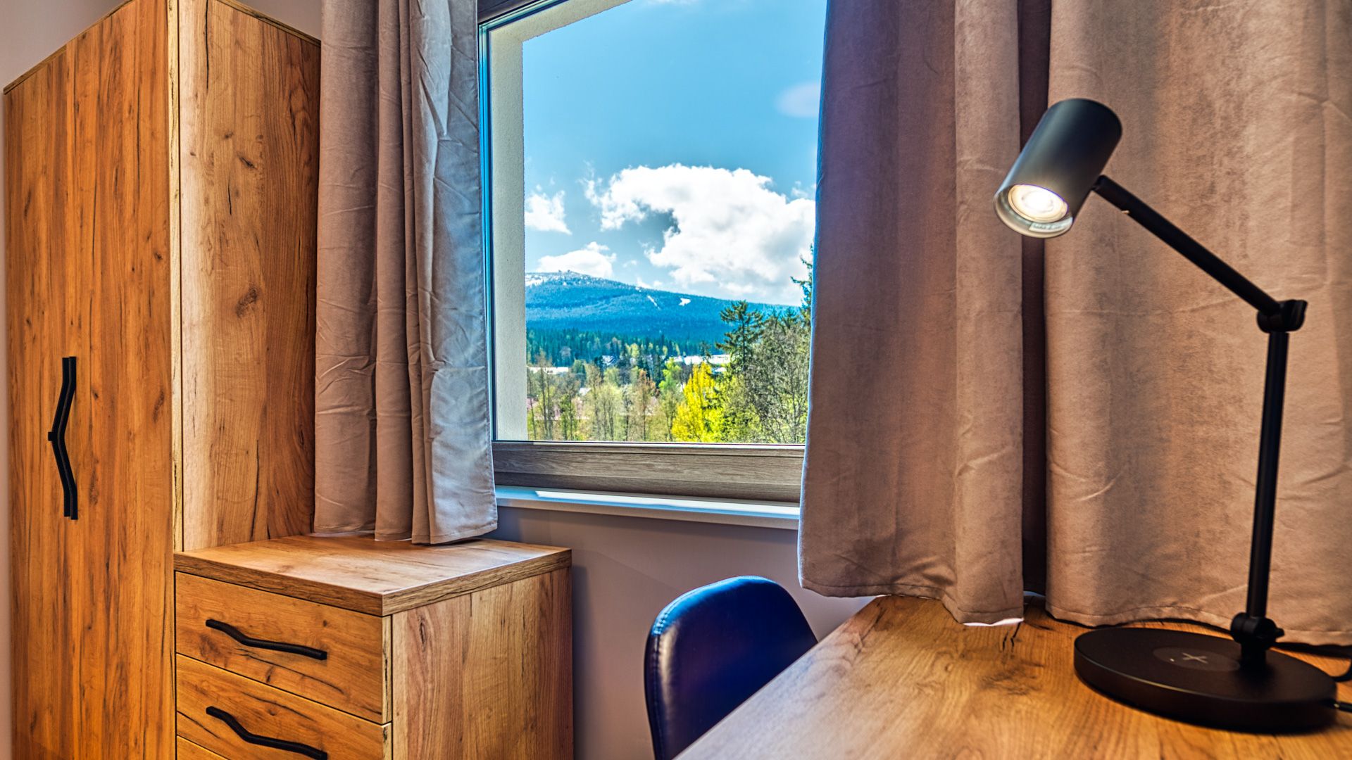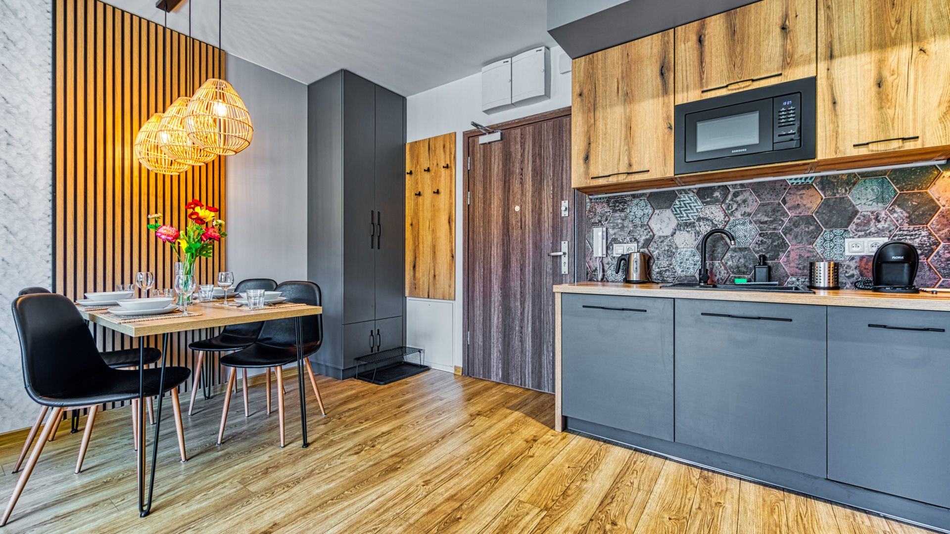 Prezentowany apartament jest częścią prestiżowego kompleksu Stone Hill w samym centrum Szklarskiej Poręby. To nowoczesny, dwupokojowy apartament o powierzchni 38m2. W sypialni znajduje się wygodne małżeńskie łoże, duża szafa i biurko. Do dyspozycji gości jest również składane łóżeczko dziecięce. Część dzienna apartamentu zaopatrzona w rozkładaną sofę i płaski telewizor, połączona jest z w pełni wyposażonym aneksem kuchennym. W skład aneksu wchodzą m.in. płyta grzewcza, czajnik, talerze i sztućce, lodówka, ekspres do kawy, zmywarka, etc. Łazienka apartamentu jest elegancka i wyposażona w prysznic, umywalkę, toaletę i pralkę. Wszystkie niezbędne ręczniki i przybory toaletowe są dostępne na miejscu, aby zapewnić wygodę i komfort podczas pobytu.