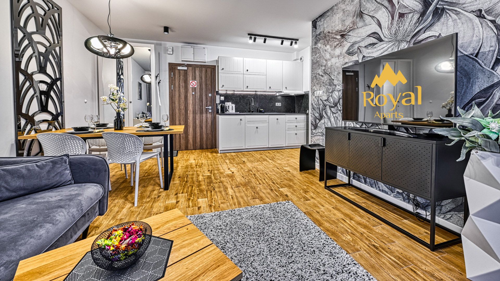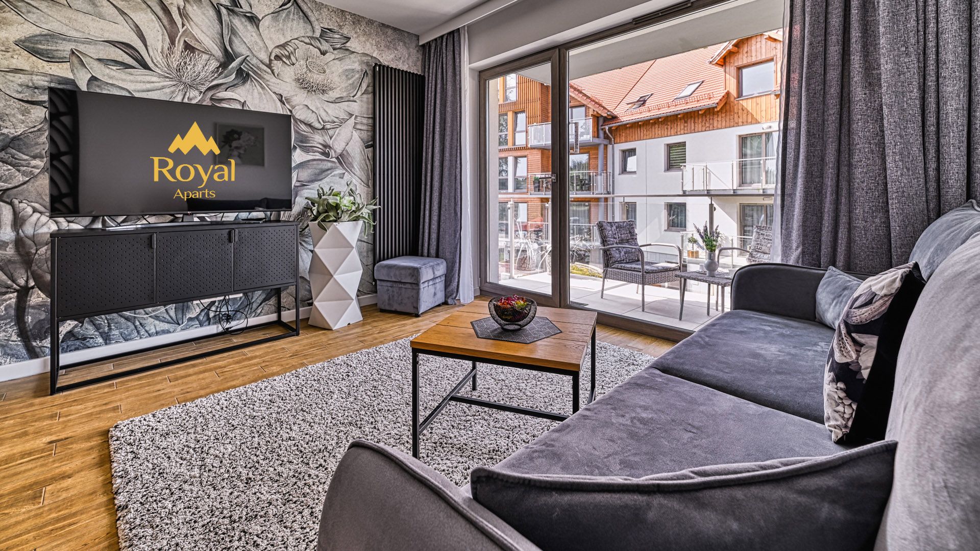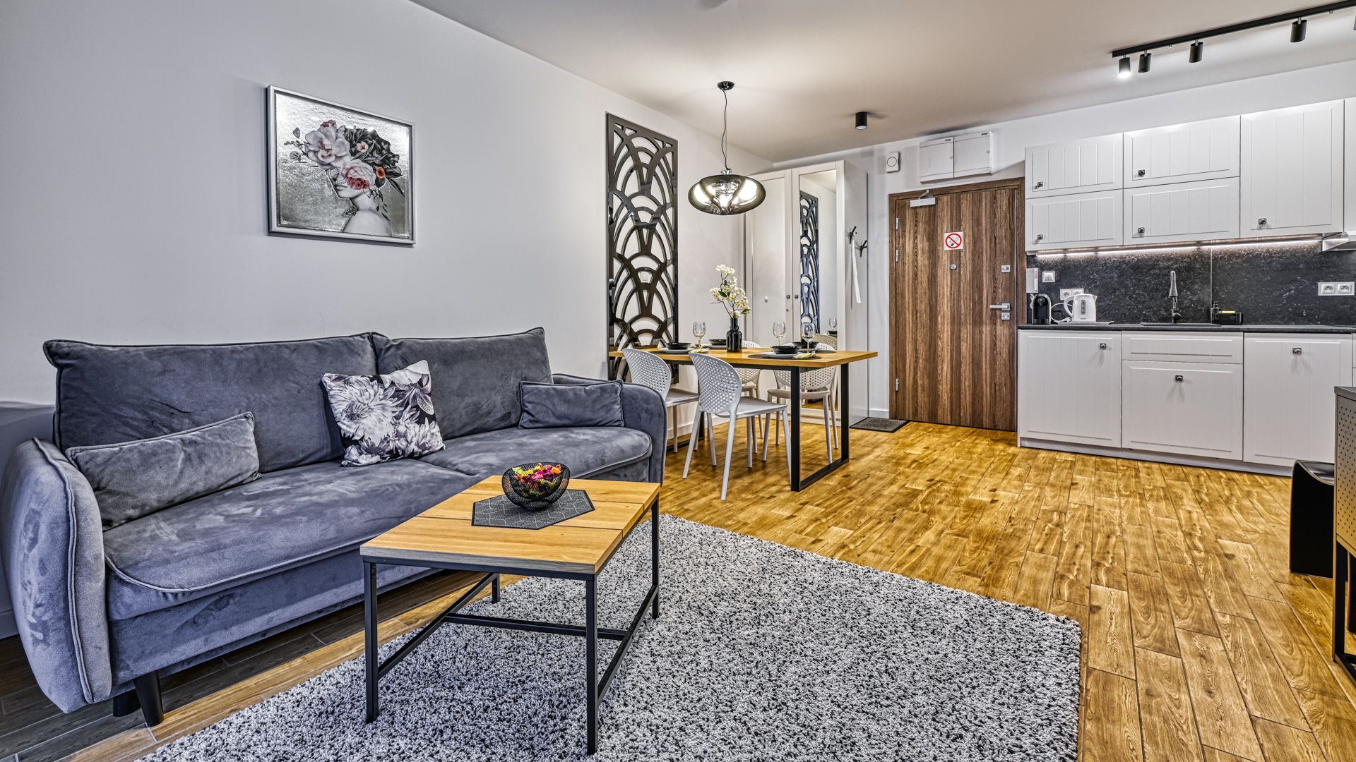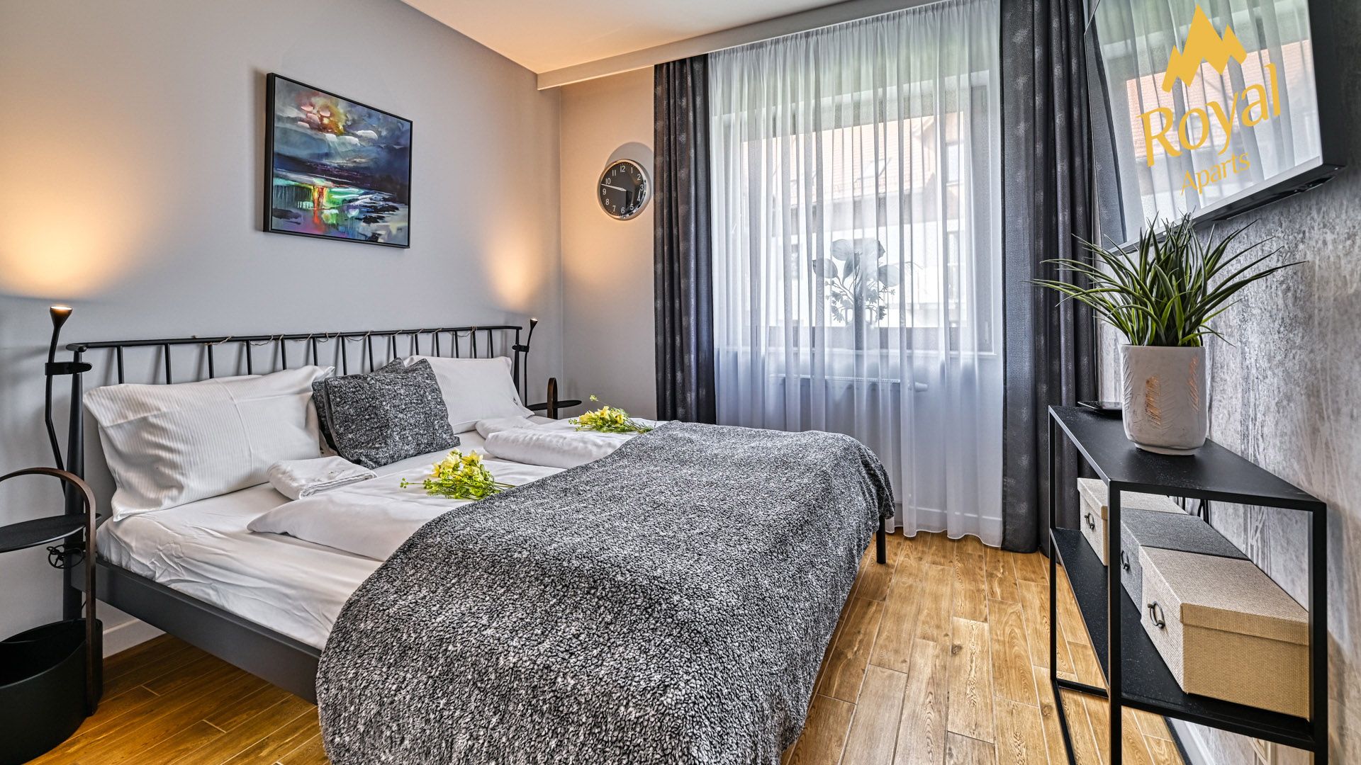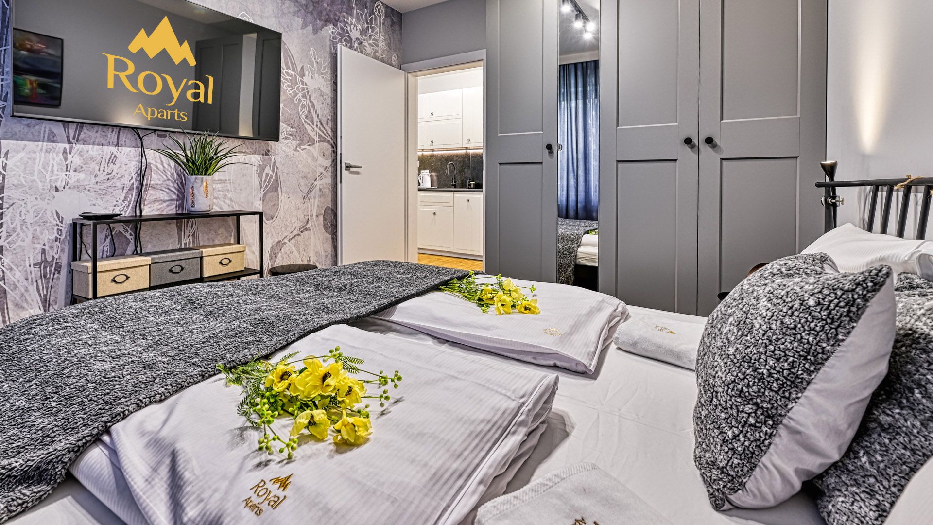 Prezentowany apartament jest częścią prestiżowego kompleksu Stone Hill w samym centrum Szklarskiej Poręby. To nowoczesny, czteroosobowy, w pełni wyposażony lokal o powierzchni 35m^2. W sypialni znajduje się duże łóżko małżeńskie, obszerna szafa oraz telewizor. Część dzienna apartamentu składa się z, salonu połączonego z aneksem kuchennym i wyposażona jest w rozkładaną sofę, panoramiczny telewizor oraz stół kuchenny. Całość domyka wykończona w wysokim standardzie łazienka.